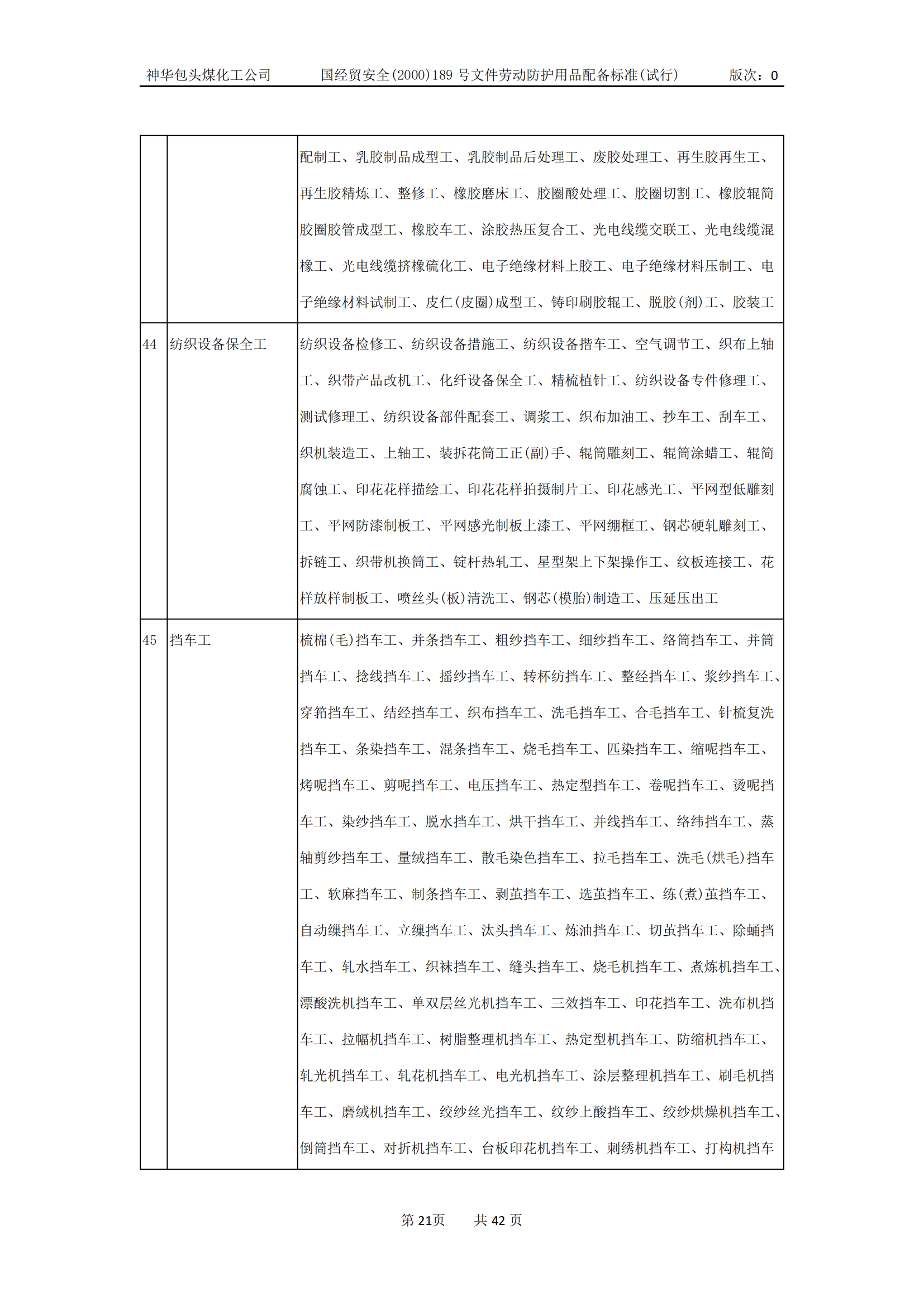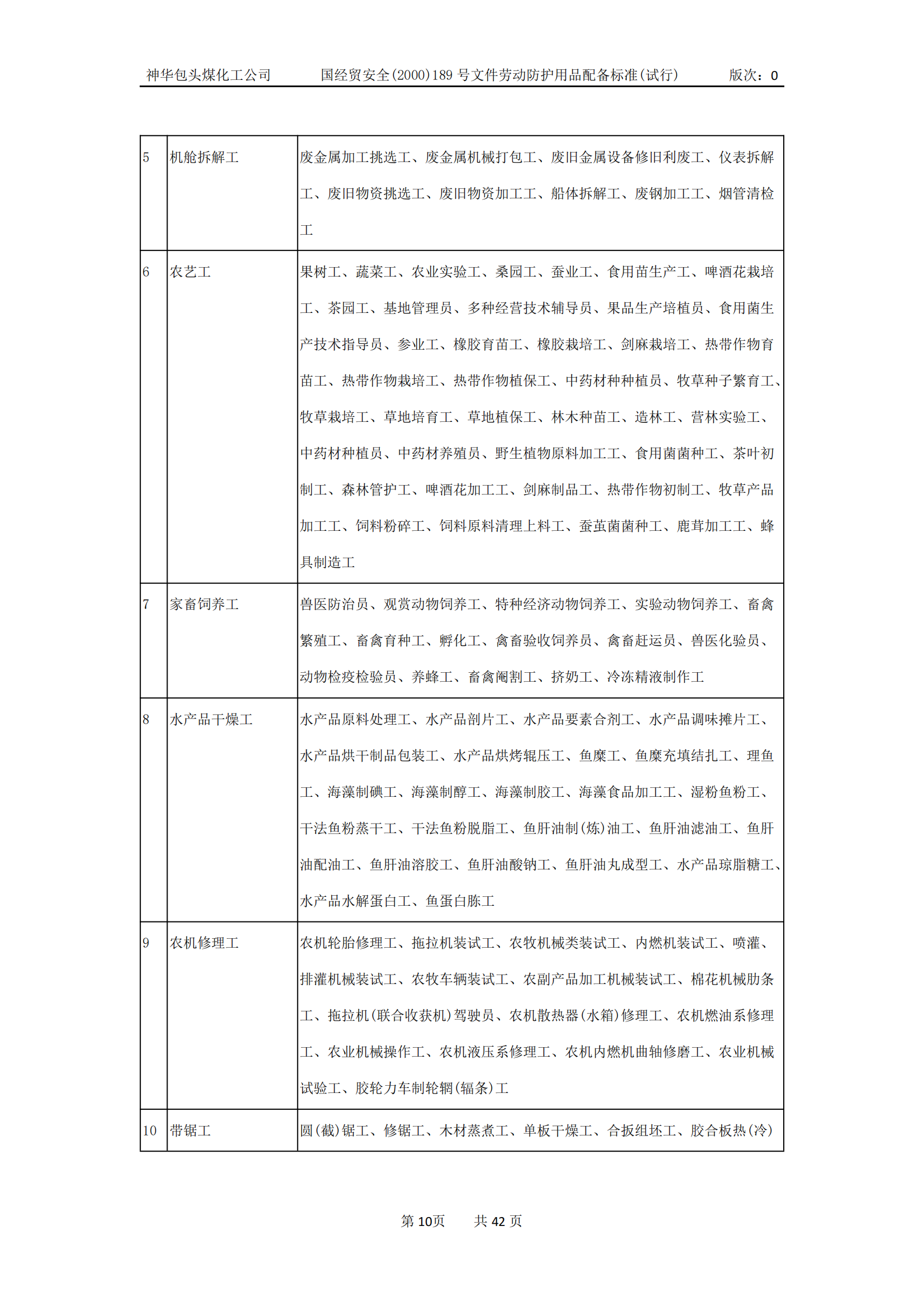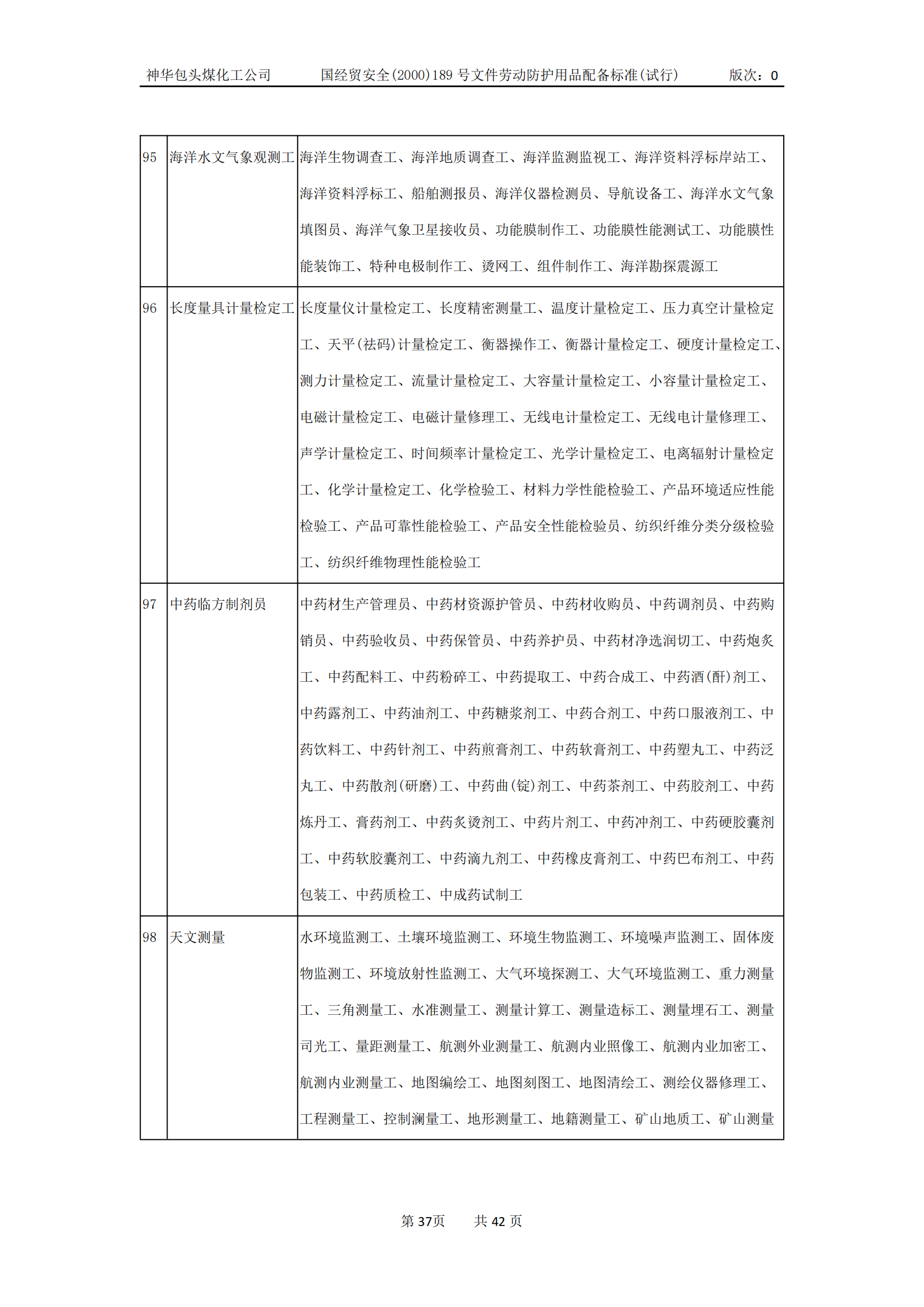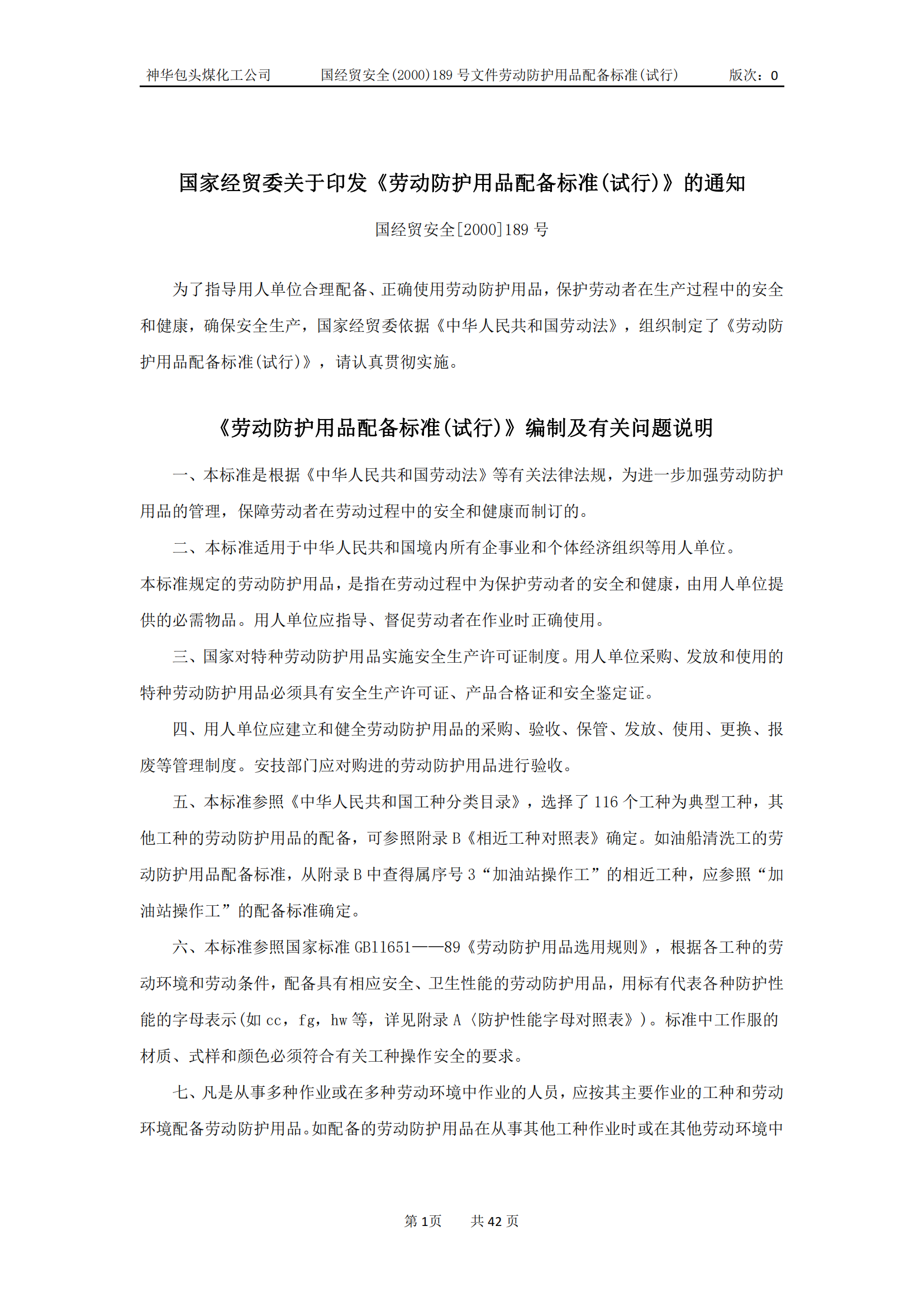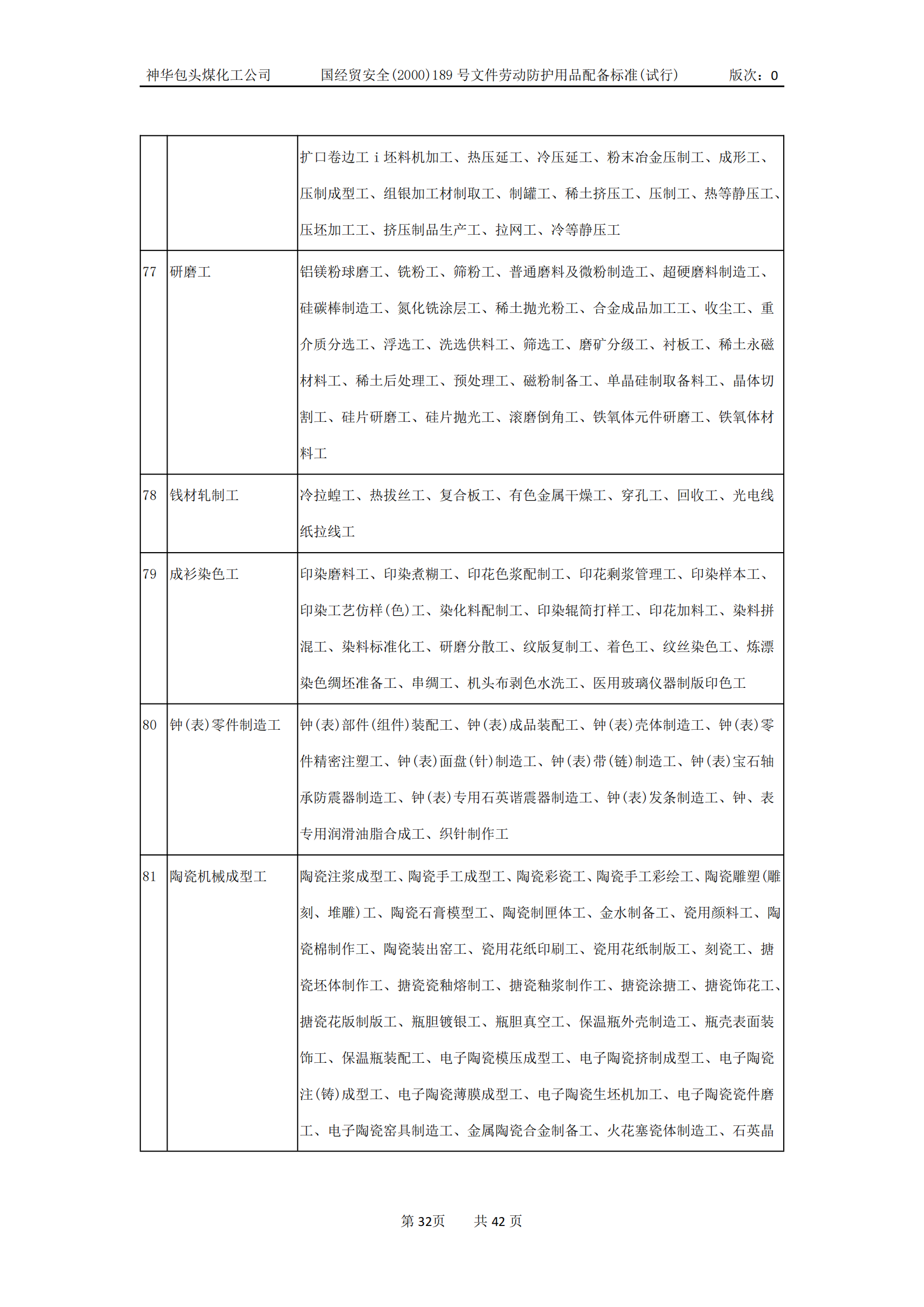 劳动防护用品配备标准(试行)