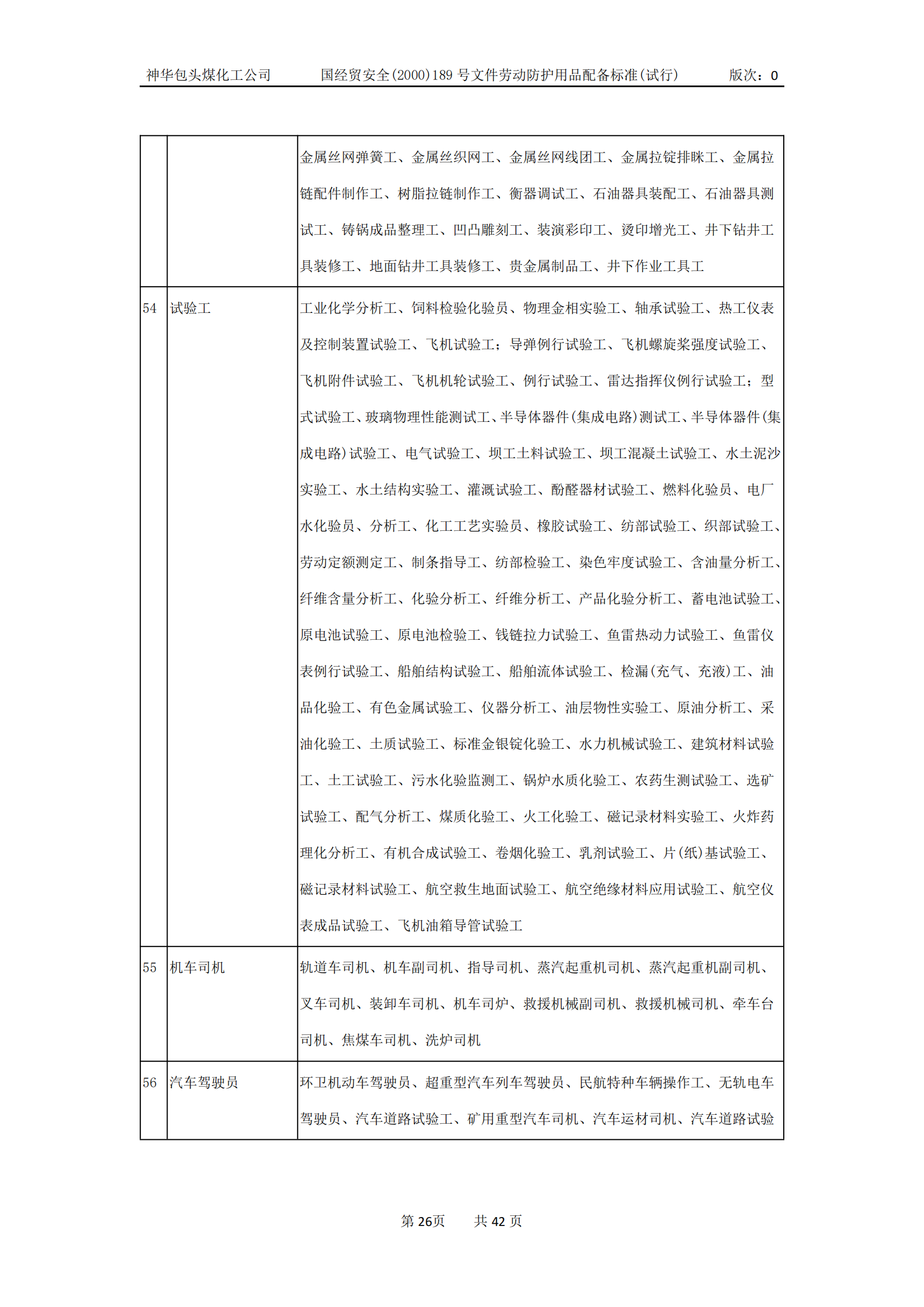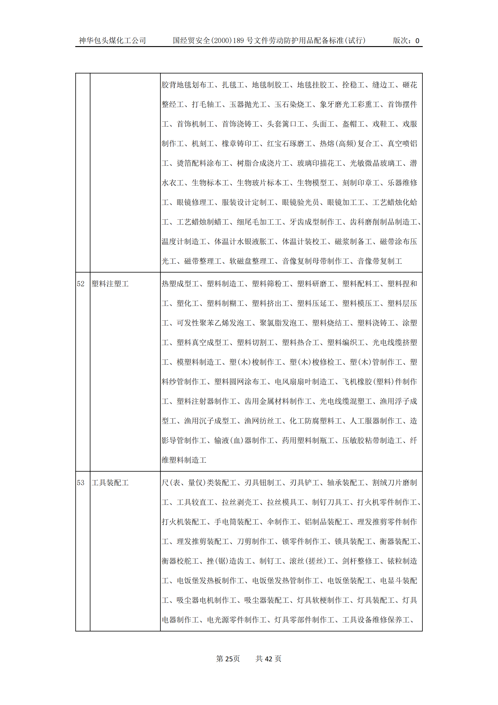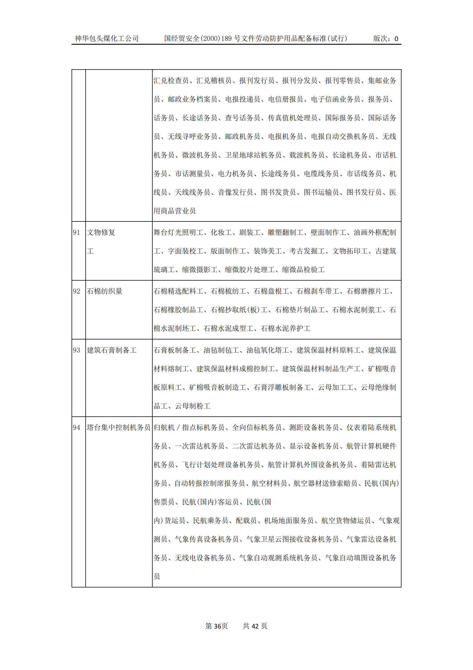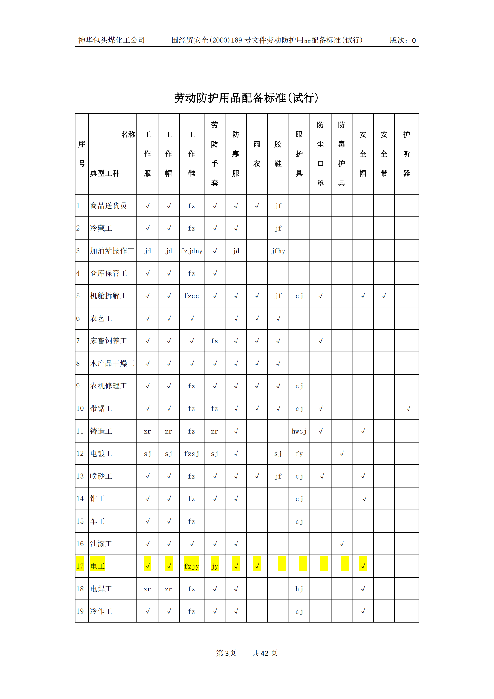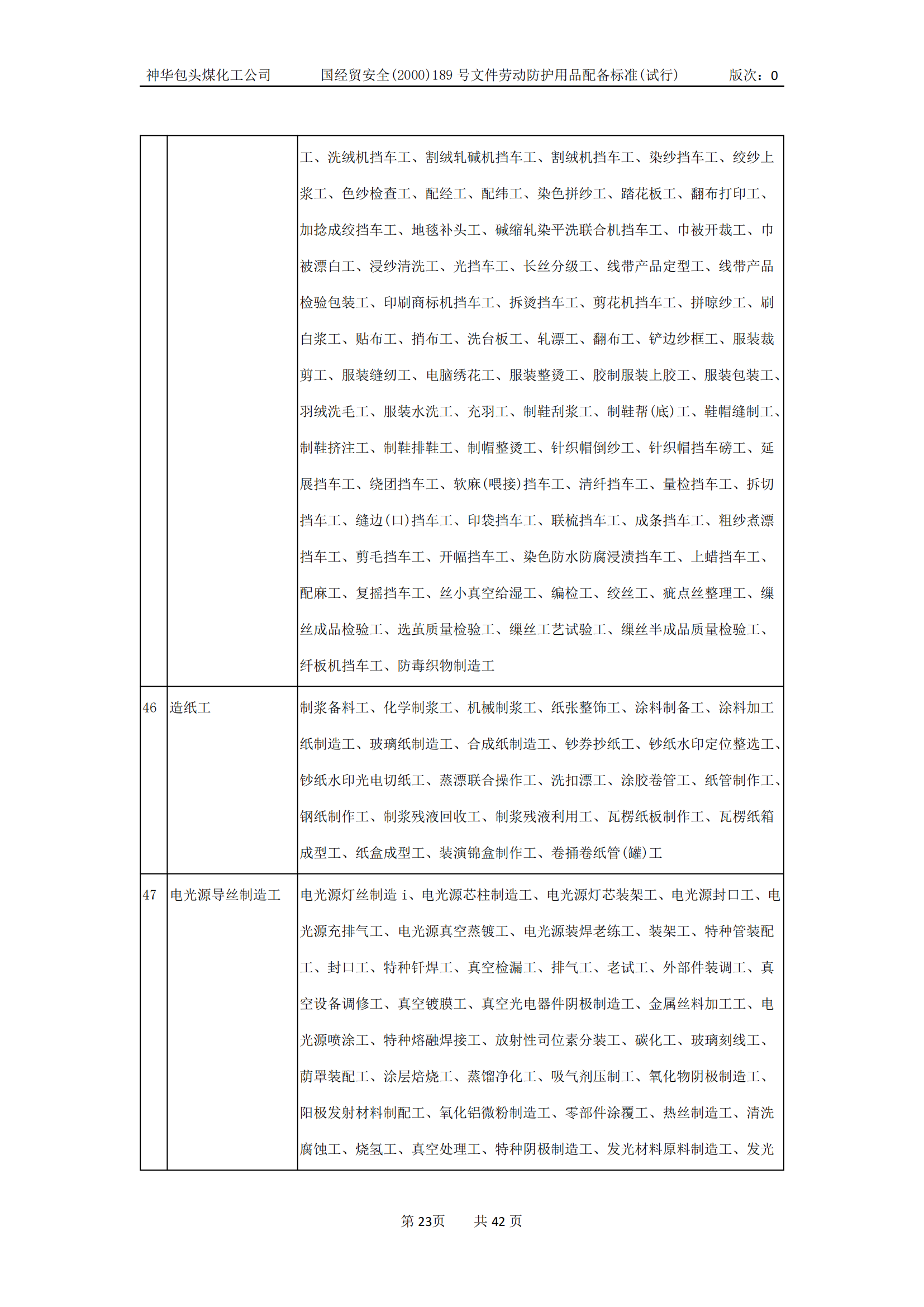 劳动防护用品配备标准(试行)