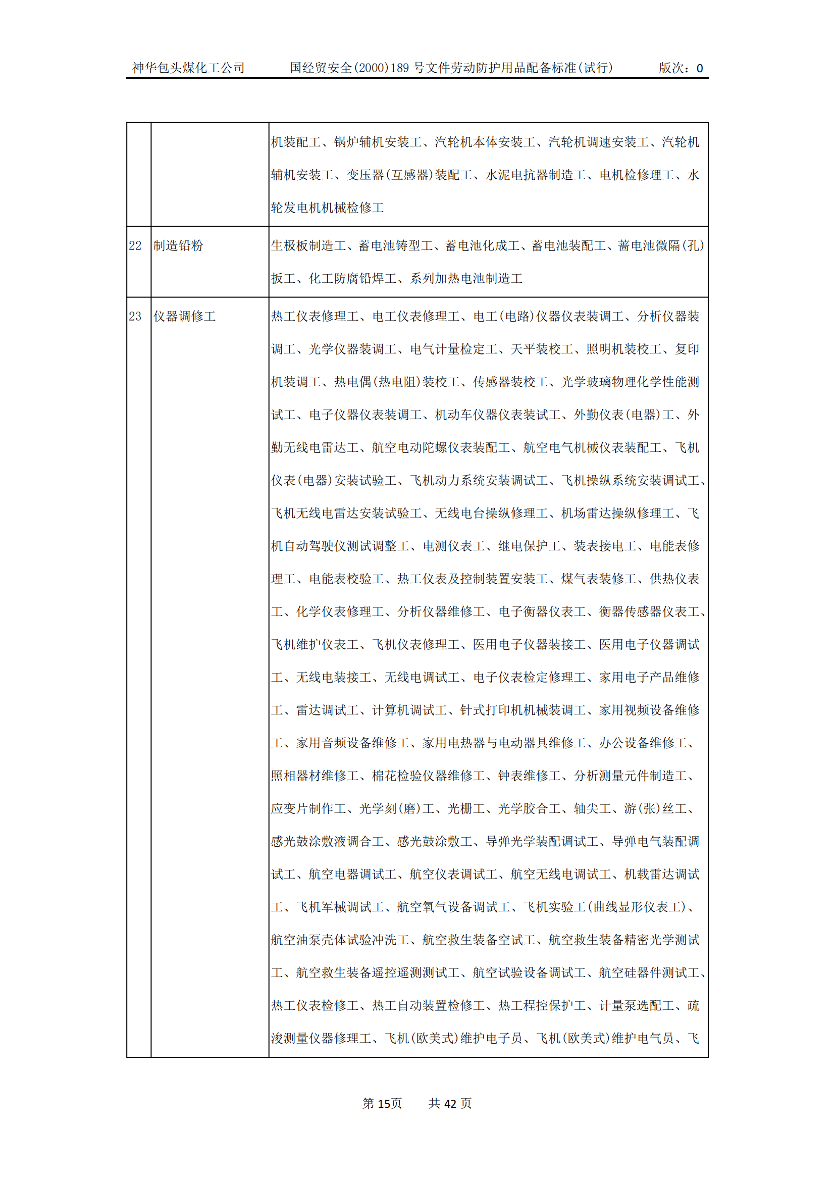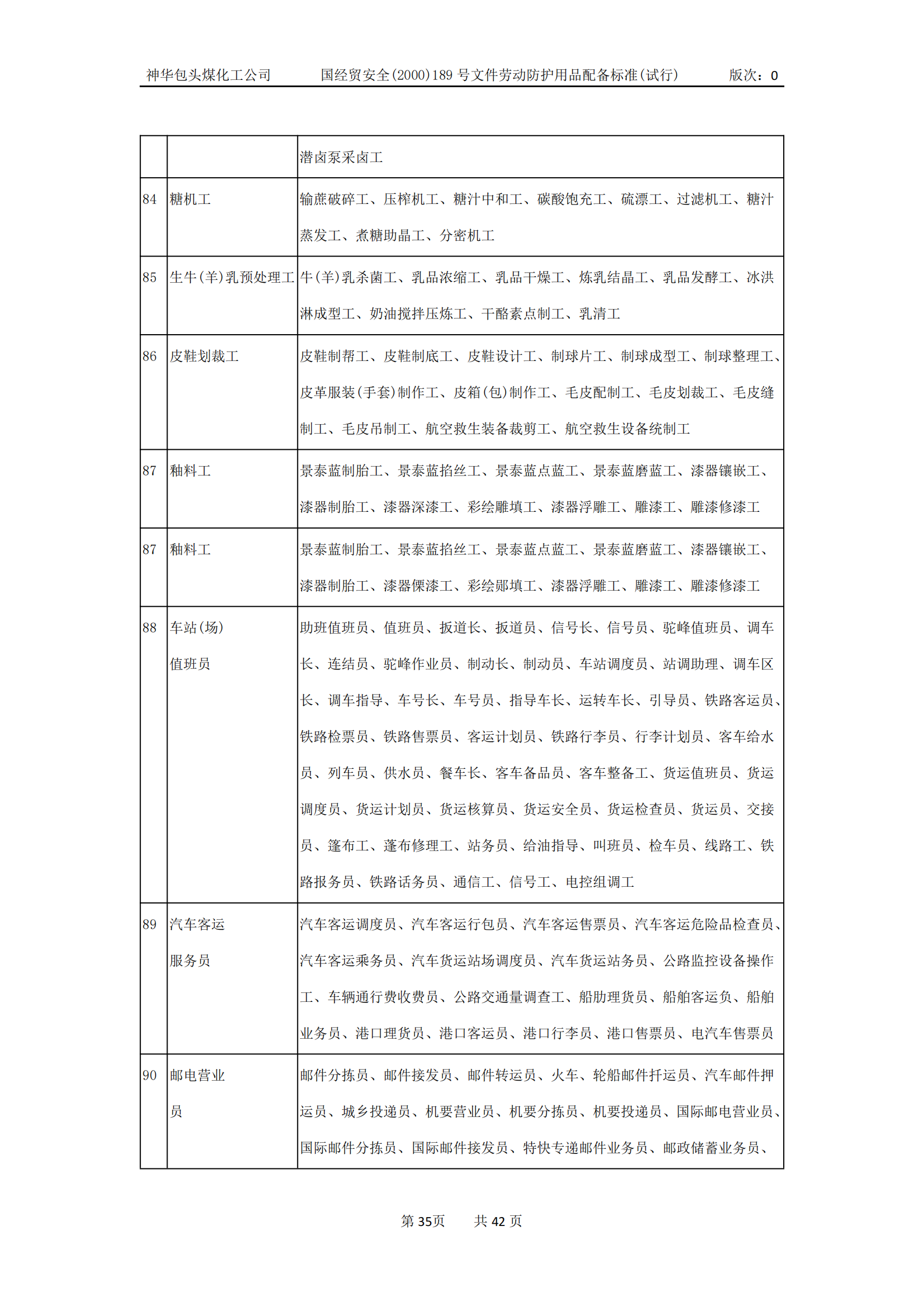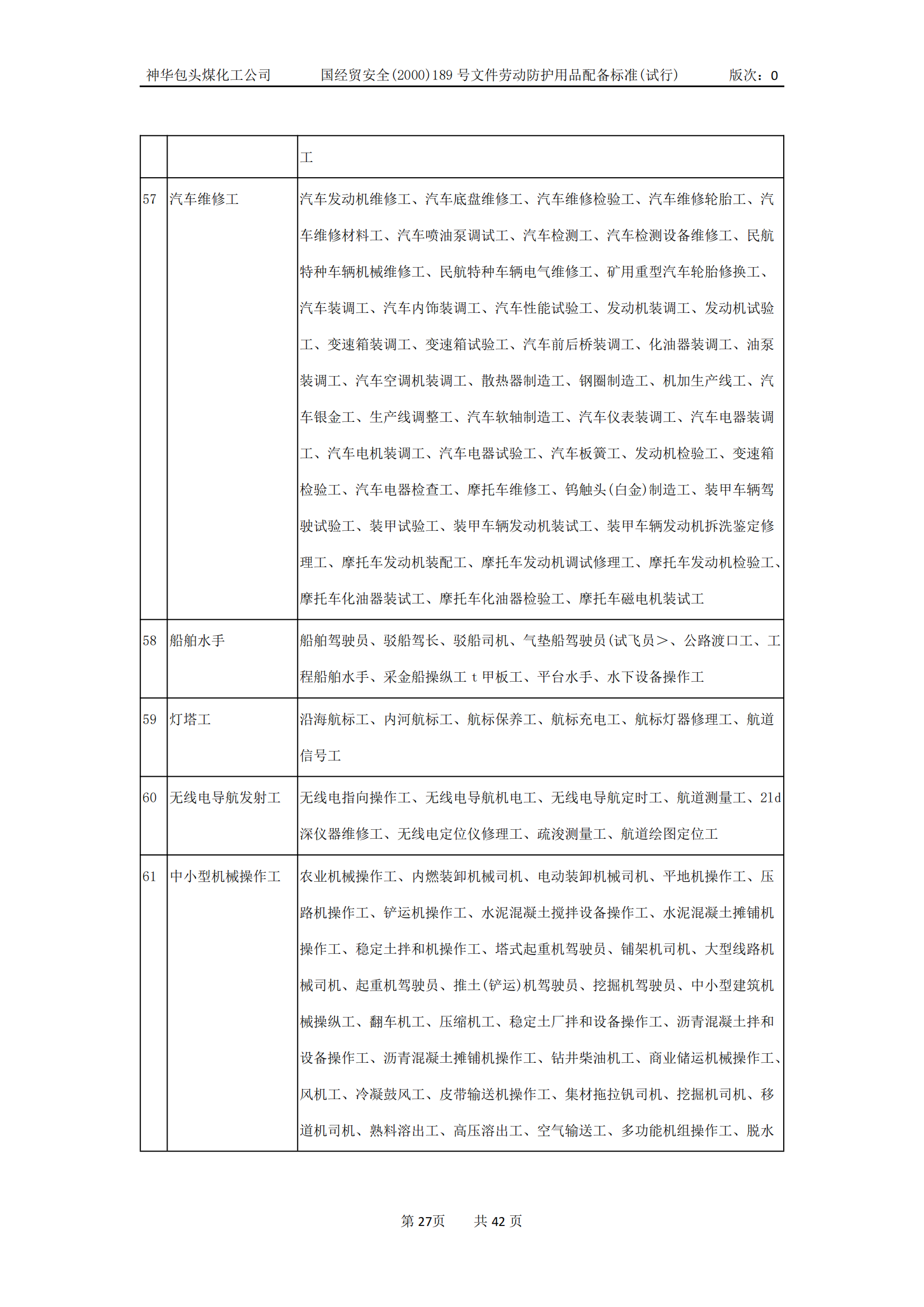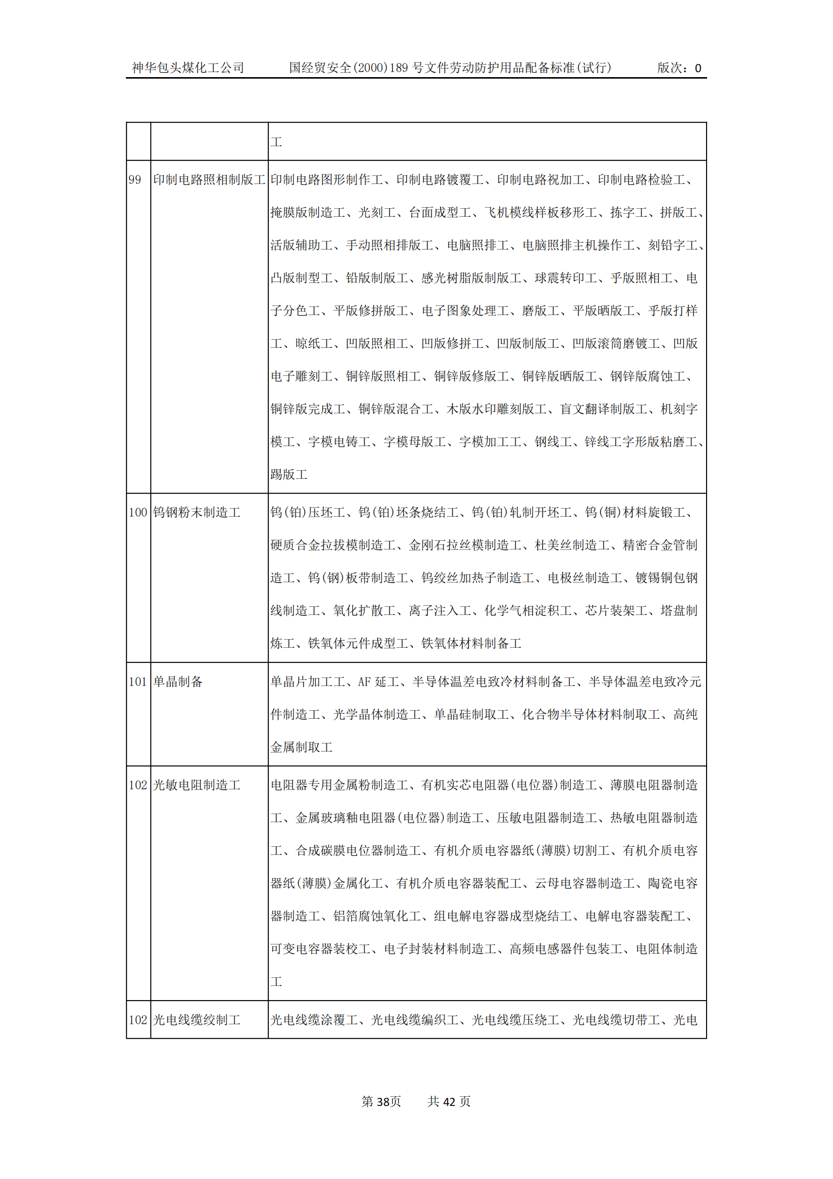 劳动防护用品配备标准(试行)