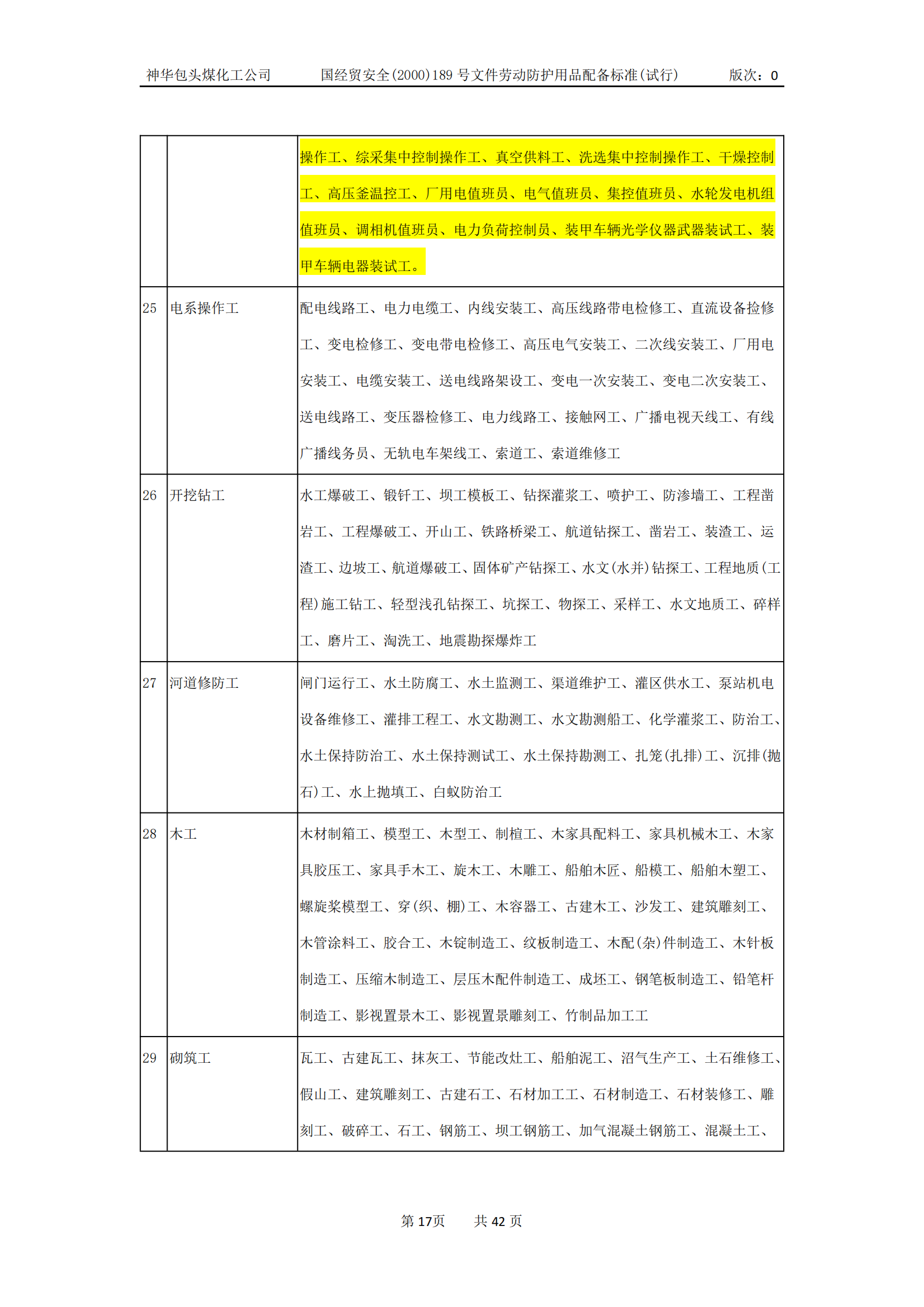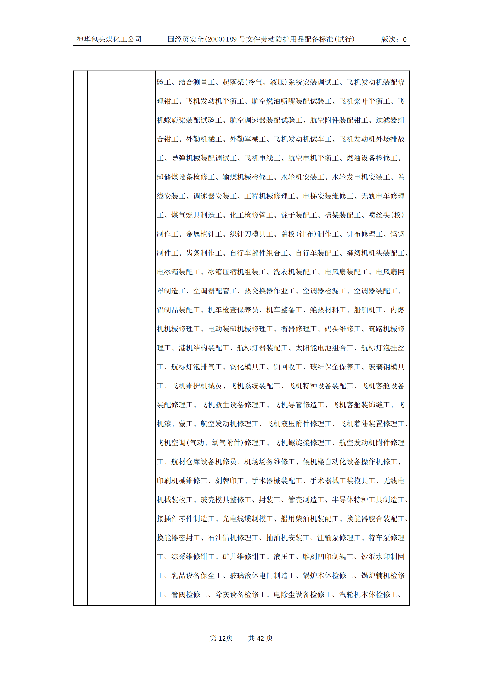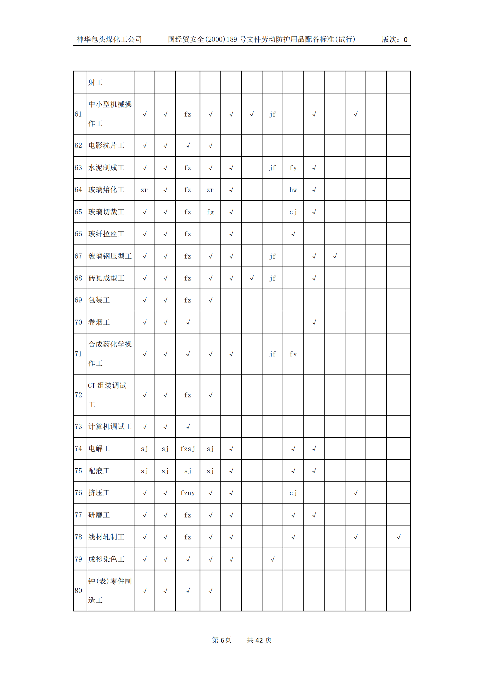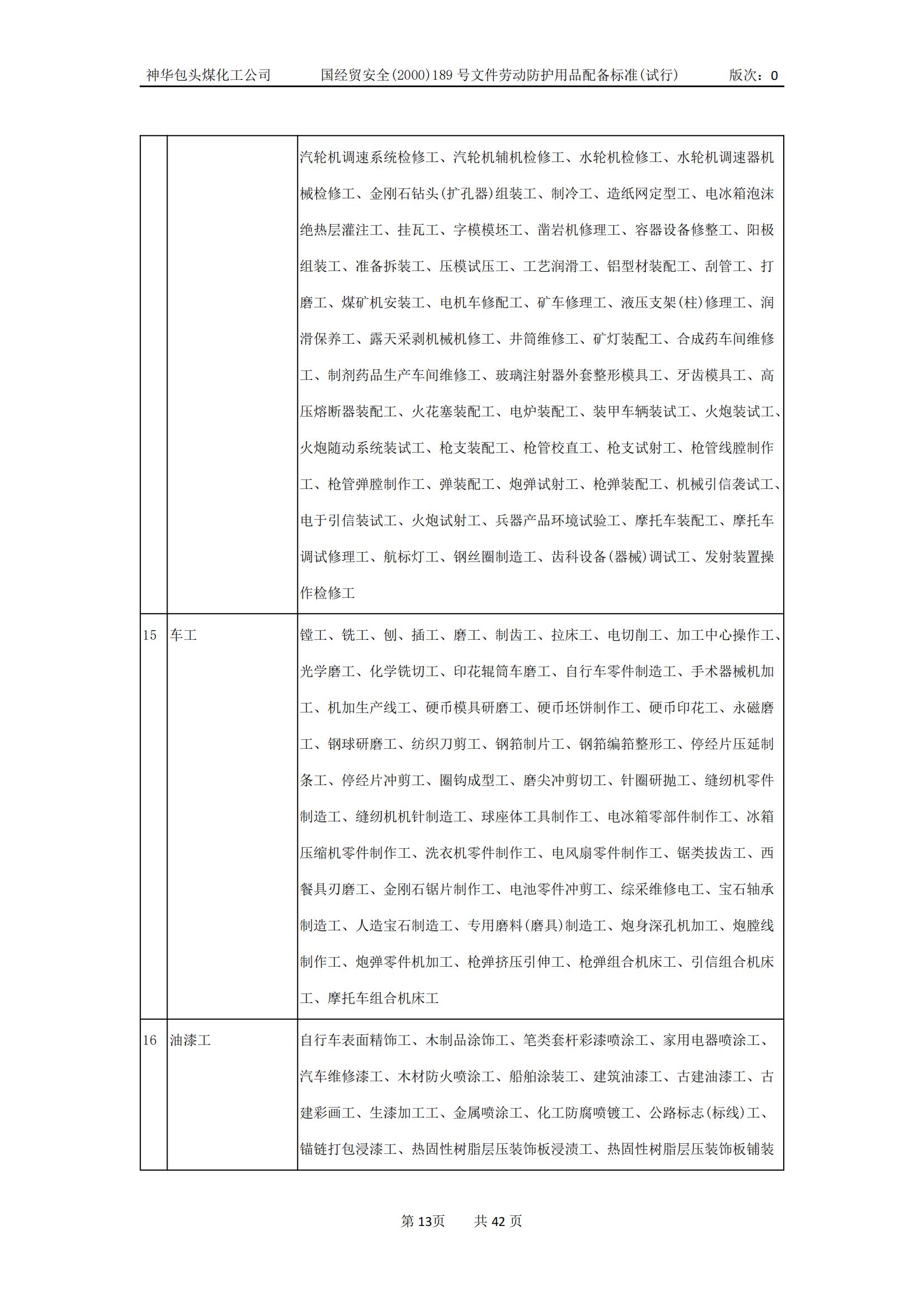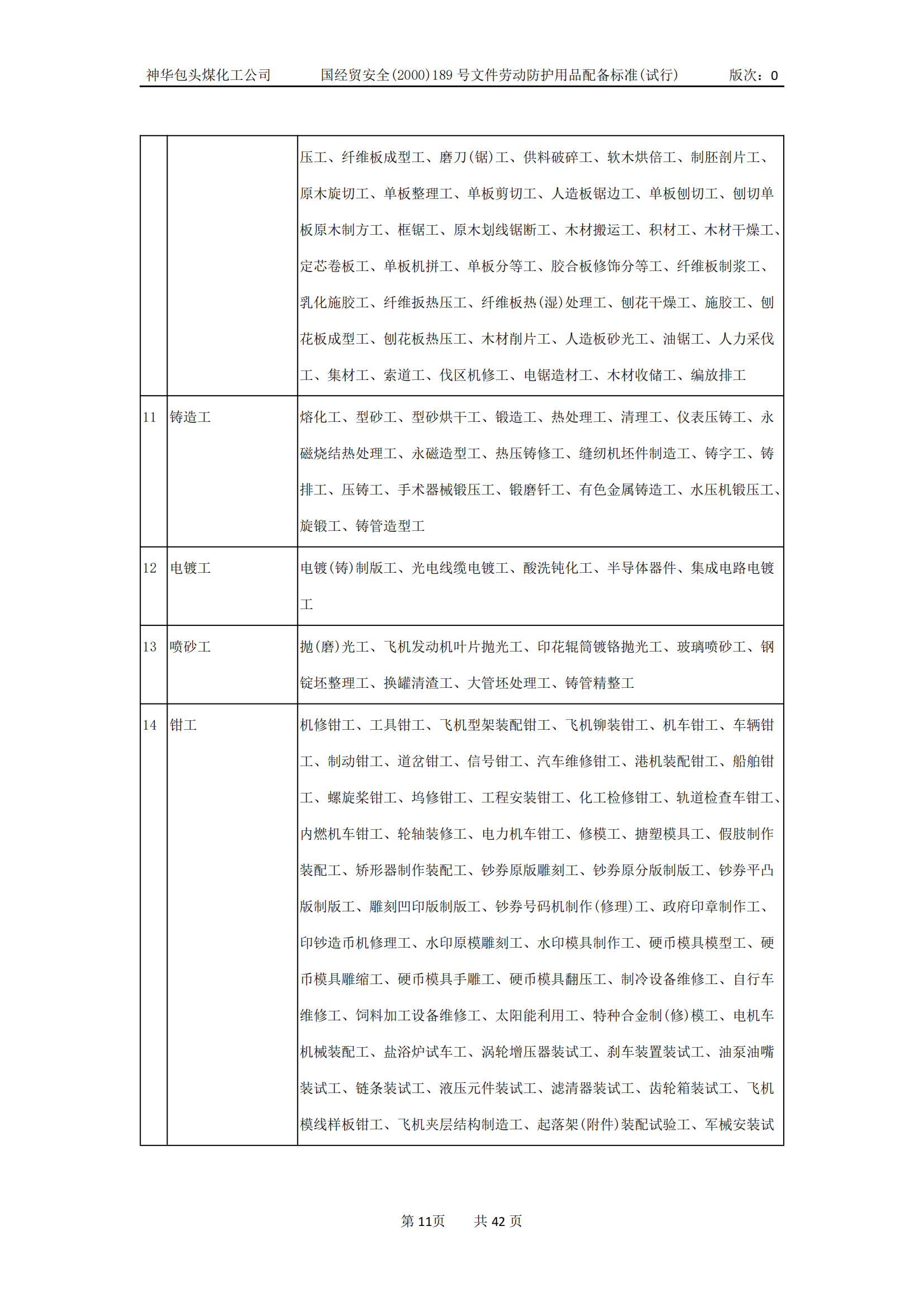 劳动防护用品配备标准(试行)