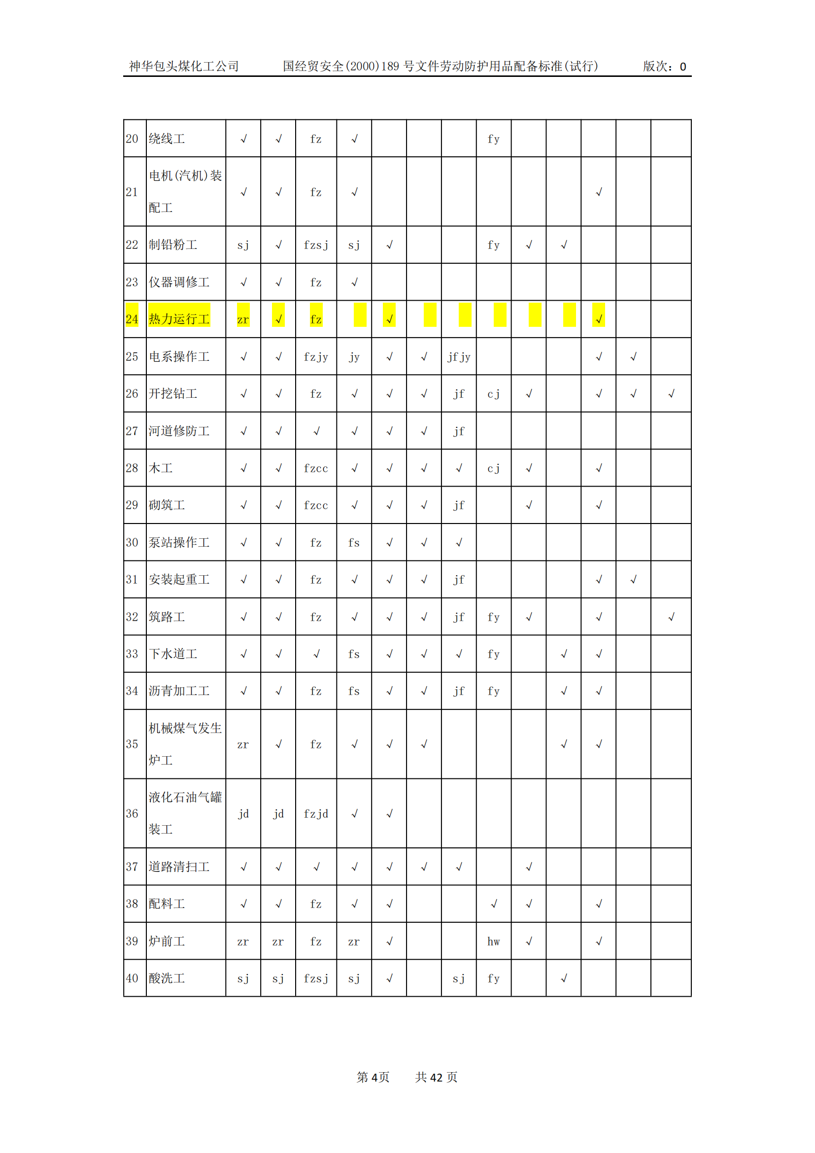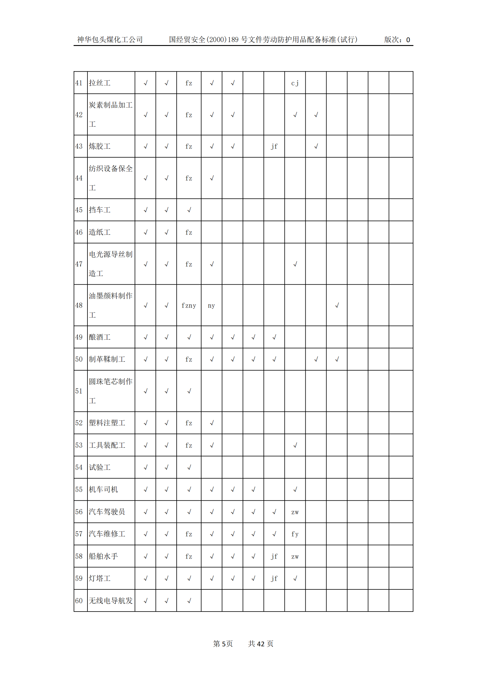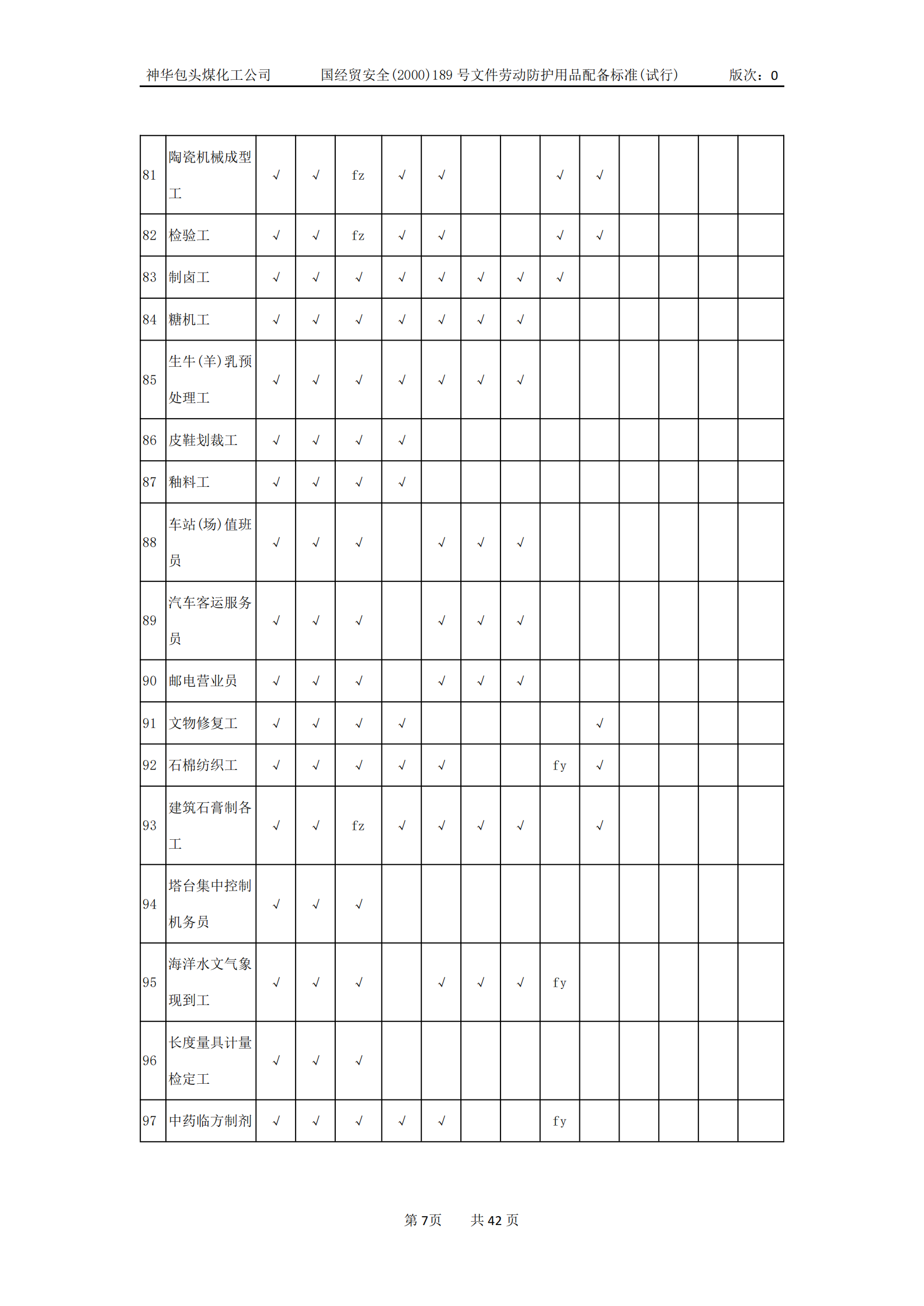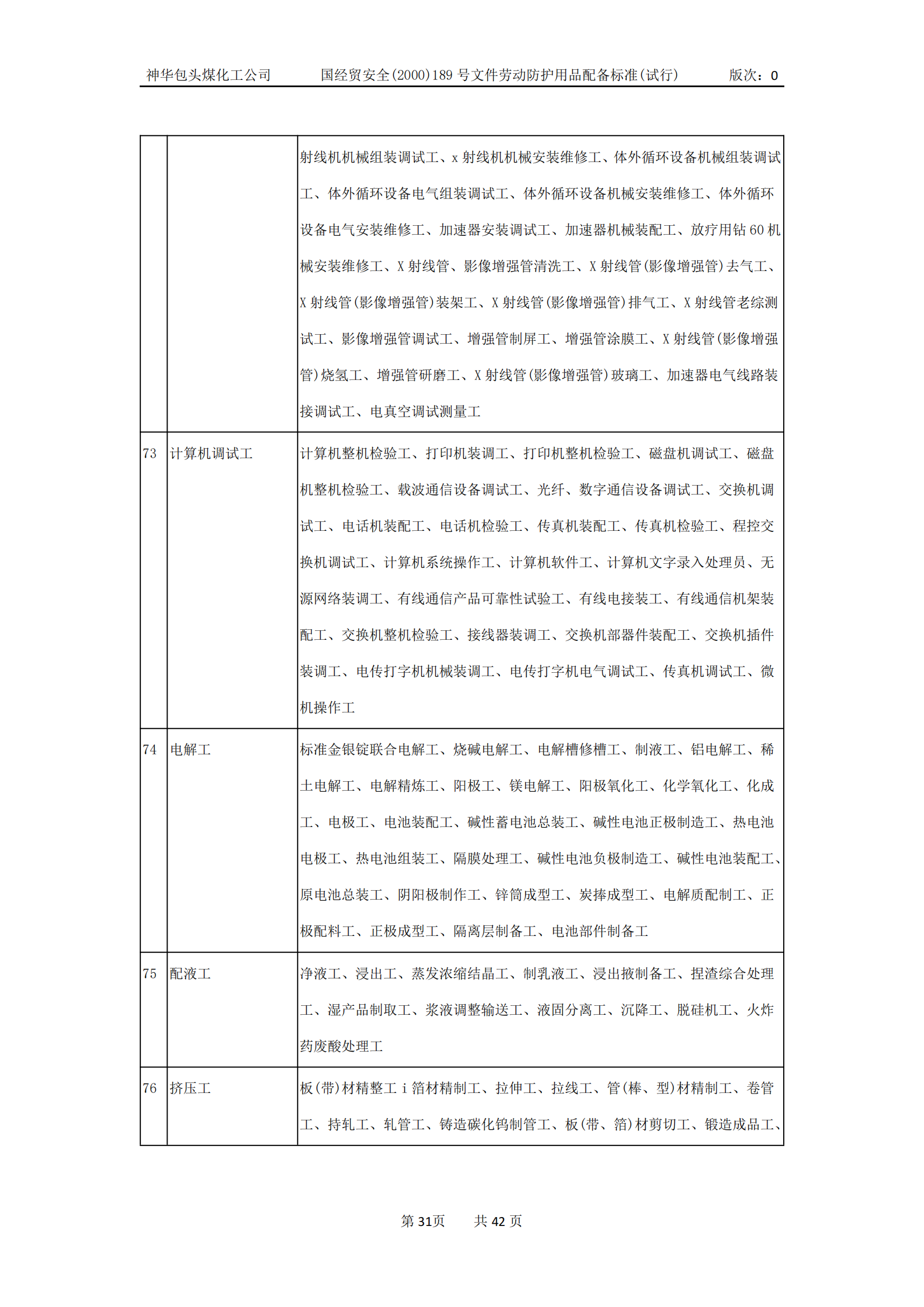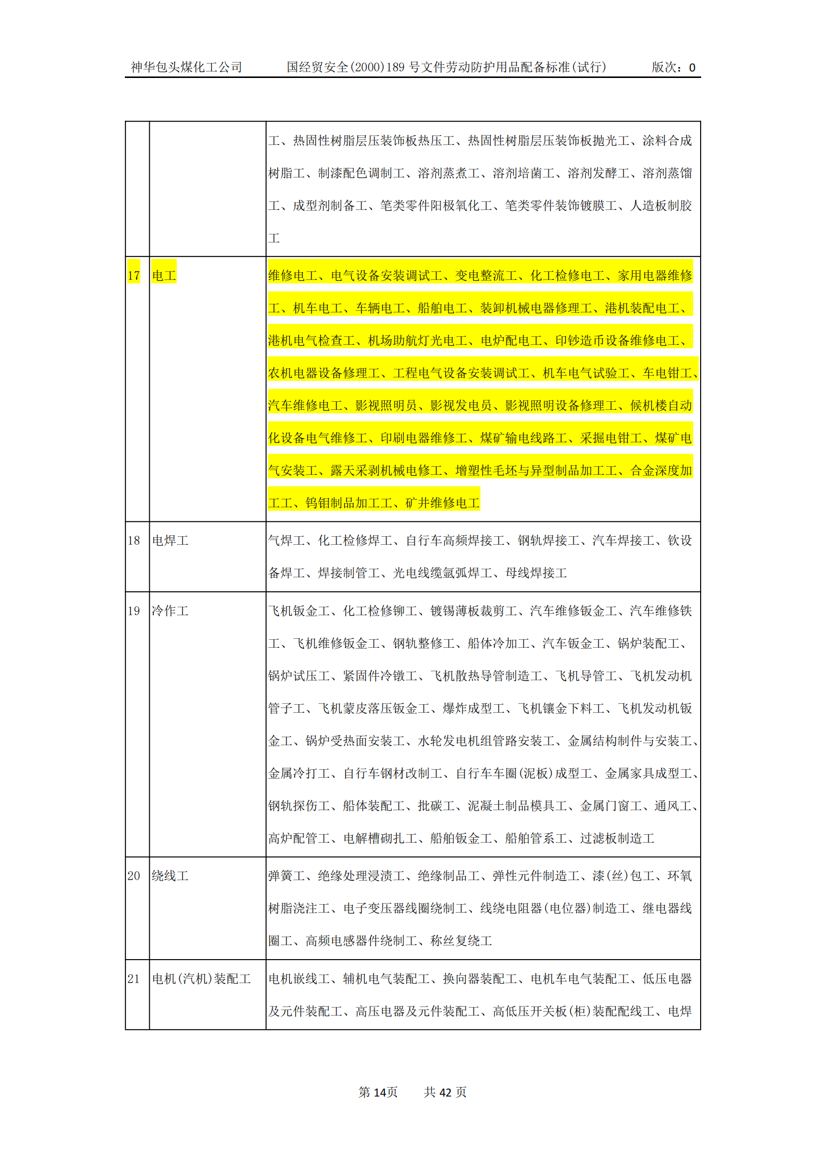 劳动防护用品配备标准(试行)