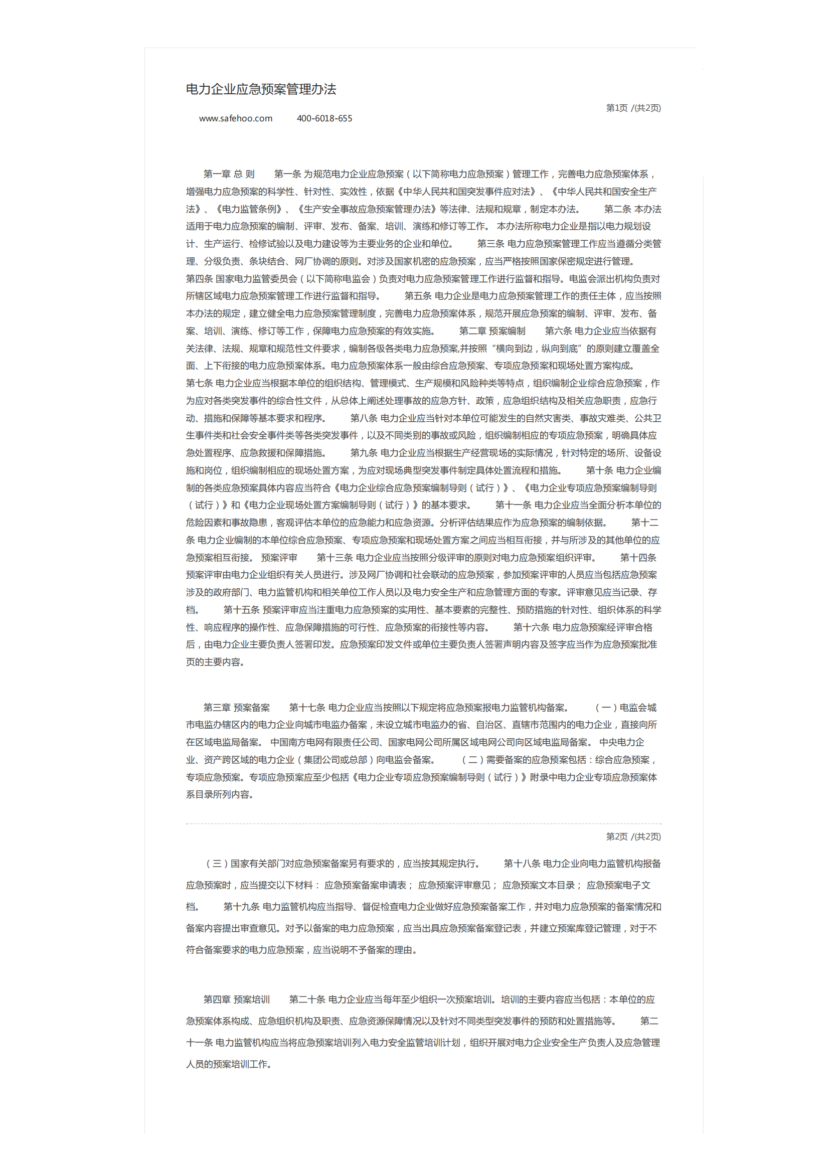 电力企业应急预案管理办法