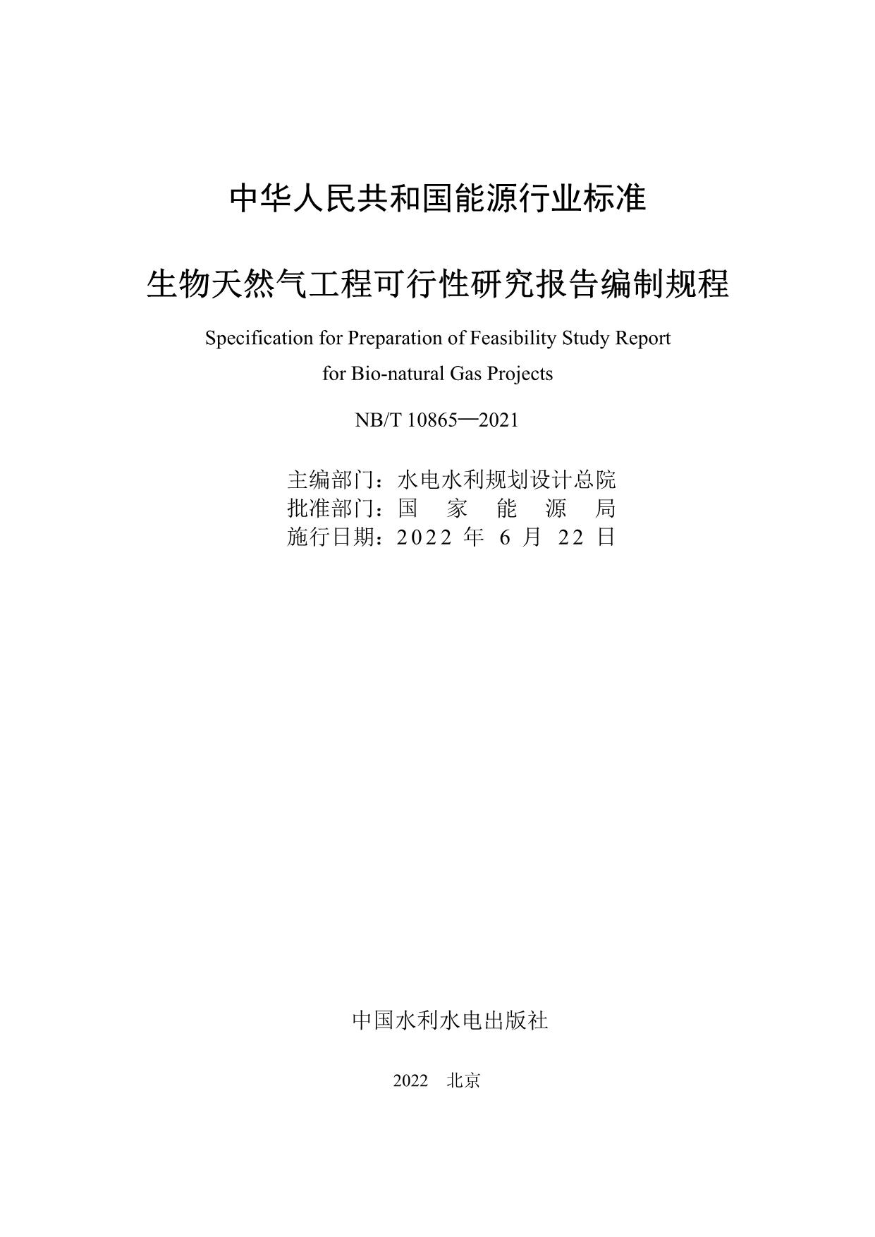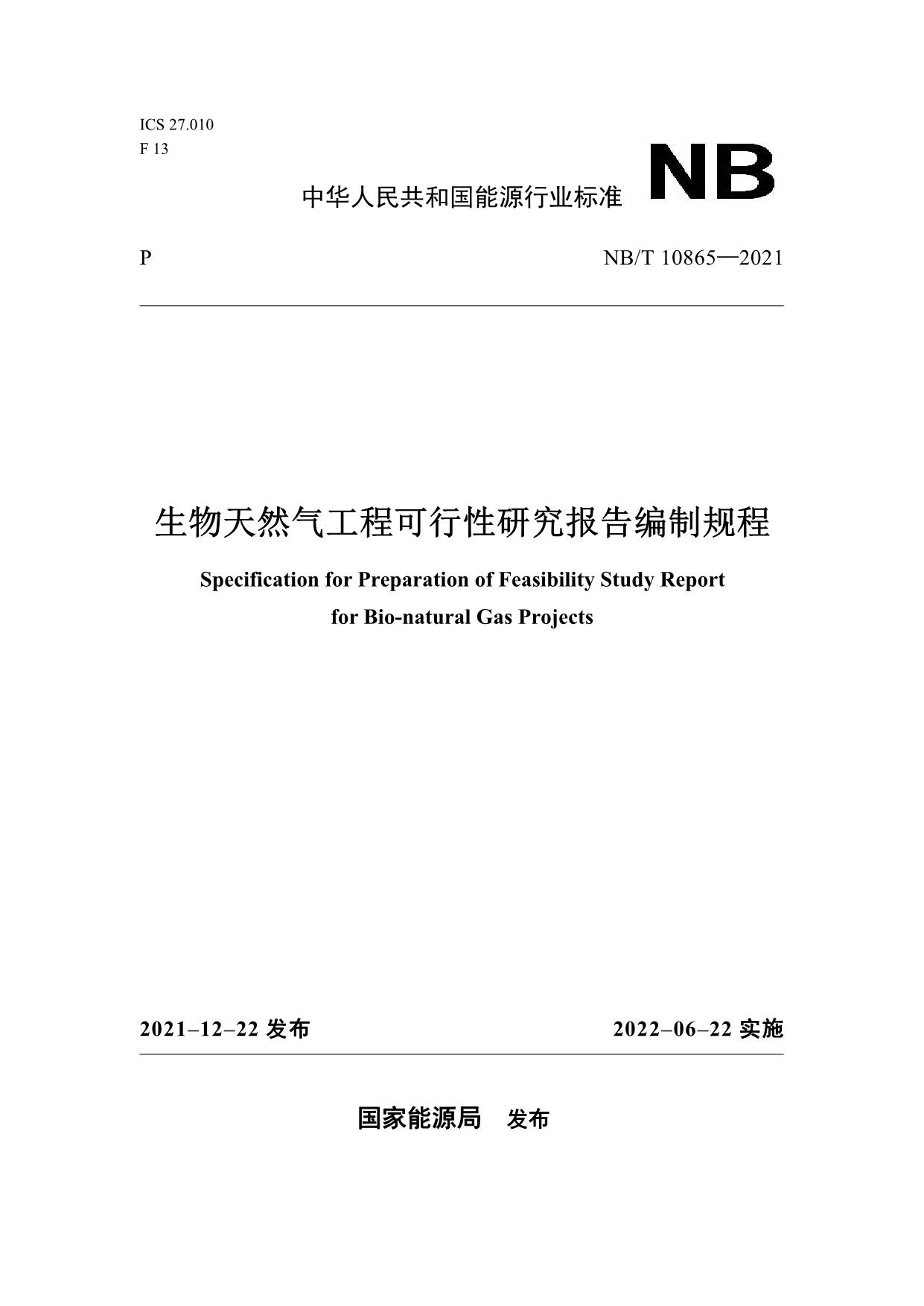 《生物天然气工程可行性研究报告编制规程》(NB/T 10865—2021)