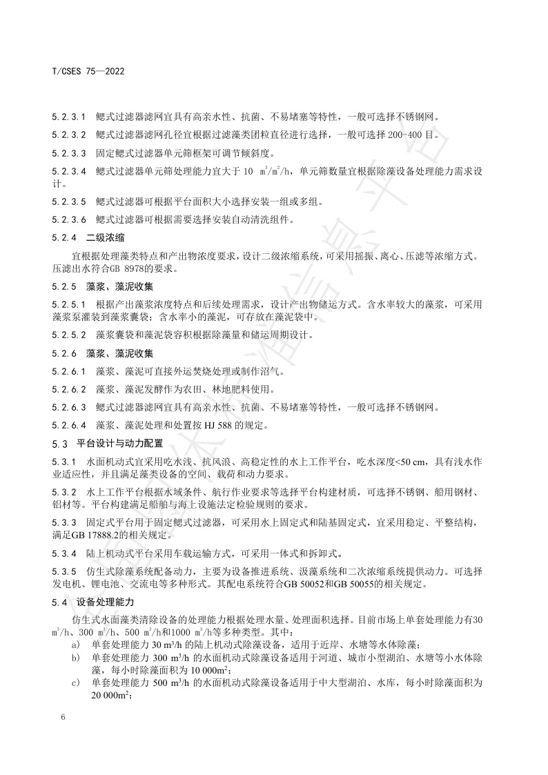 TCSES 75—2022《仿生式过滤浓缩除藻技术指南》