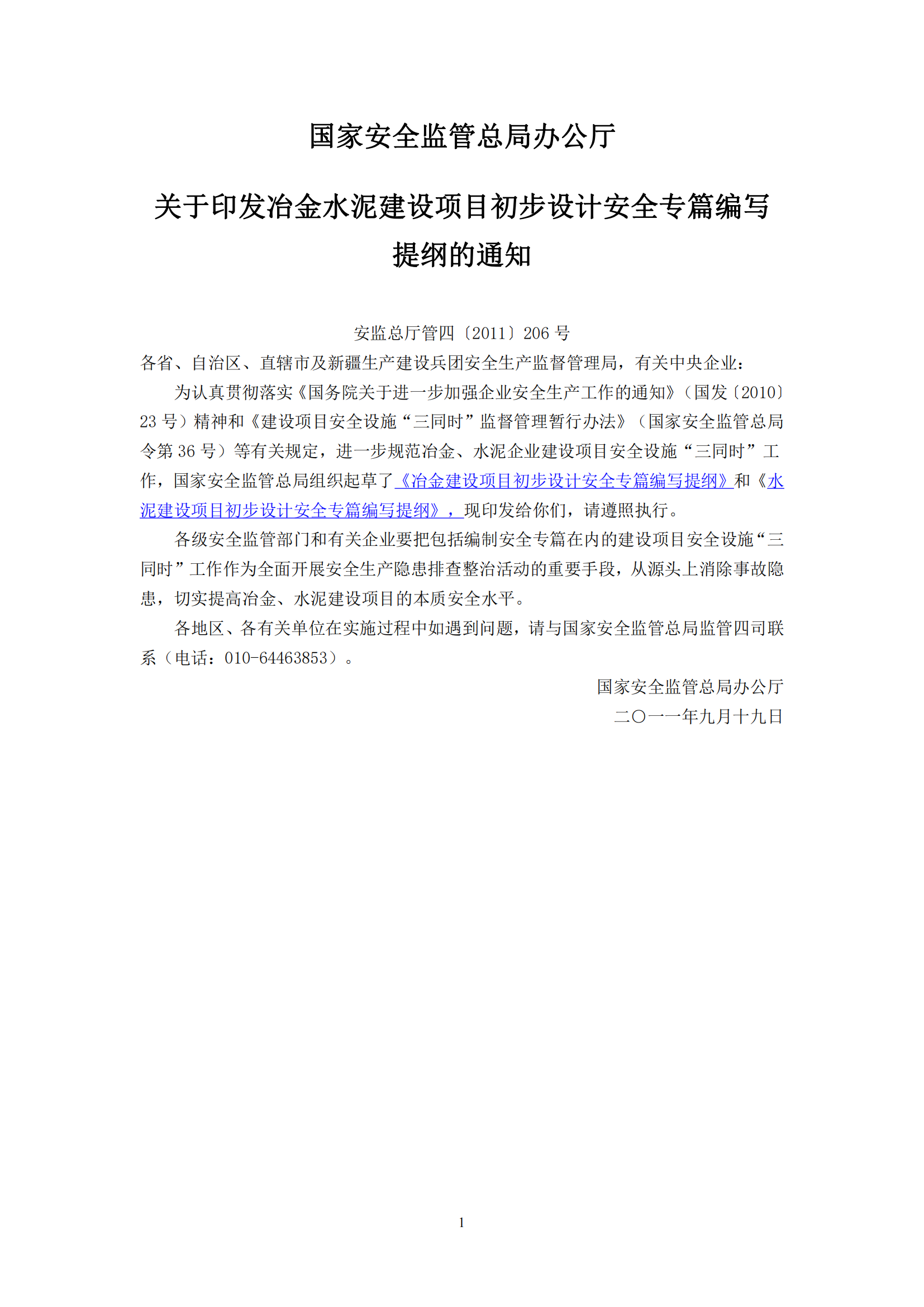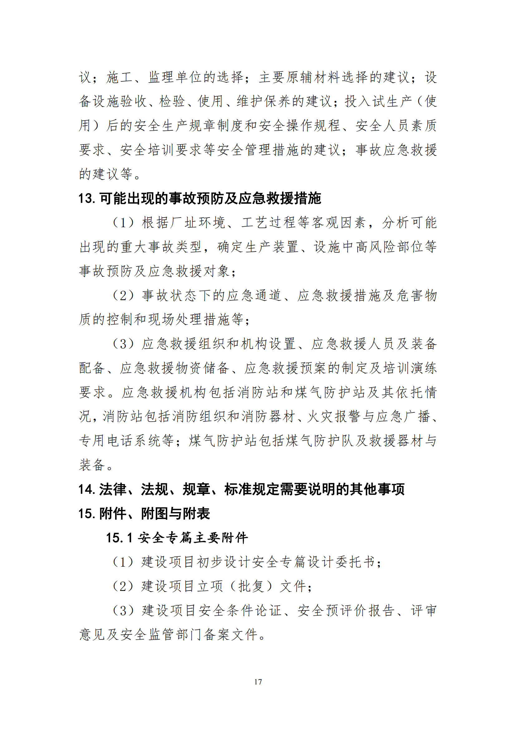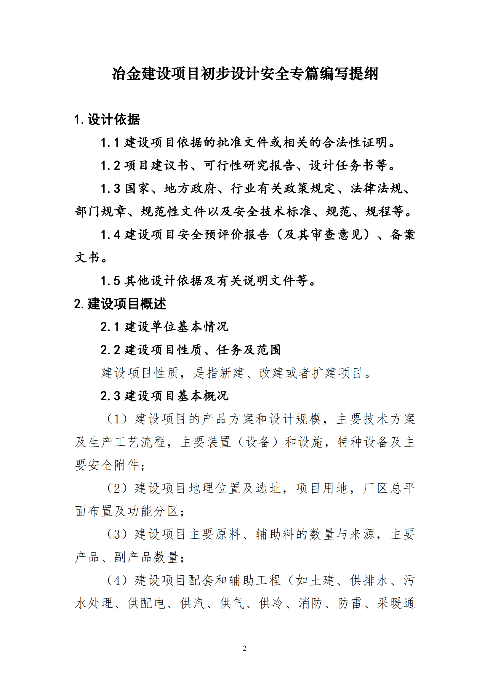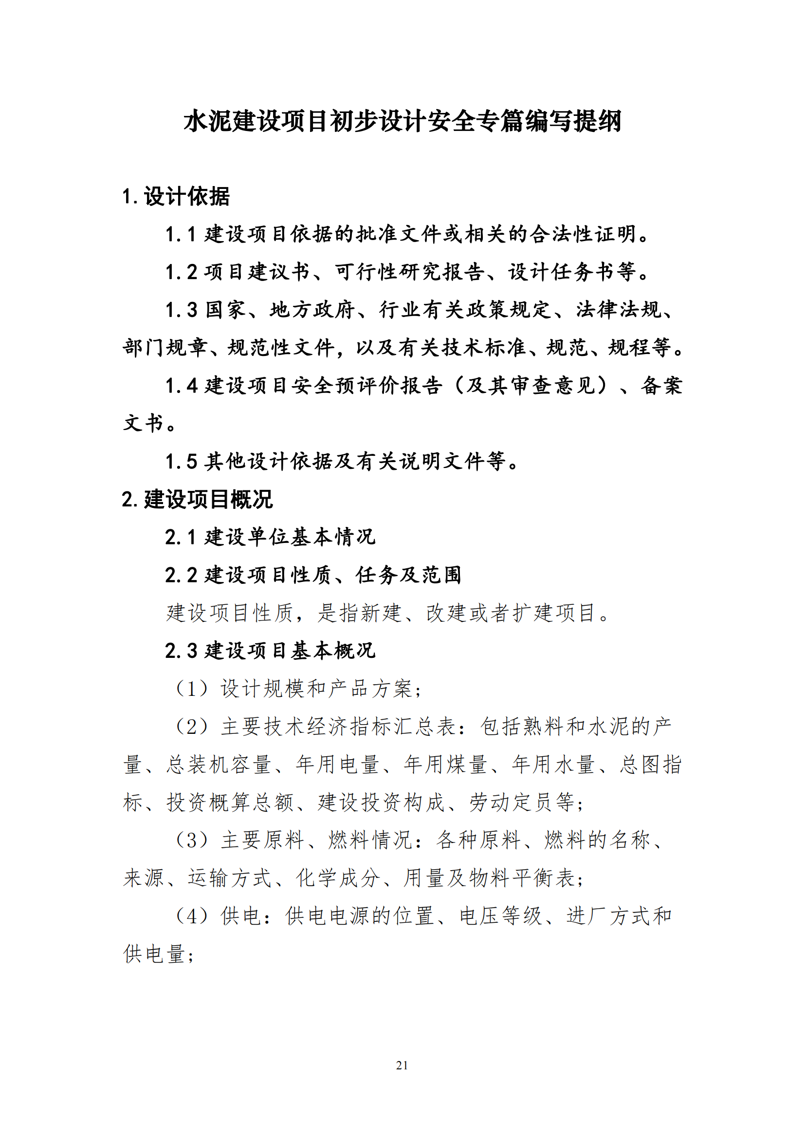 冶金水泥建设项目初步设计安全专篇编写提纲