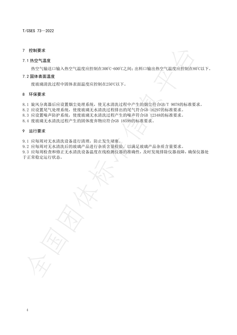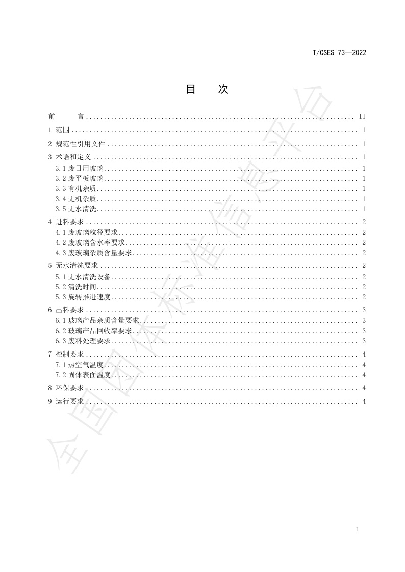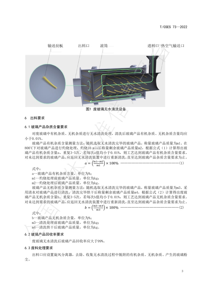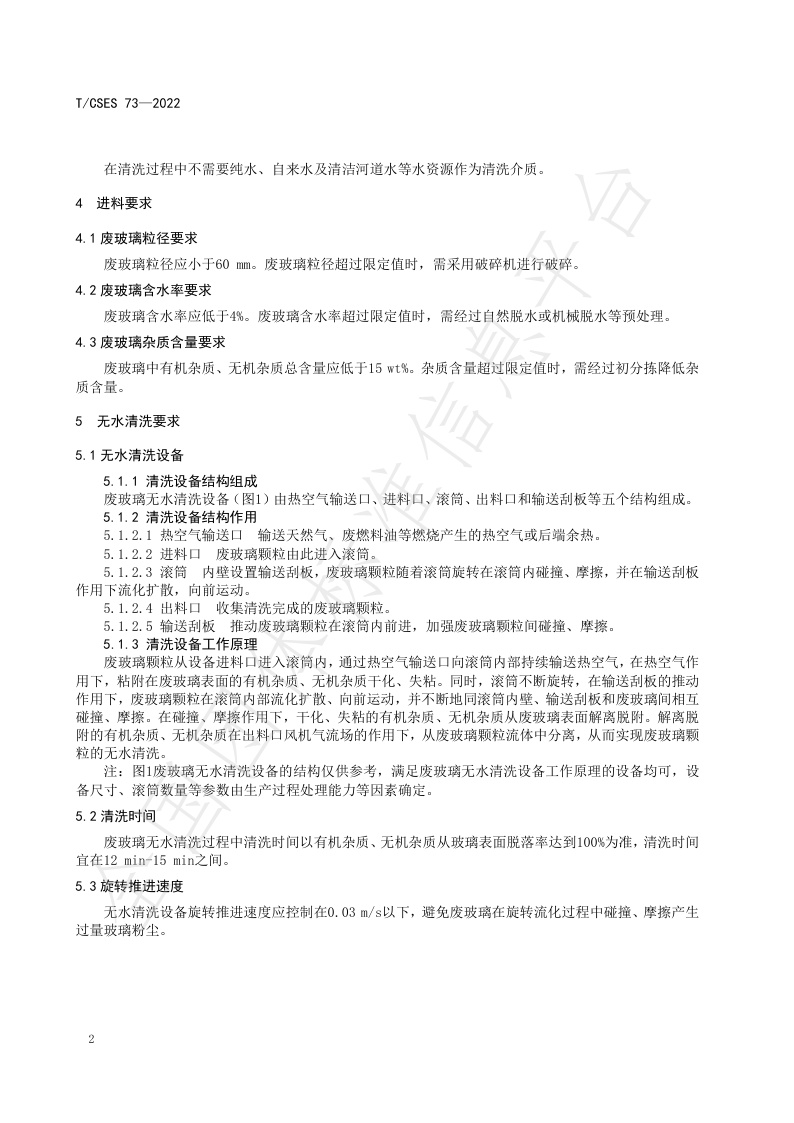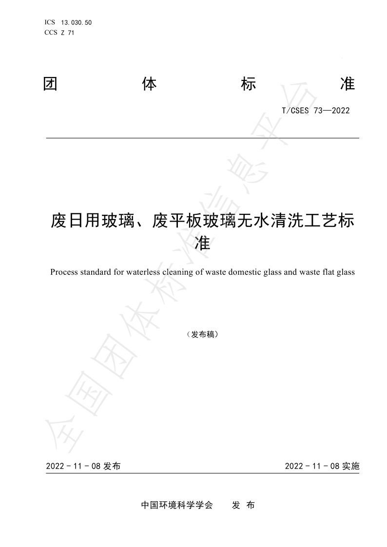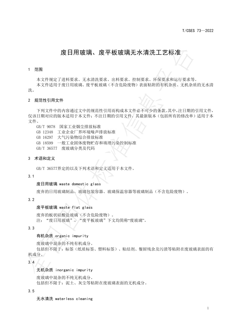 TCSES 73—2022《废日用玻璃、废平板玻璃无水清洗工艺标准》