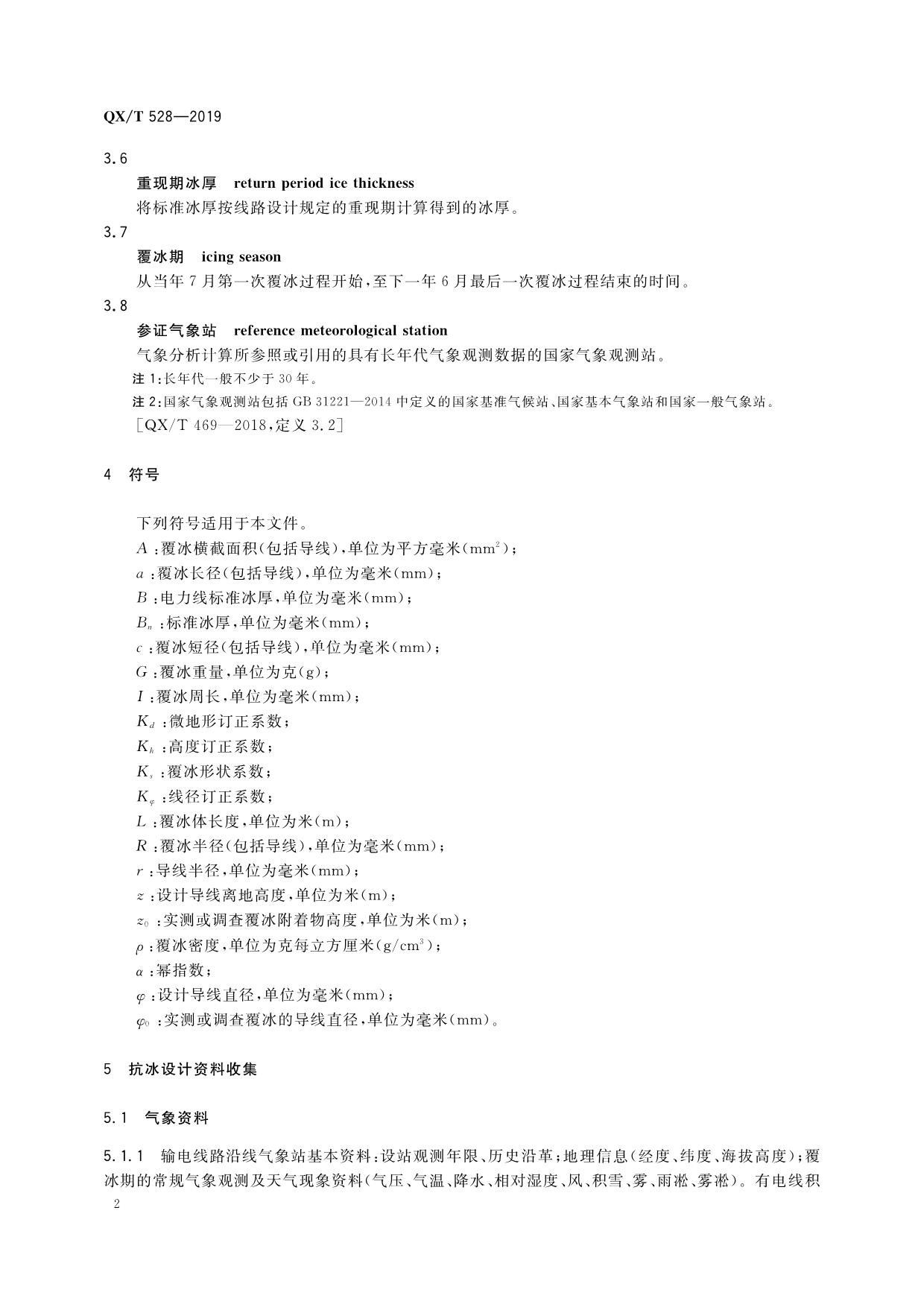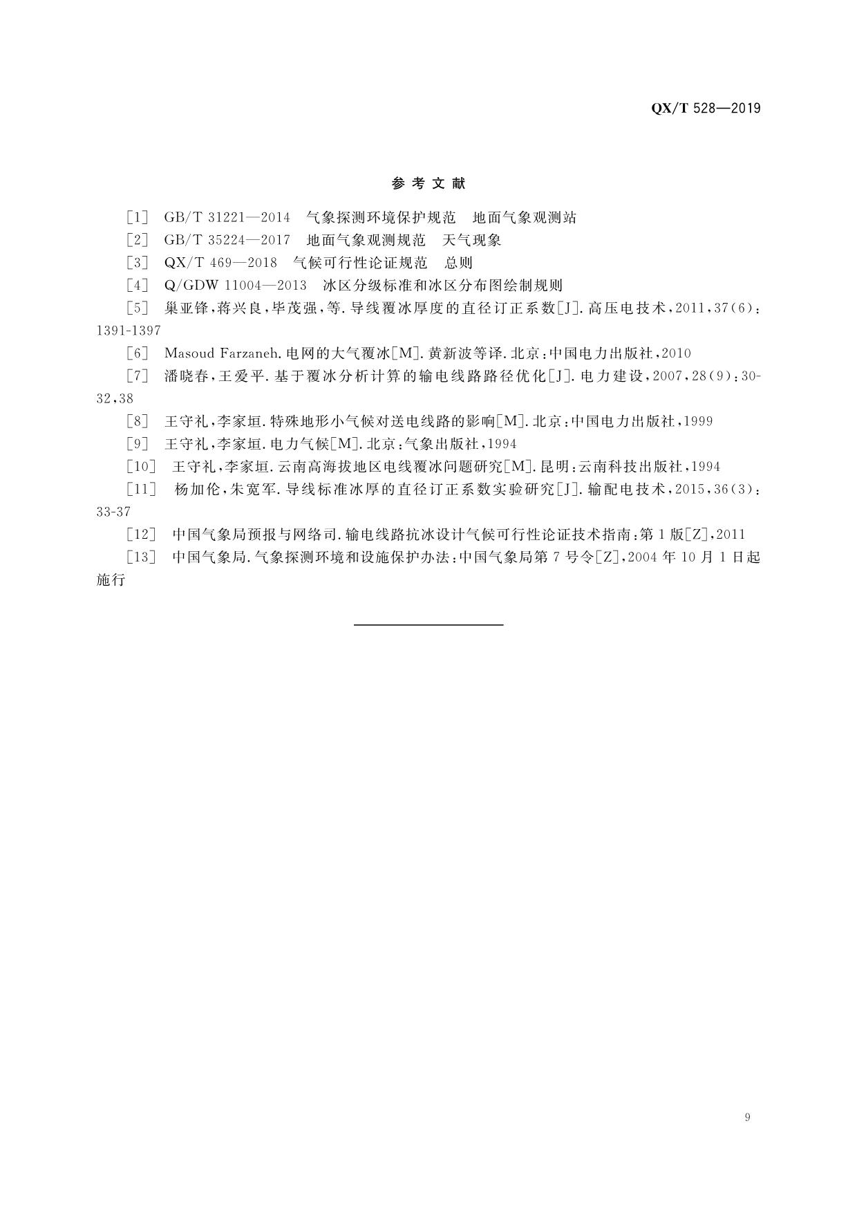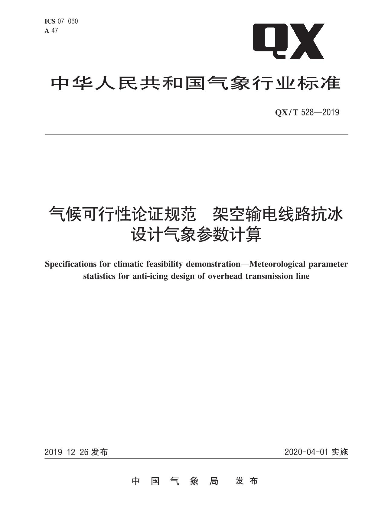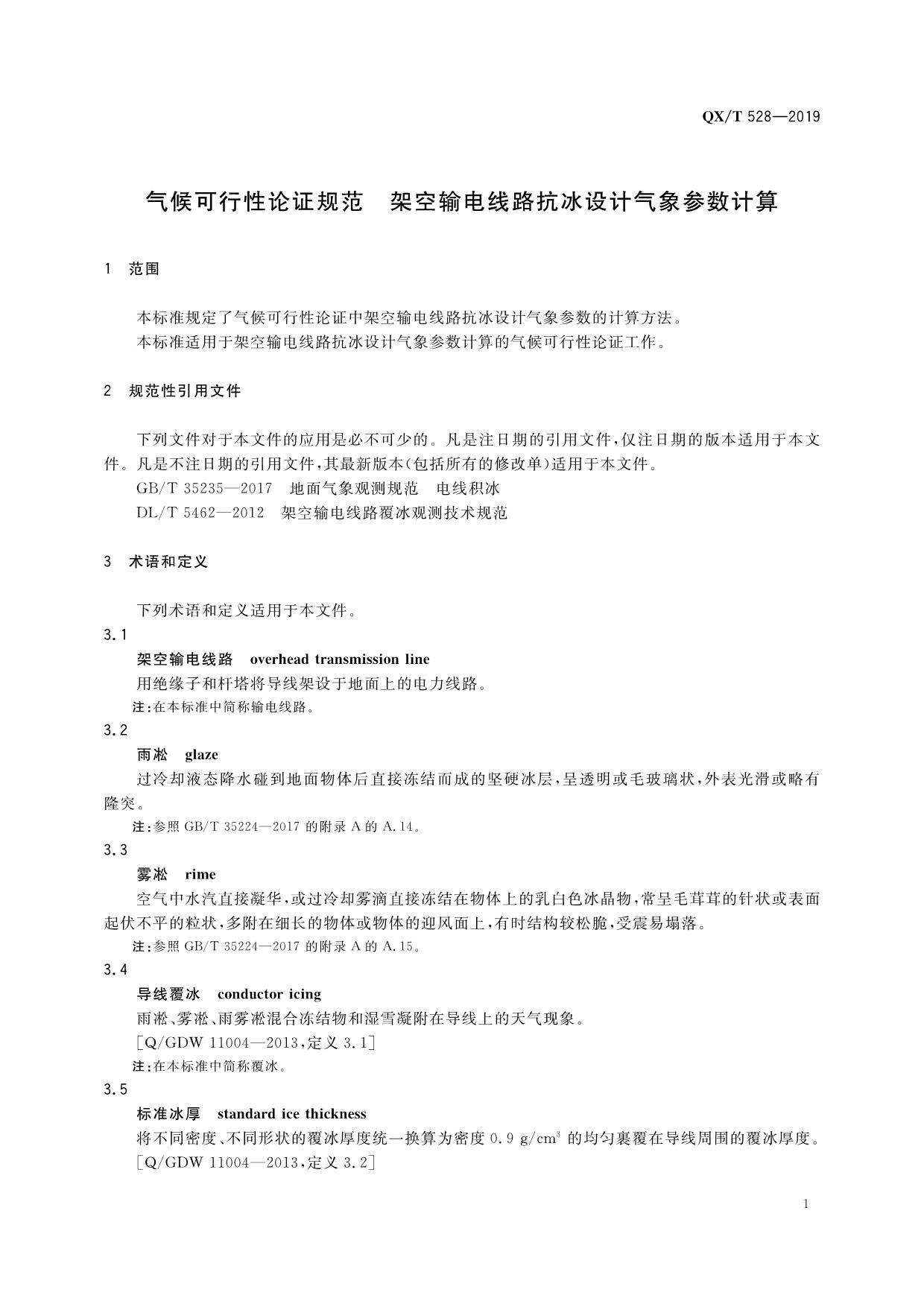 《气候可行性论证规范 架空输电线路抗冰设计气象参数计算》(QX/T 528—2019)