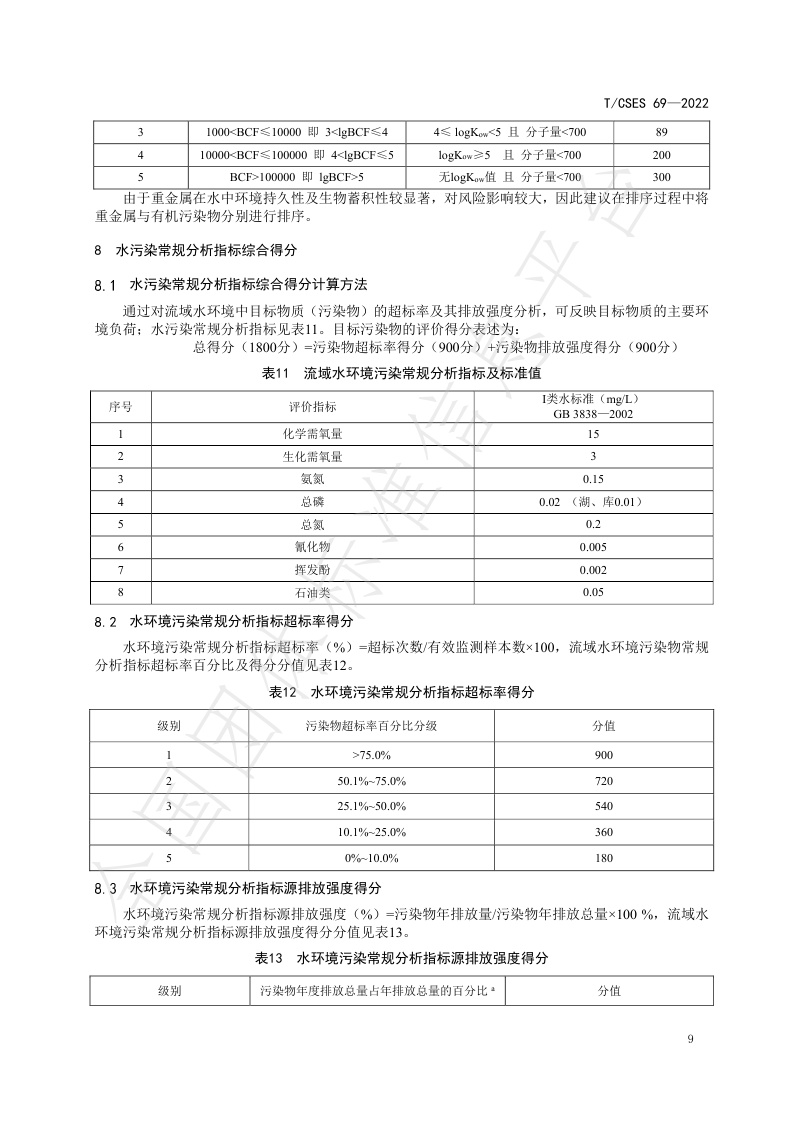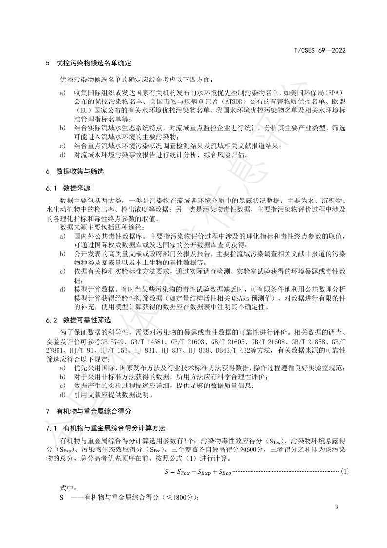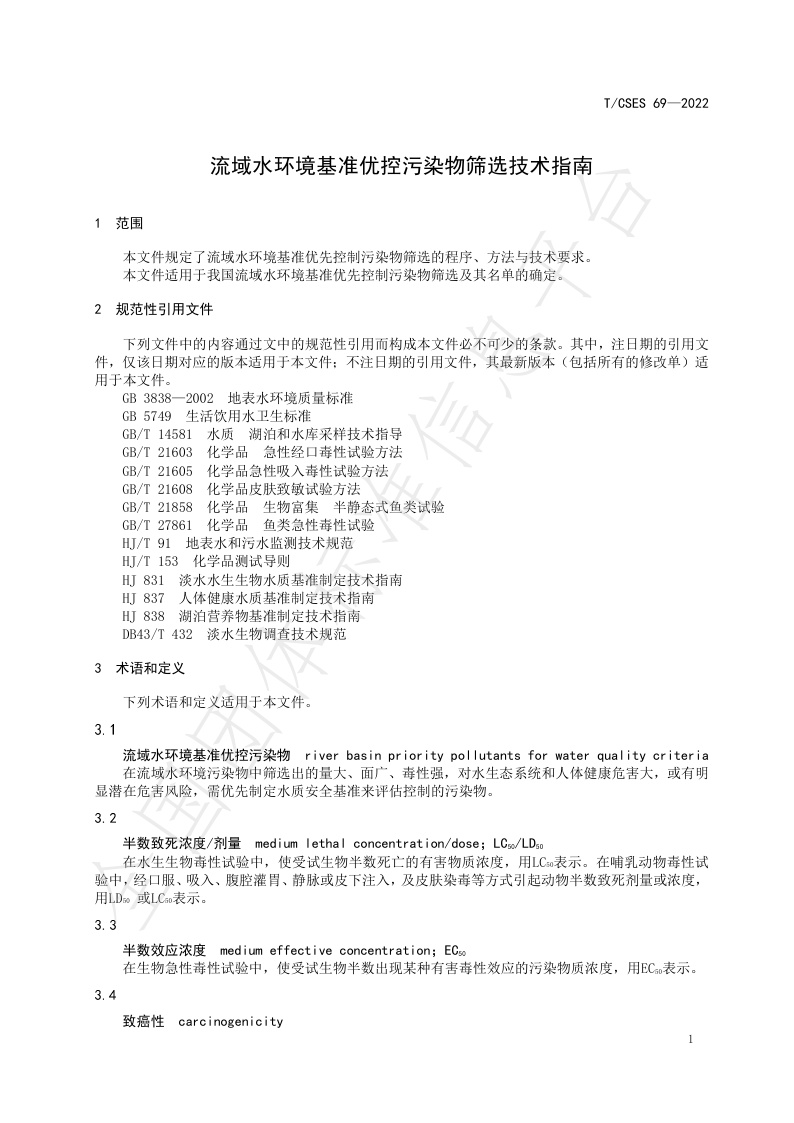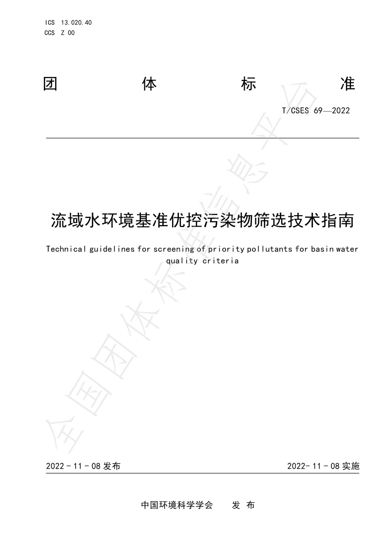 TCSES 69—2022《流域水环境基准优控污染物筛选技术指南》