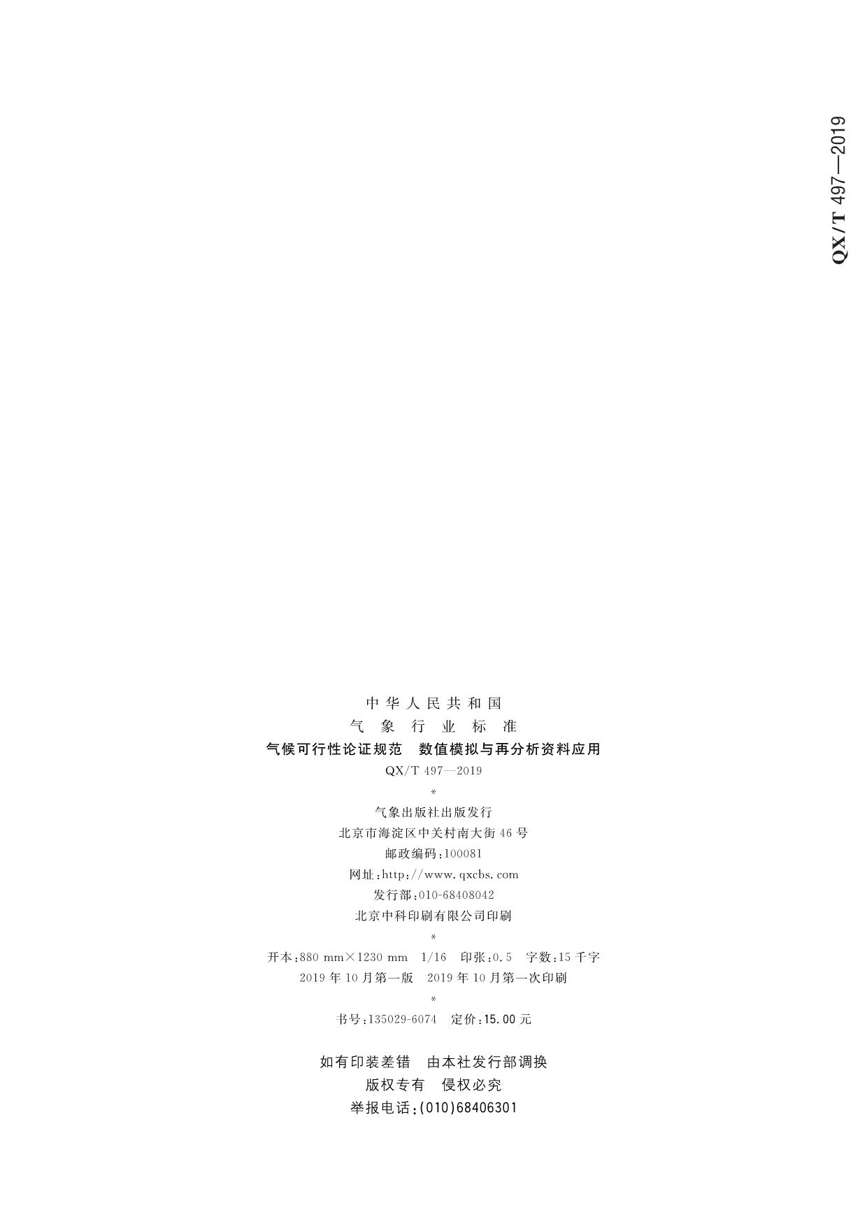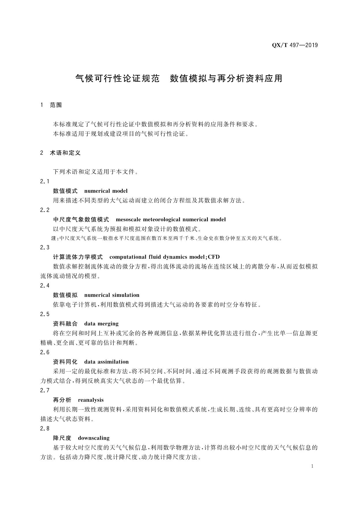 《气候可行性论证规范 数值模拟与再分析资料应用》(QX/T 497—2019)
