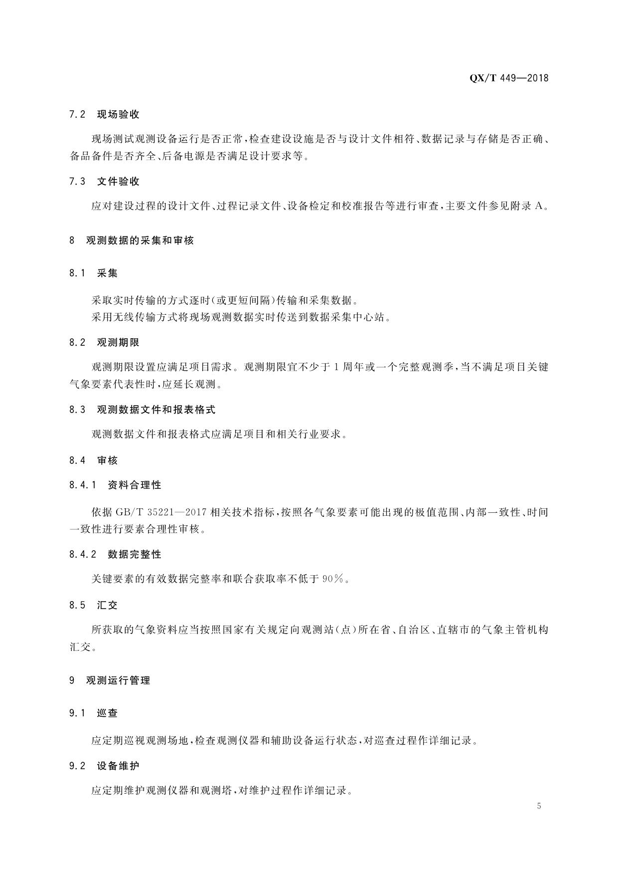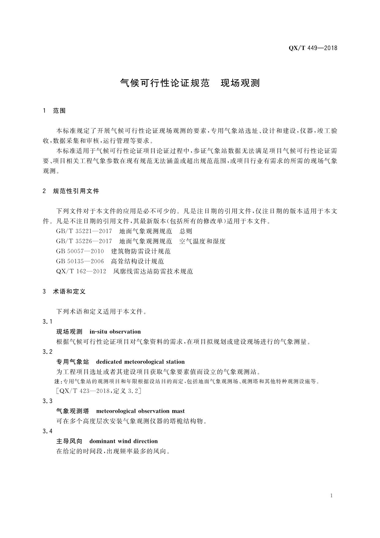 《气候可行性论证规范 现场观测》(QX/T 449-2018)