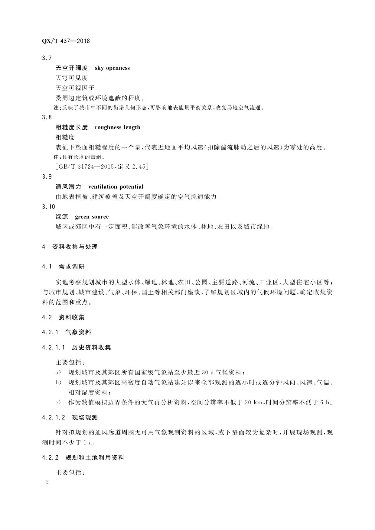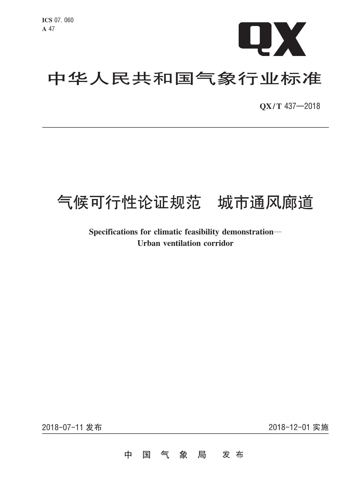 《气候可行性论证规范 城市通风廊道》(QX/T 437-2018)