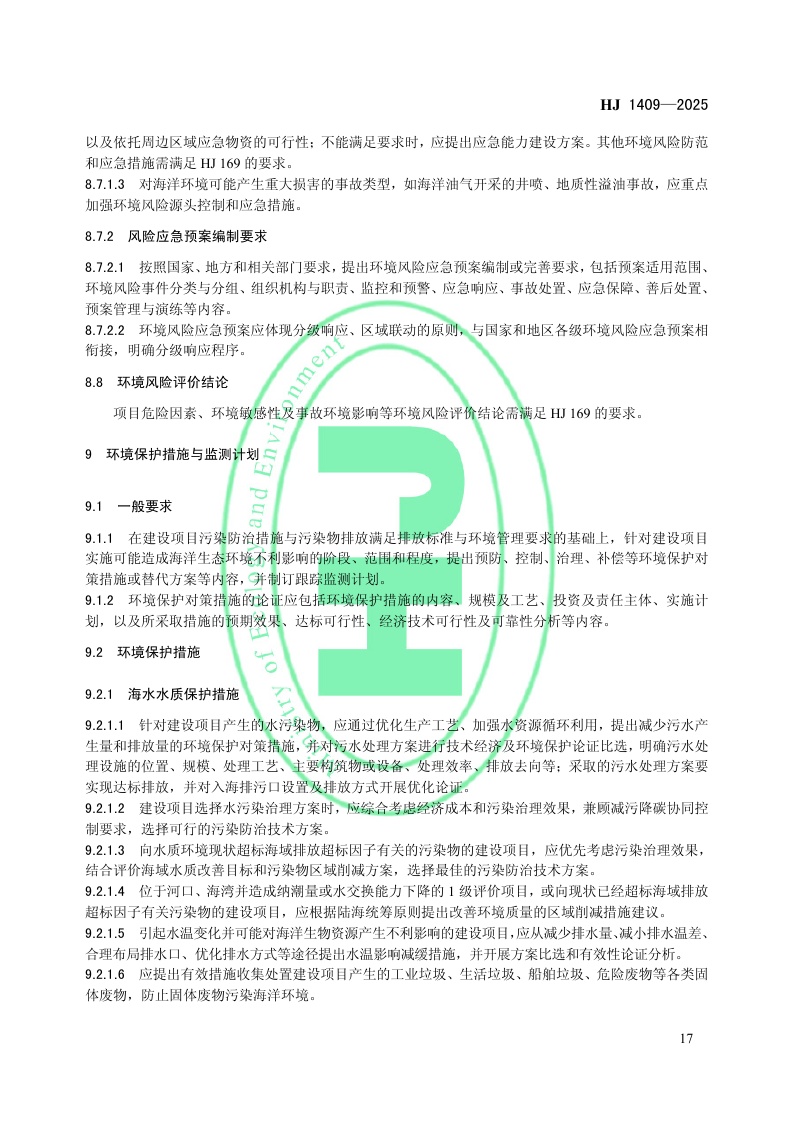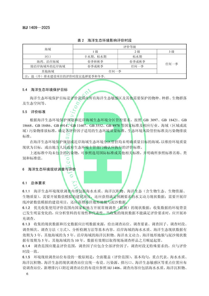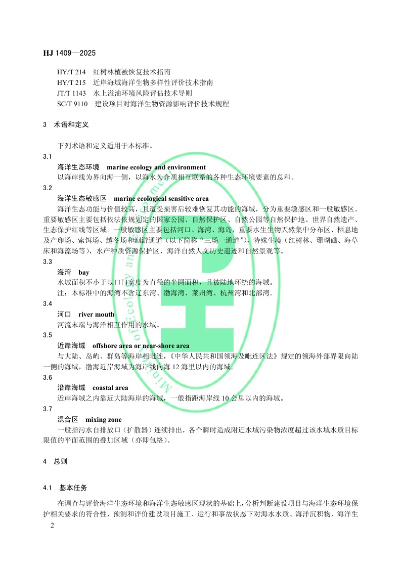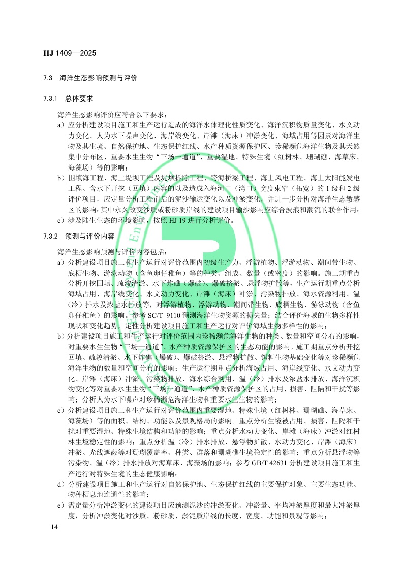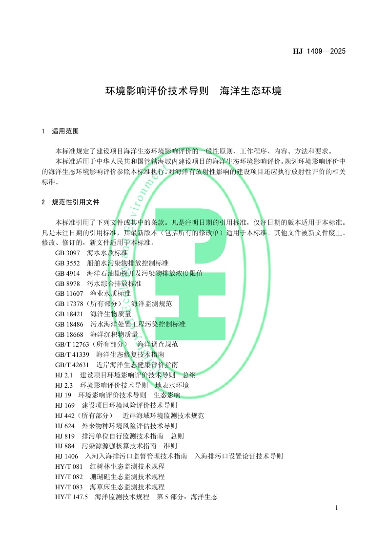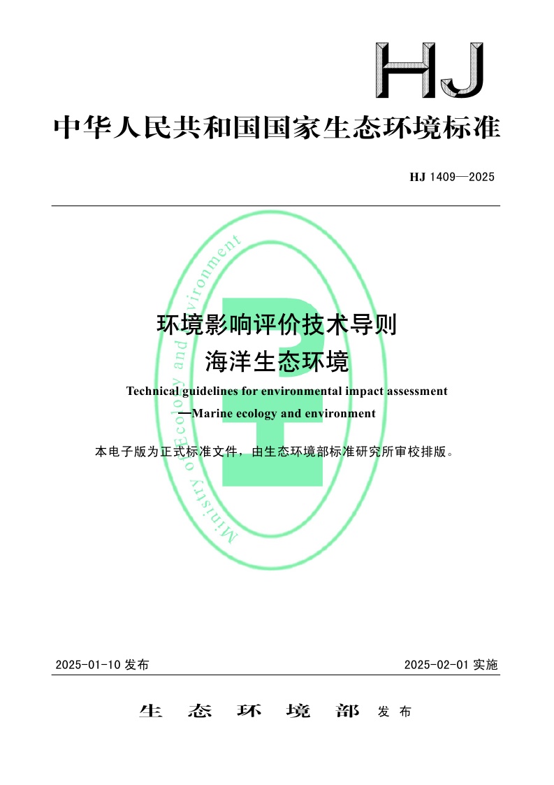 《环境影响评价技术导则 海洋生态环境》(HJ 1409—2025)