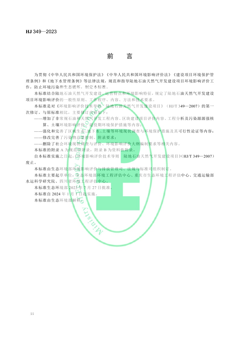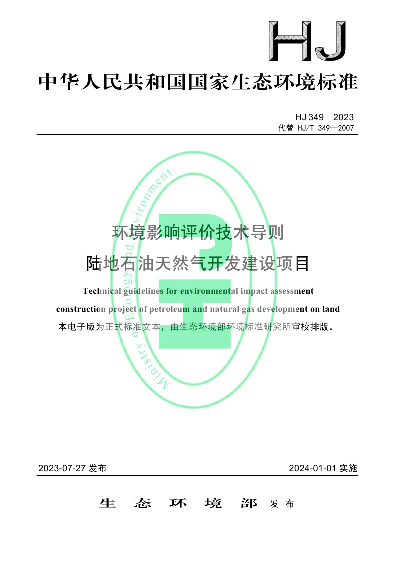 《环境影响评价技术导则 陆地石油天然气开发建设项目》(HJ 349—2023)