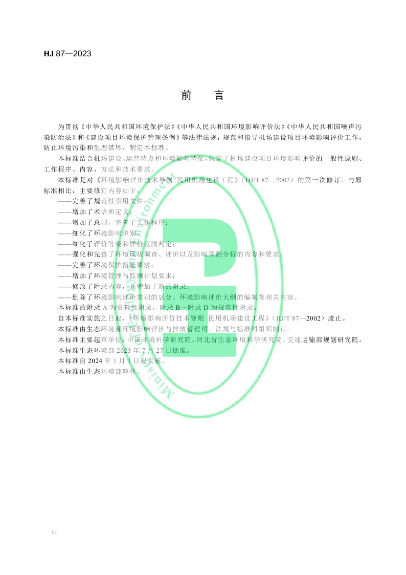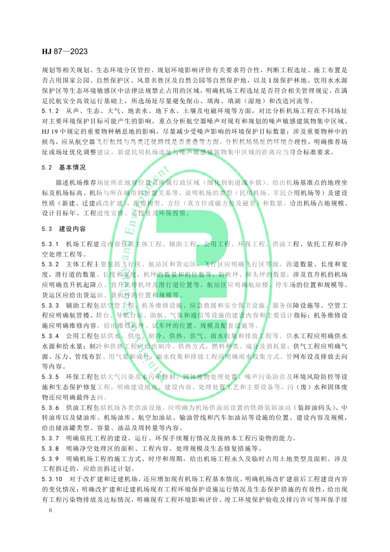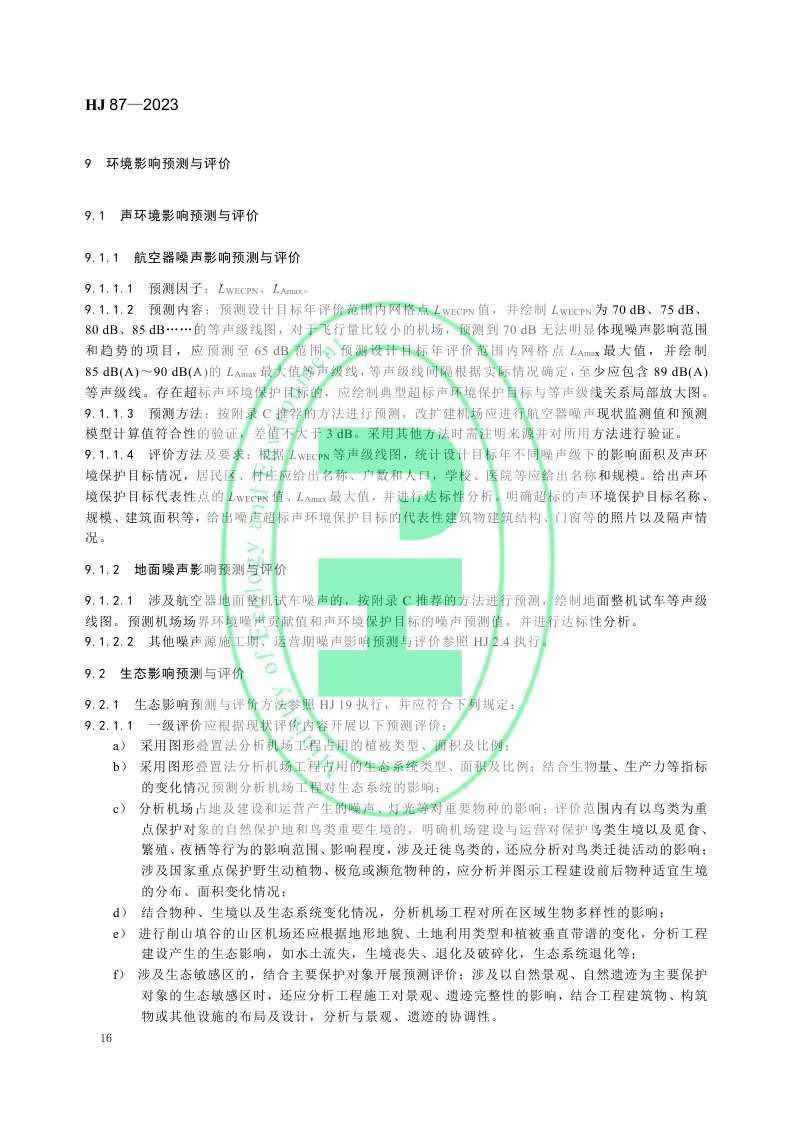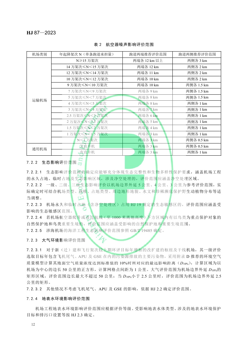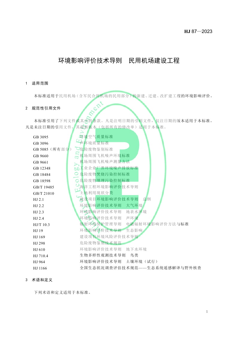 《 环境影响评价技术导则 民用机场建设工程 》(HJ 87—2023)