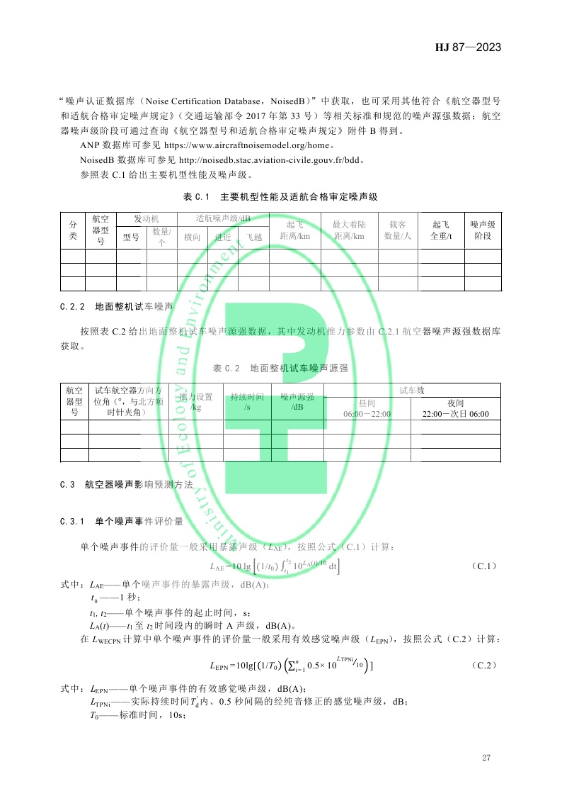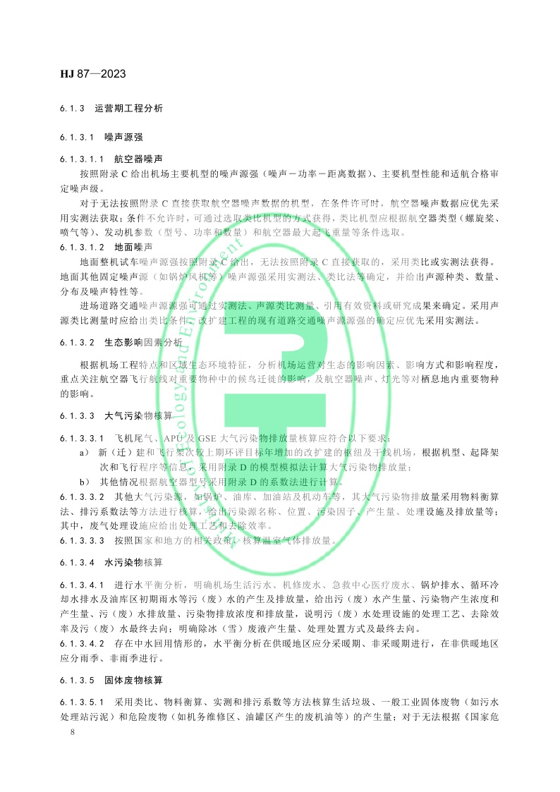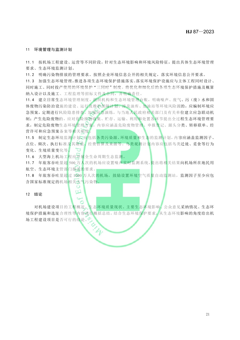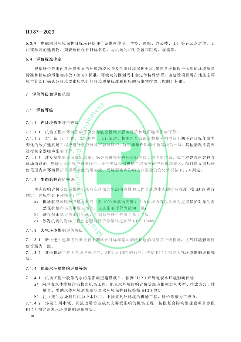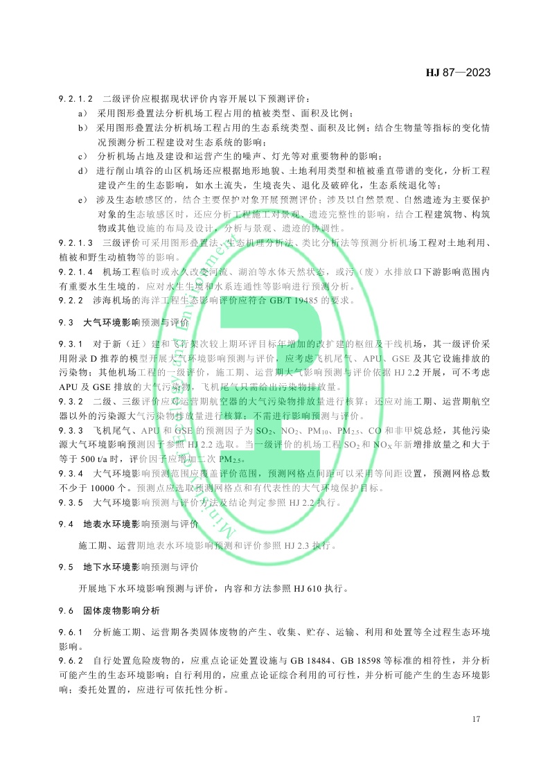 《 环境影响评价技术导则 民用机场建设工程 》(HJ 87—2023)