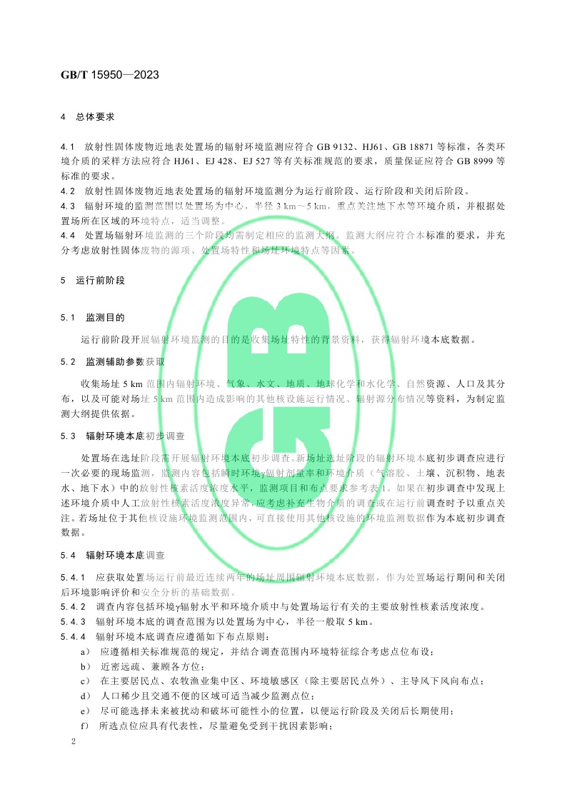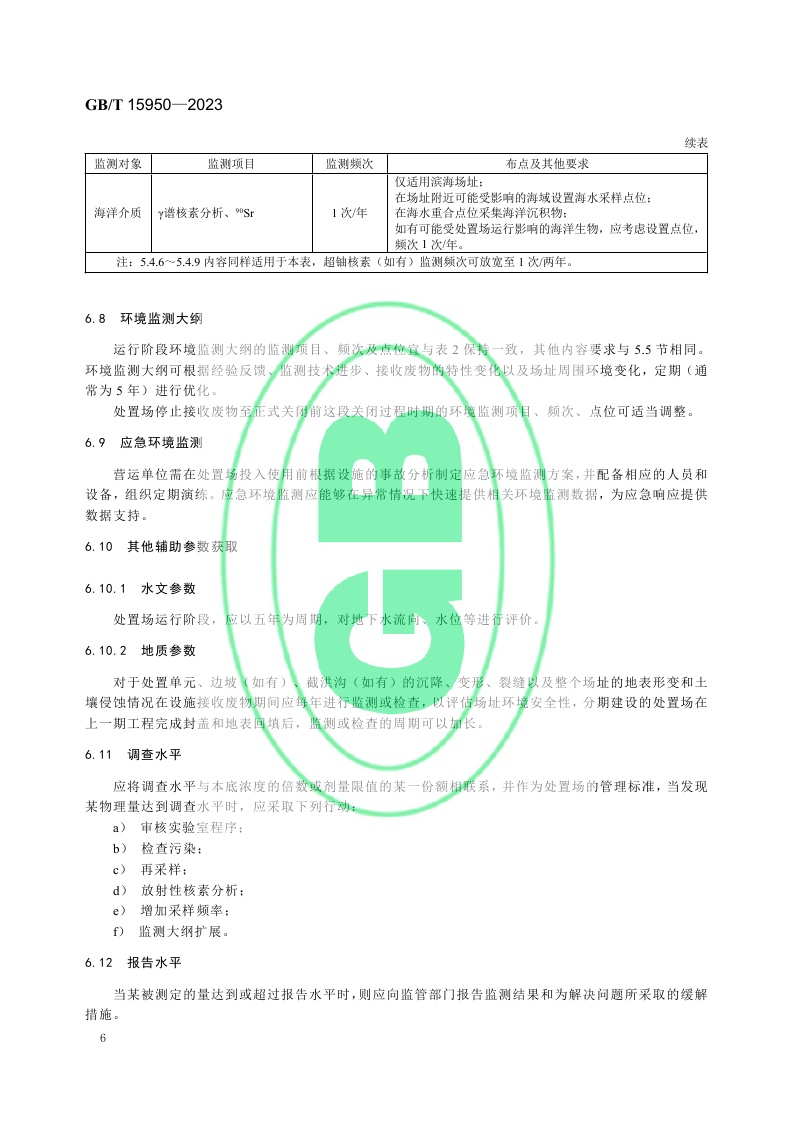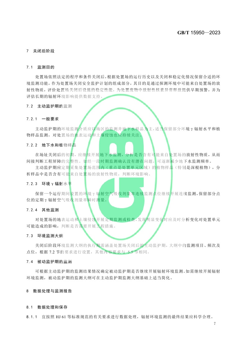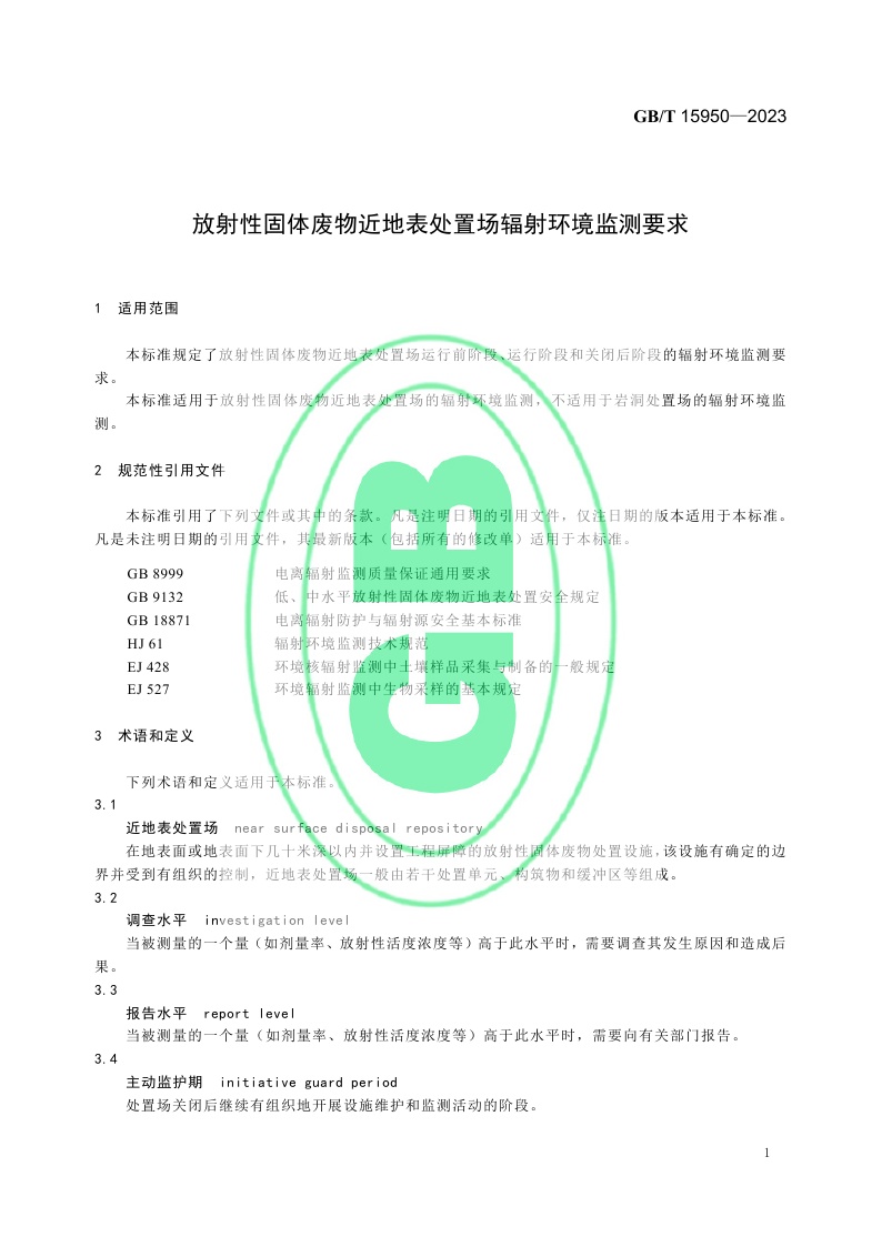 《放射性固体废物近地表处置场辐射环境监测要求》(GB/T 15950—2023)