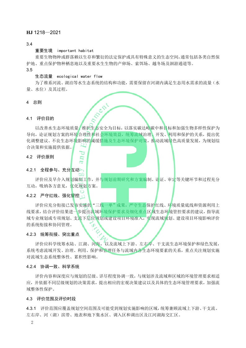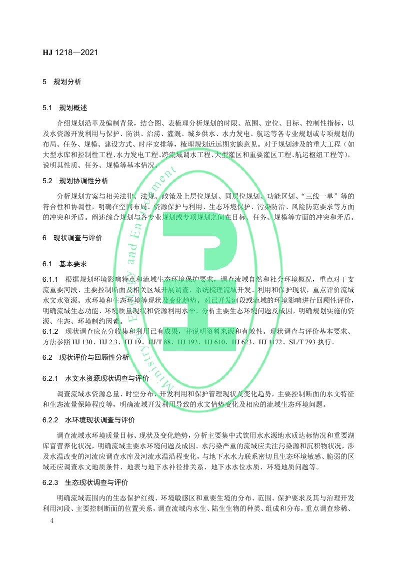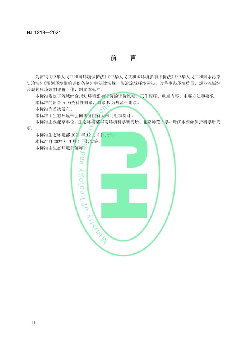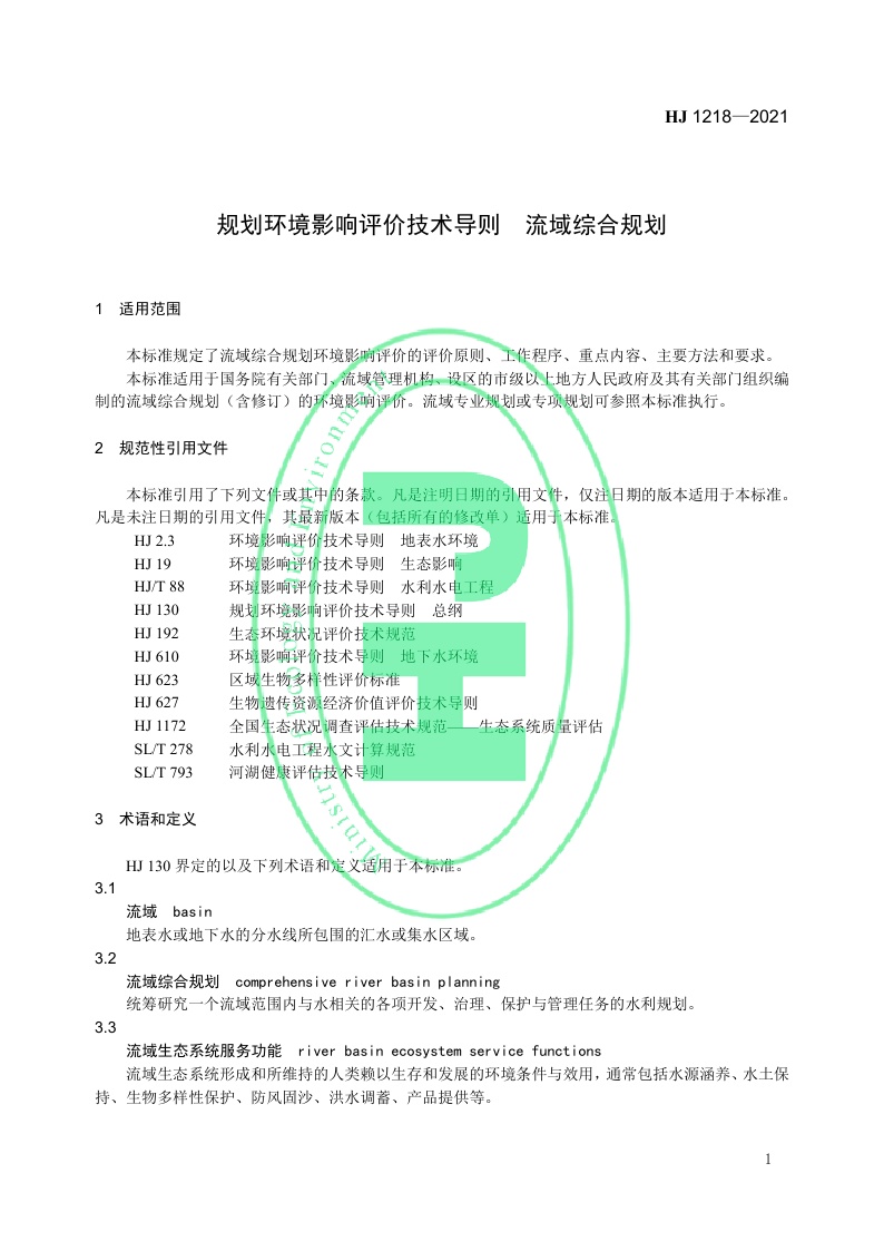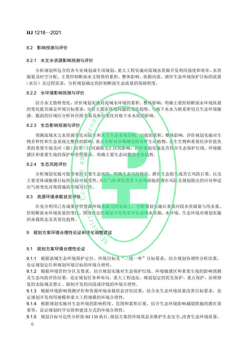 《规划环境影响评价技术导则 流域综合规划》(HJ 1218—2021)