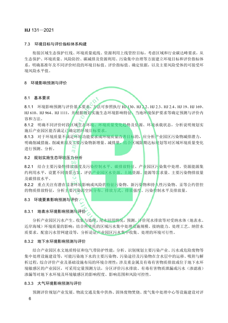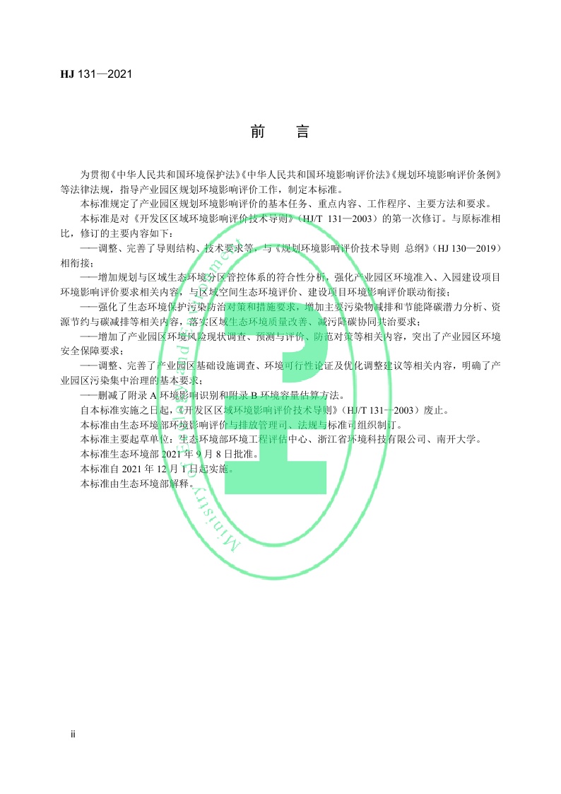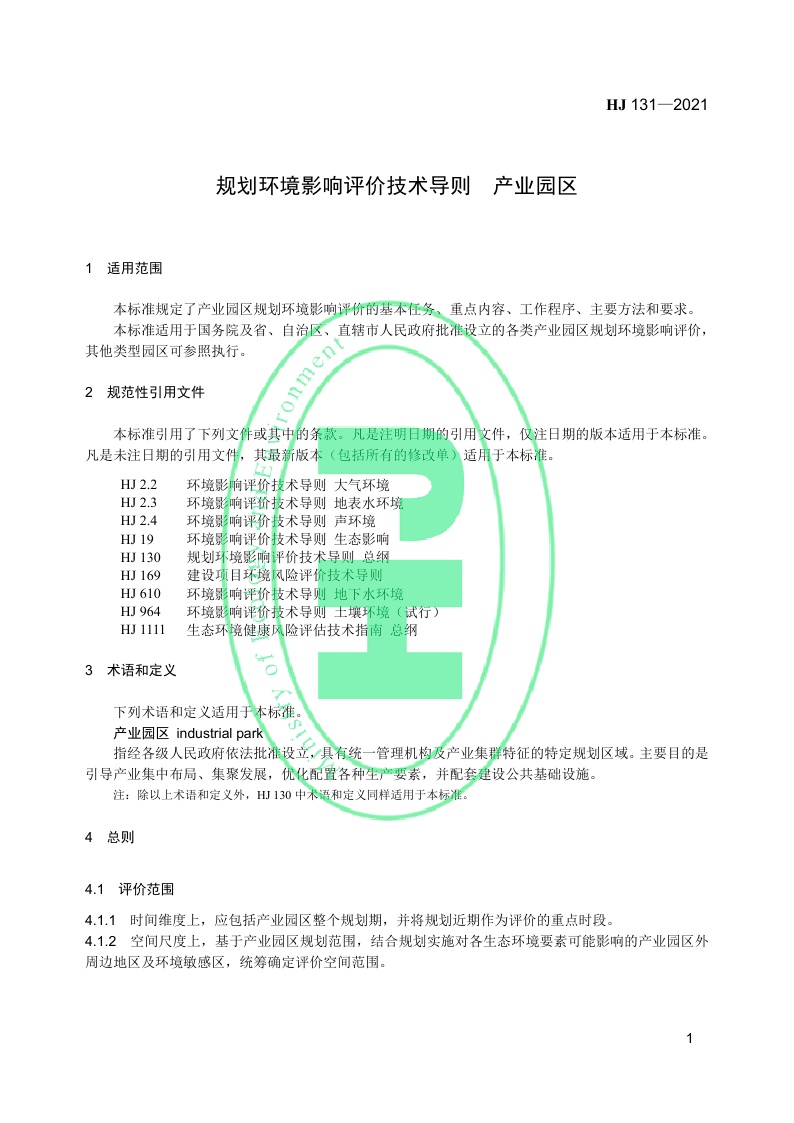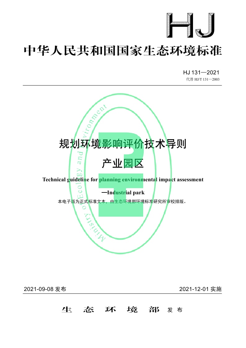 《规划环境影响评价技术导则 产业园区》(HJ 131—2021)