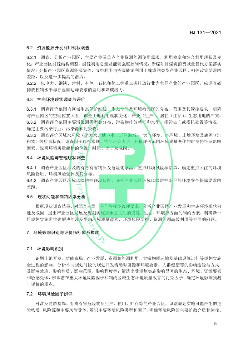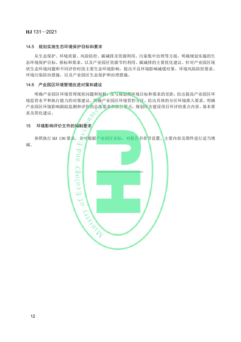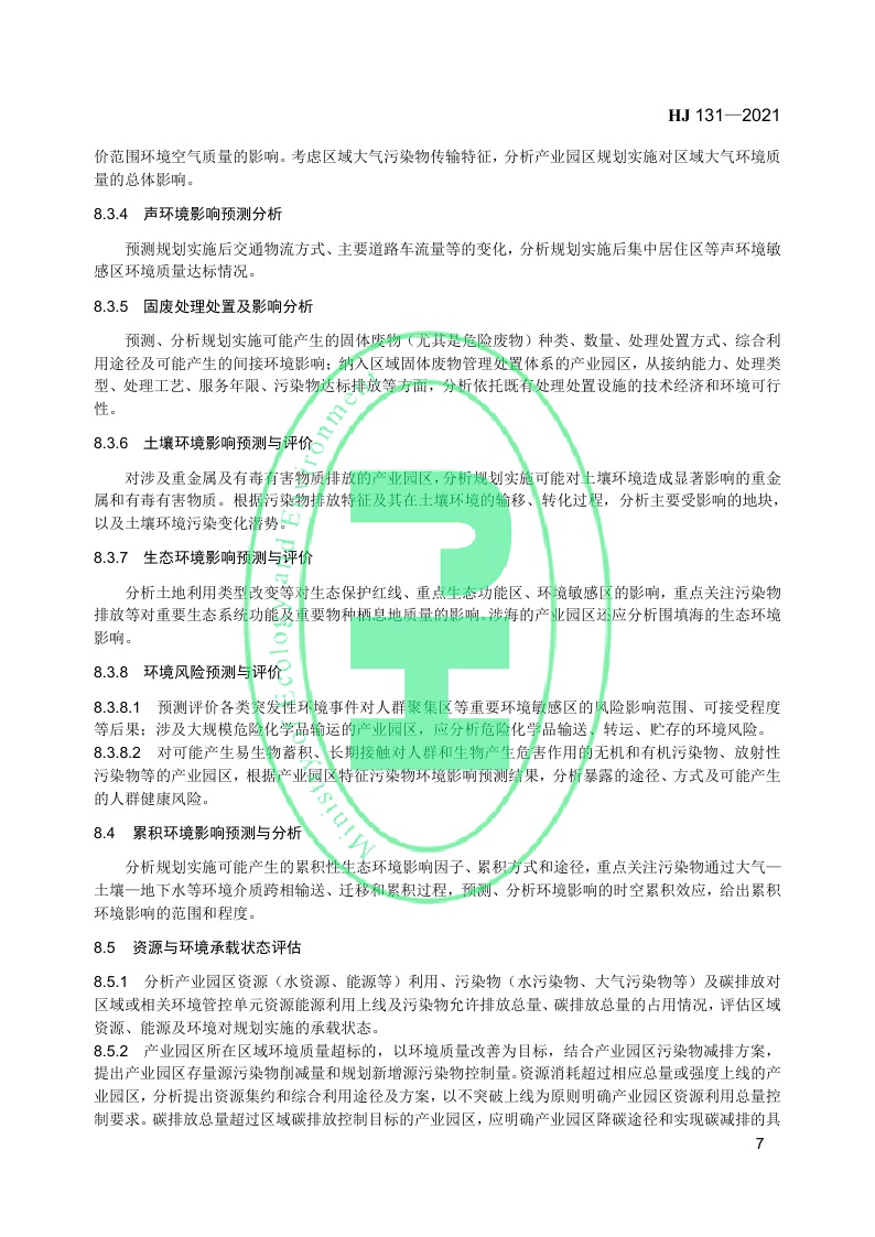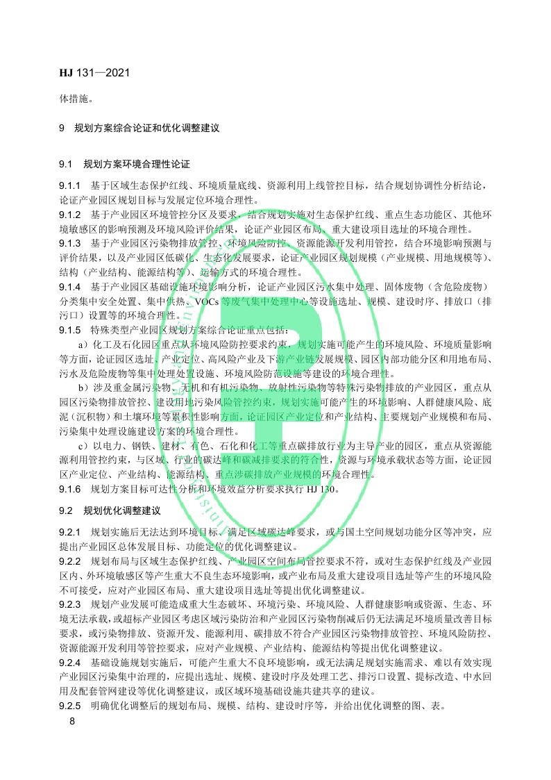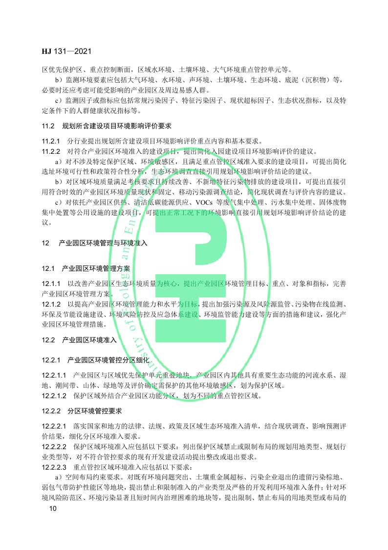 《规划环境影响评价技术导则 产业园区》(HJ 131—2021)
