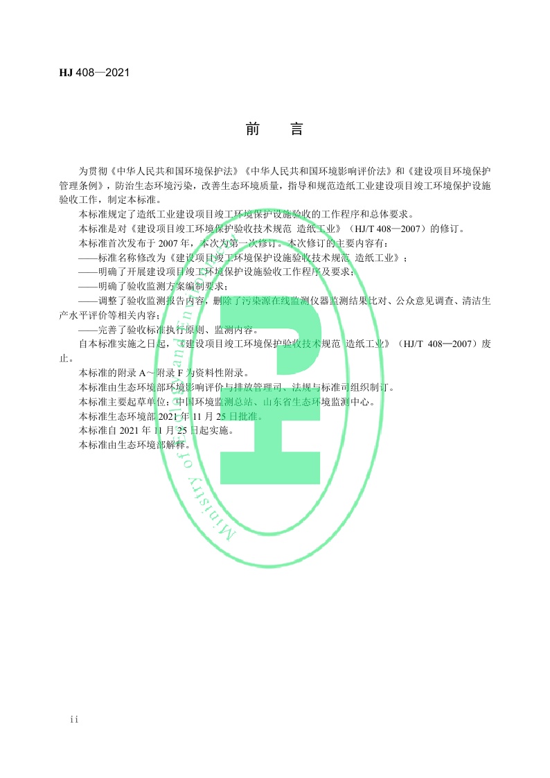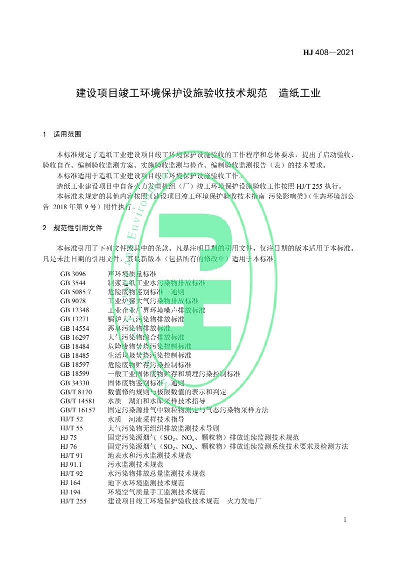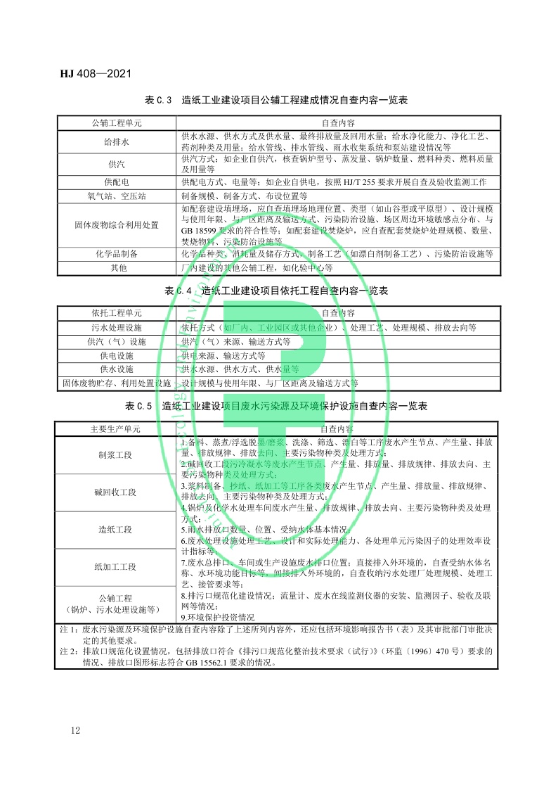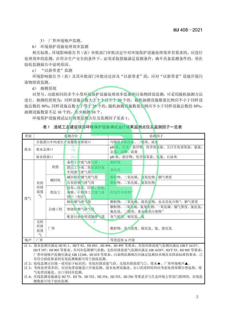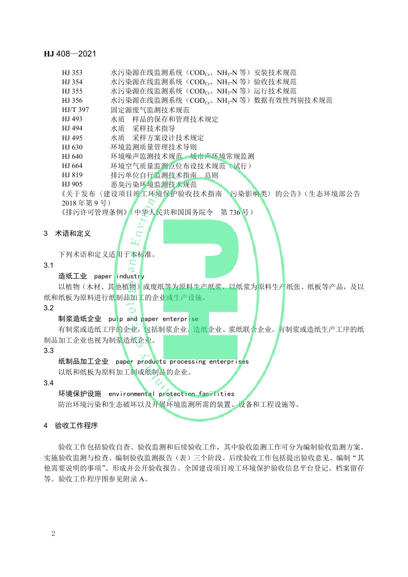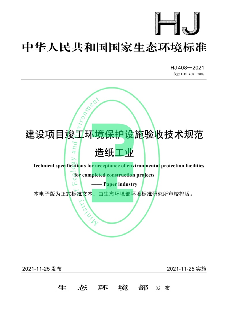 《建设项目竣工环境保护设施验收技术规范 造纸工业》(HJ 408—2021)