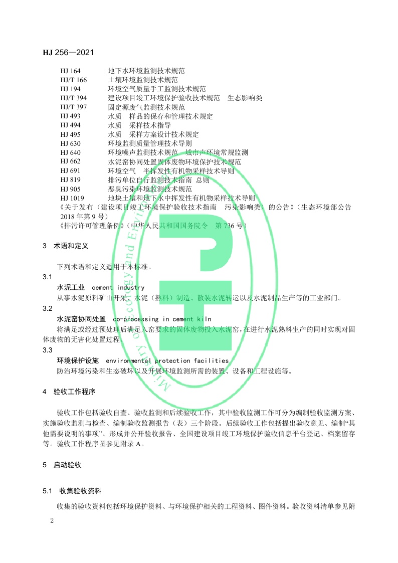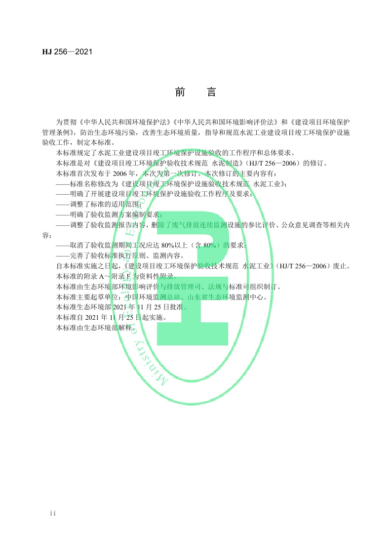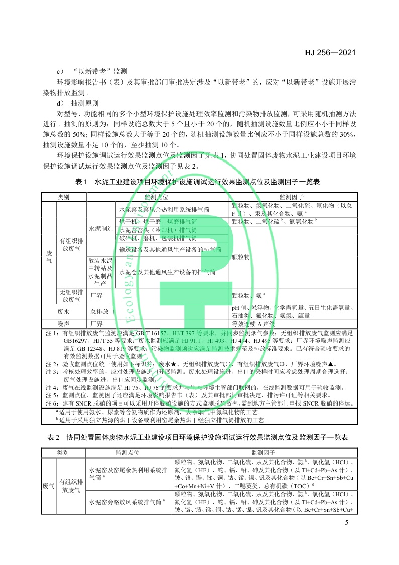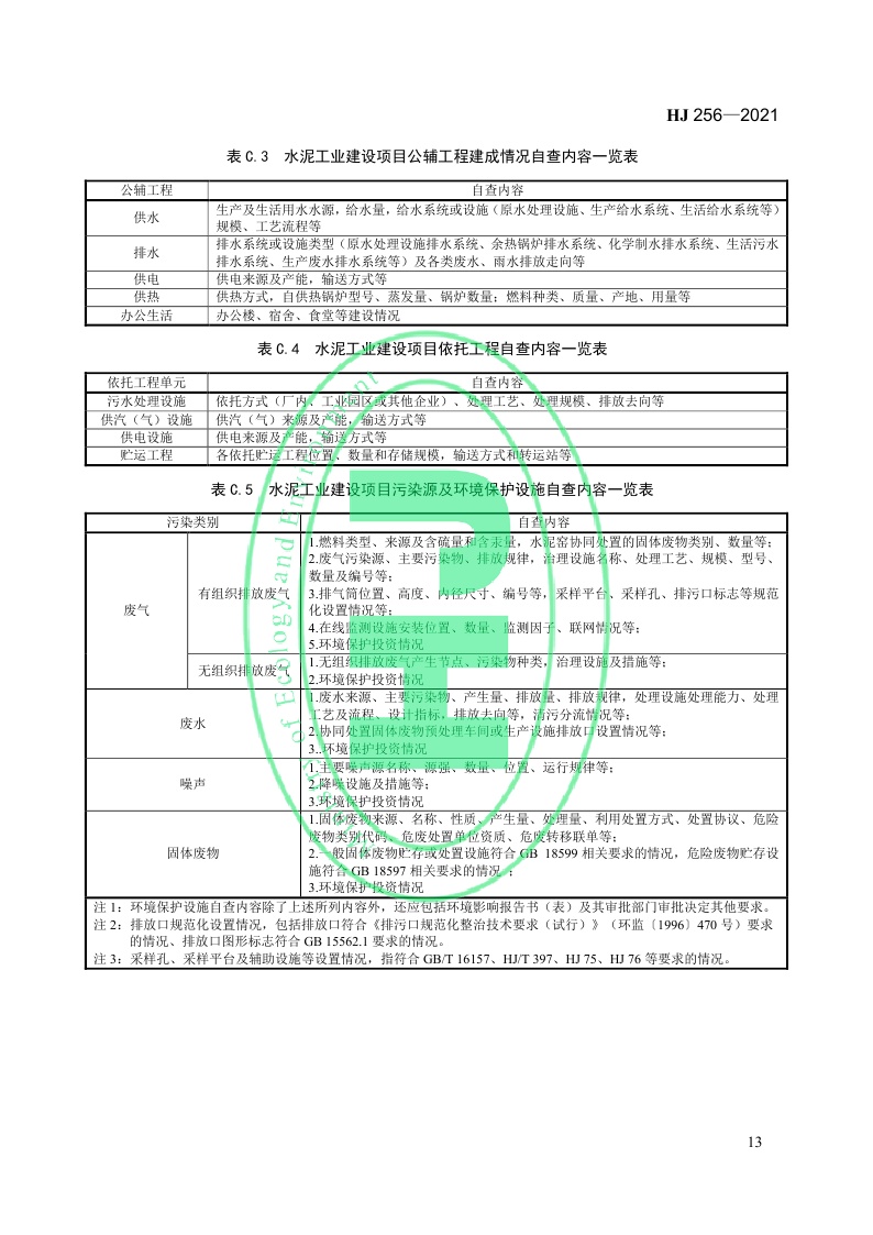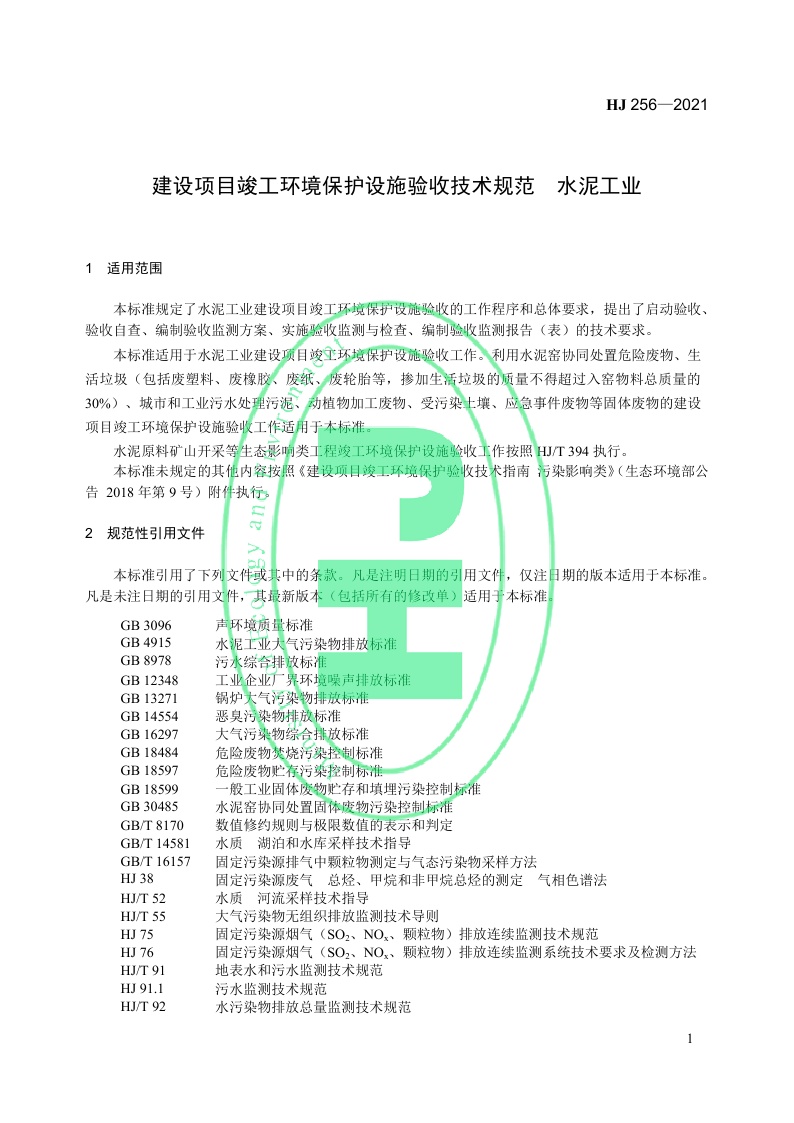 《建设项目竣工环境保护设施验收技术规范 水泥工业》(HJ 256—2021)