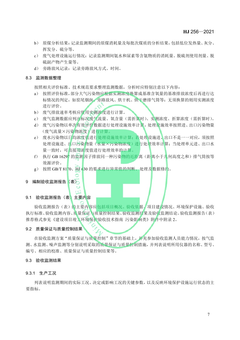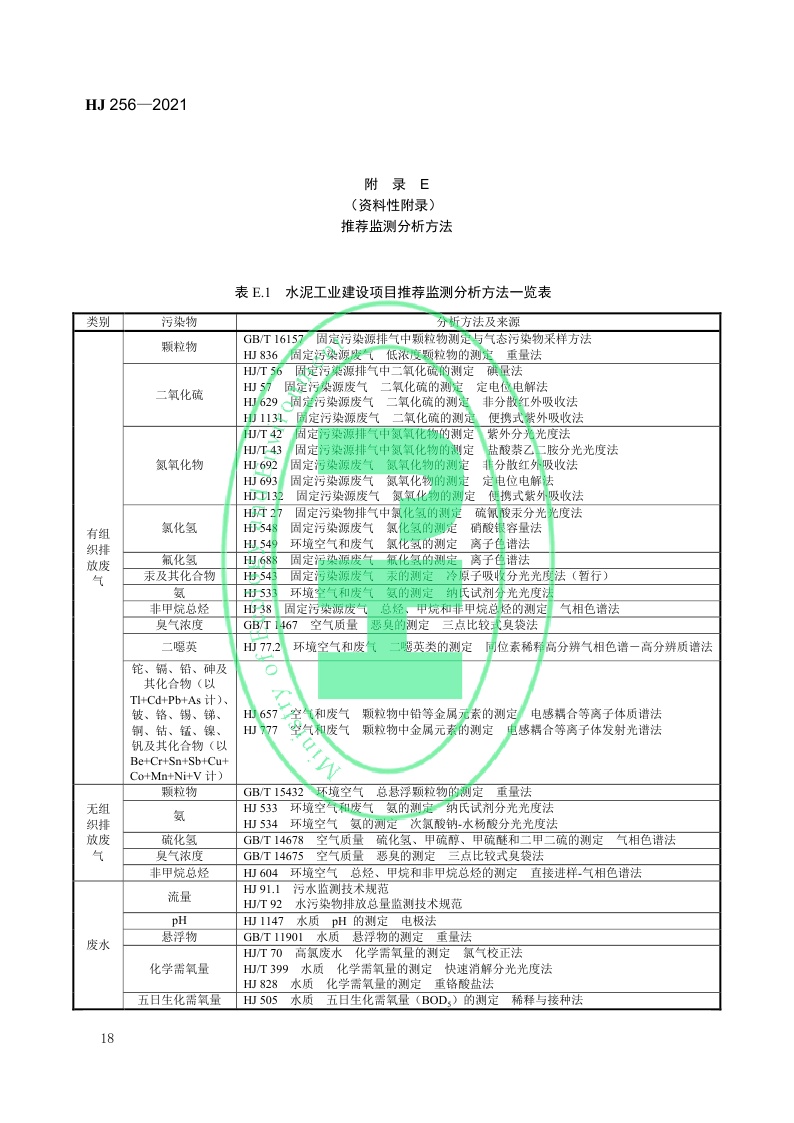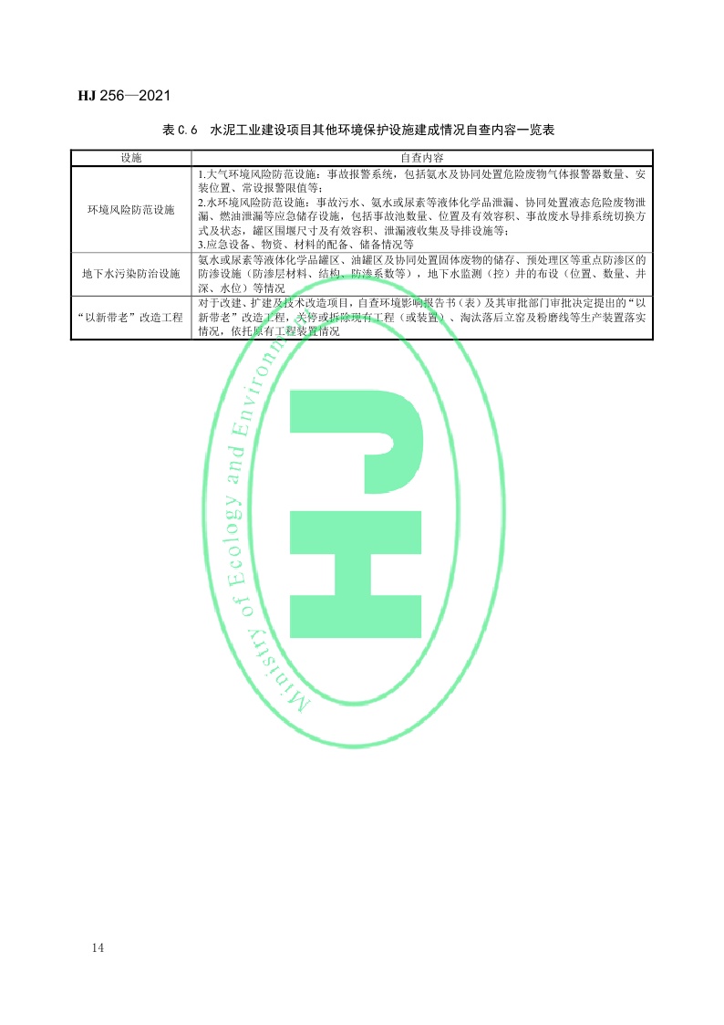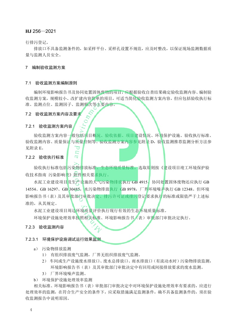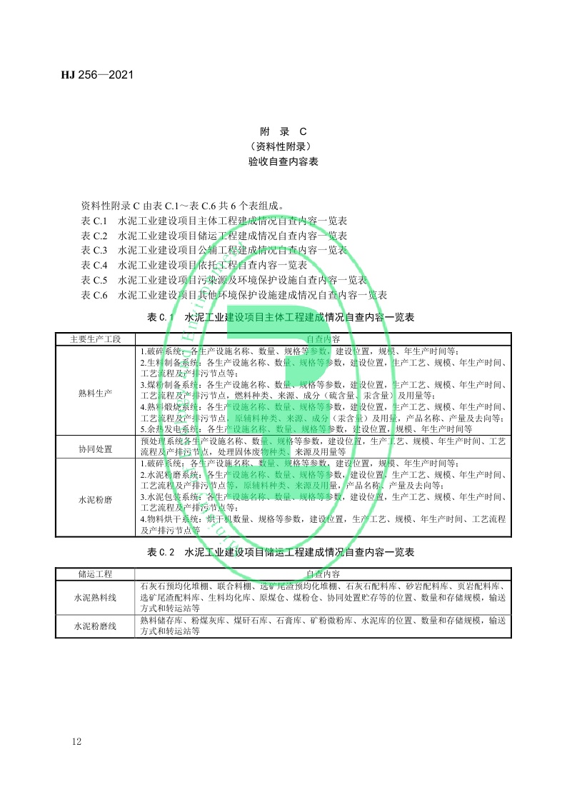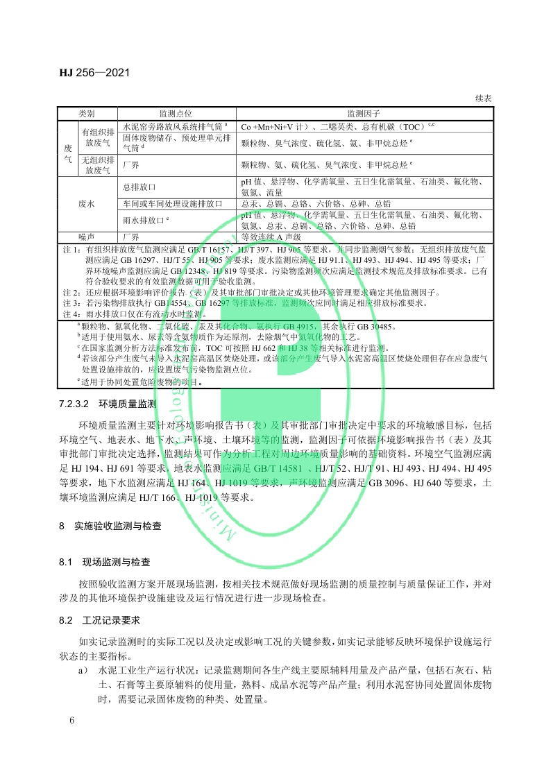 《建设项目竣工环境保护设施验收技术规范 水泥工业》(HJ 256—2021)