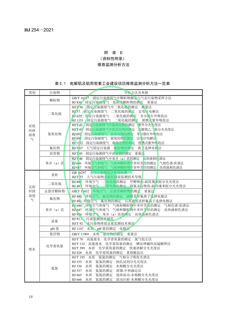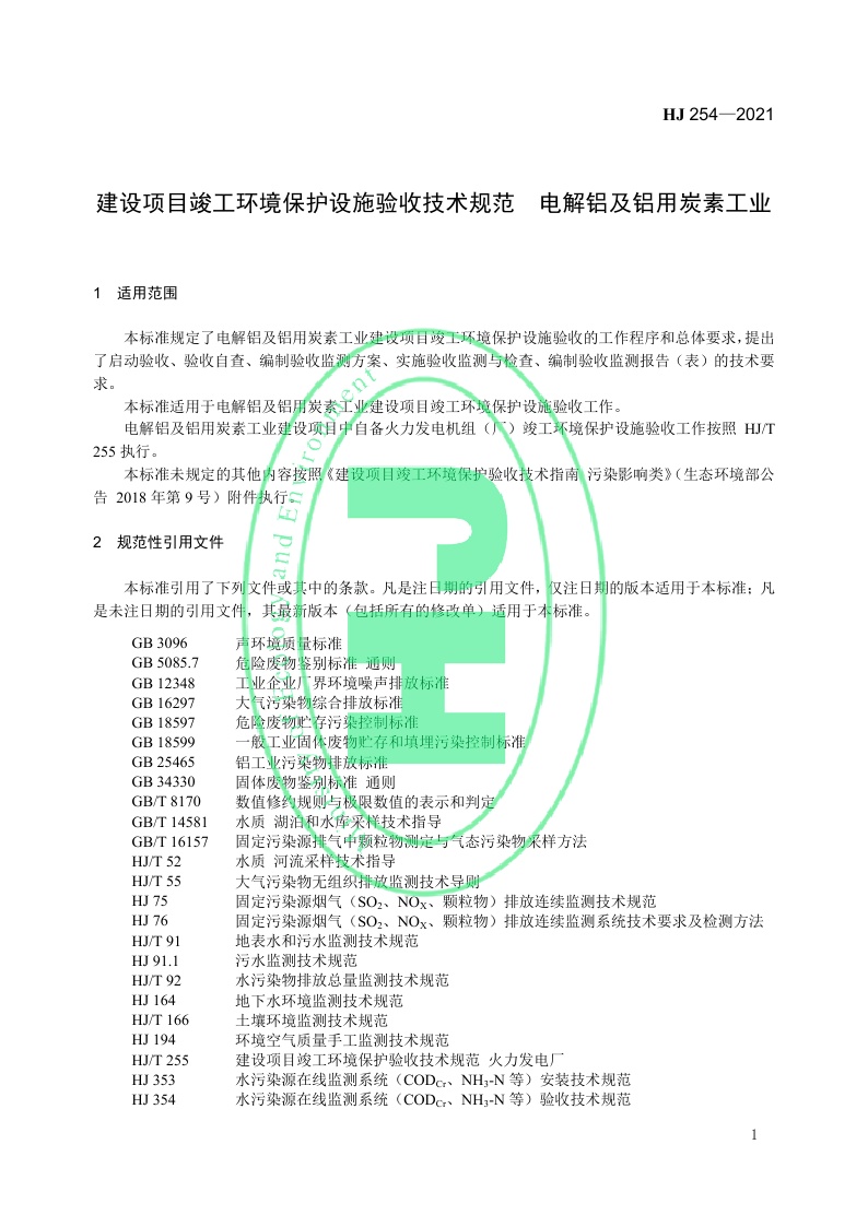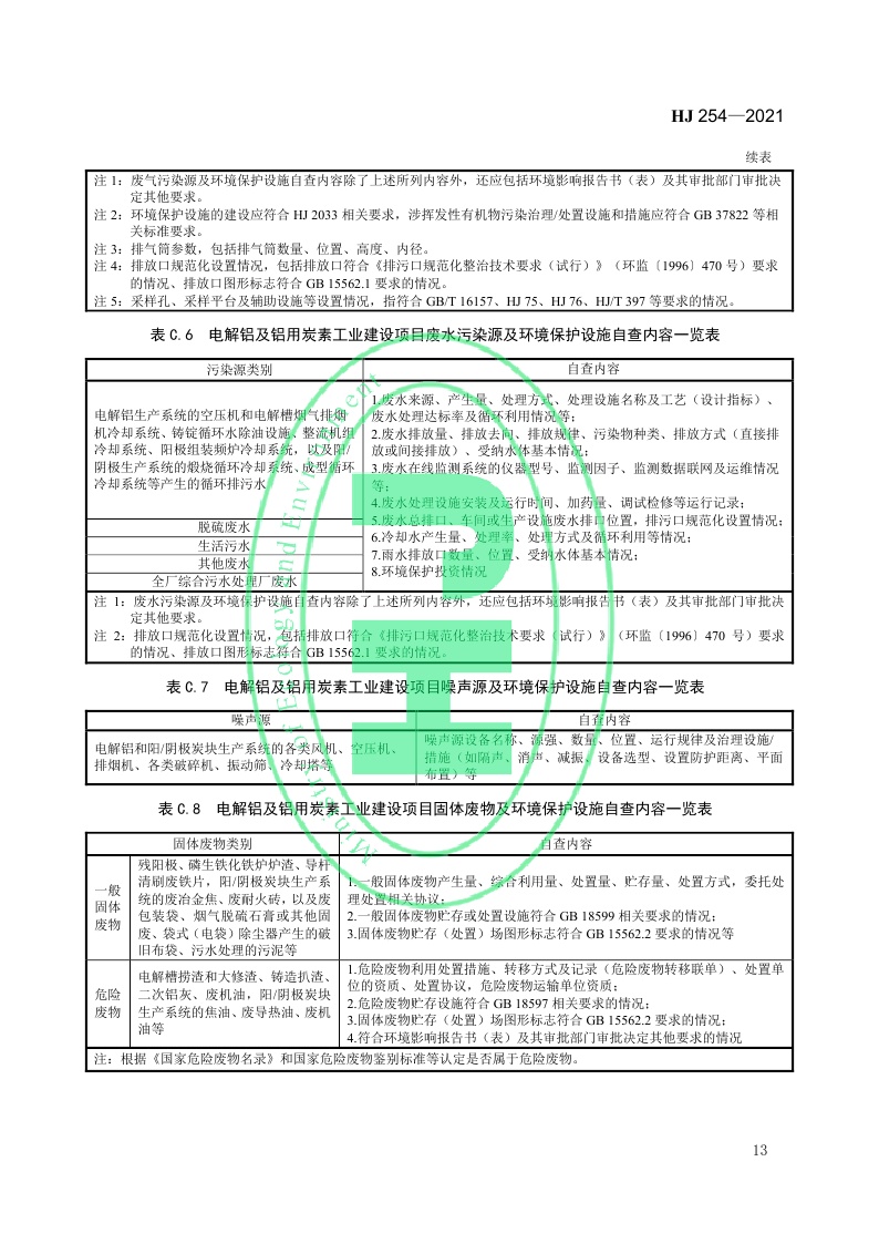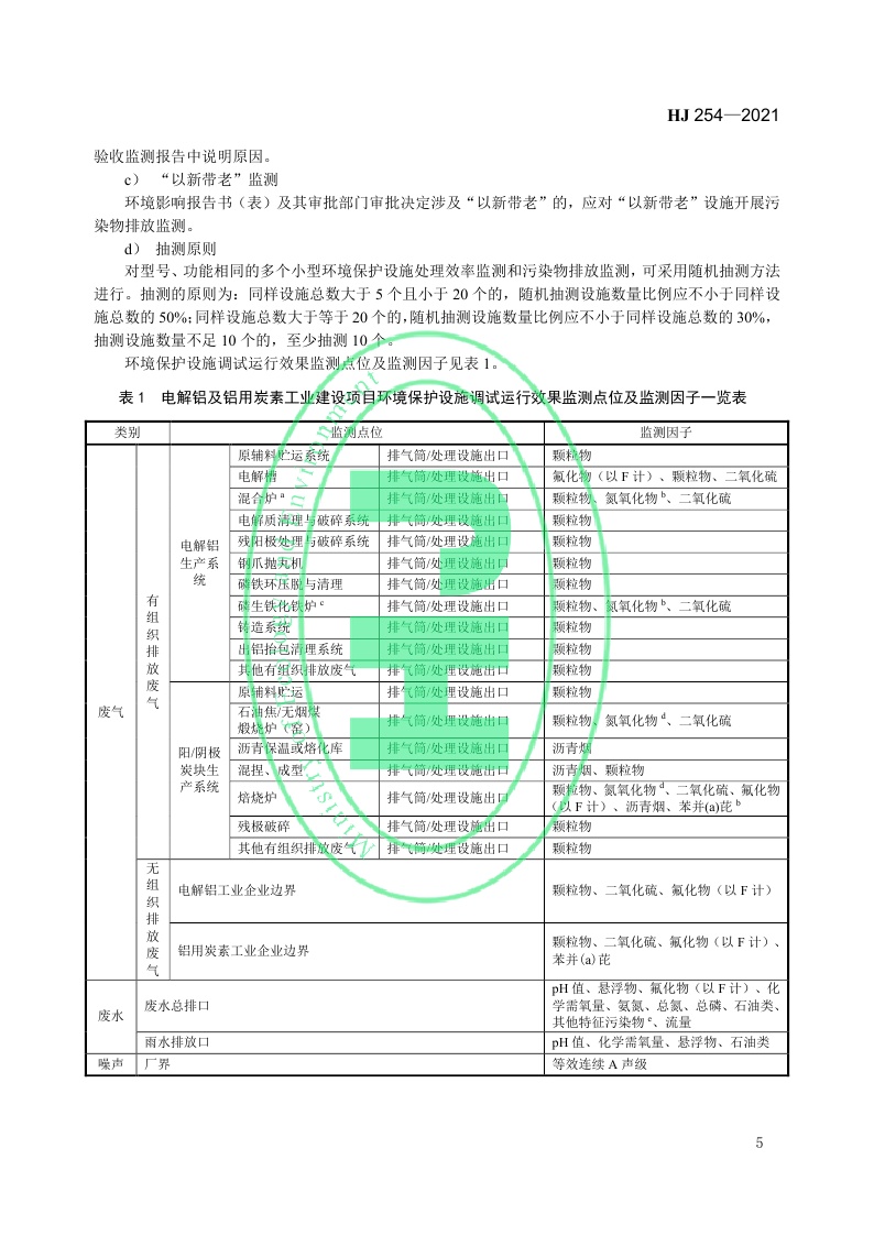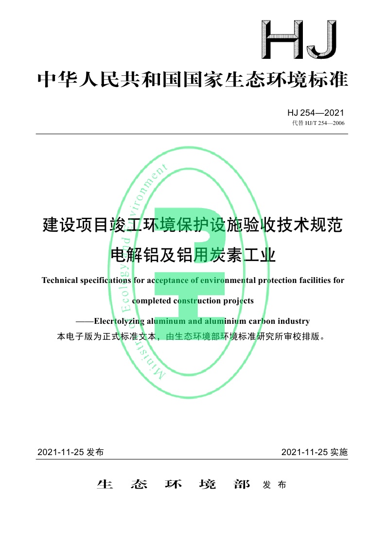 《建设项目竣工环境保护设施验收技术规范 电解铝及铝用炭素工业》(HJ 254—2021)