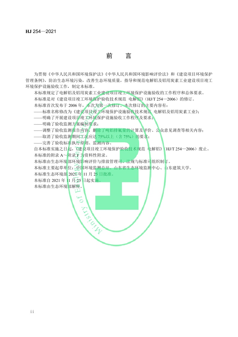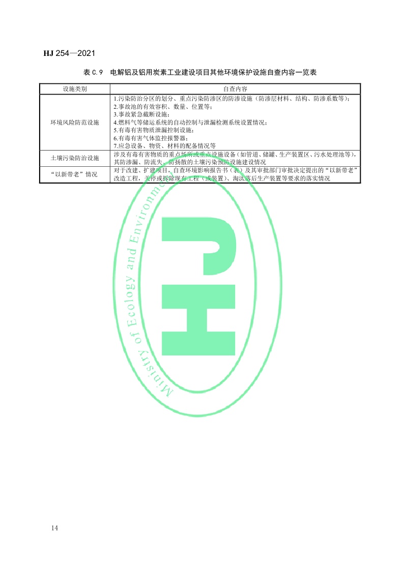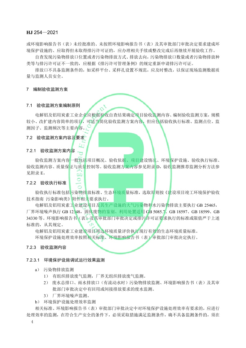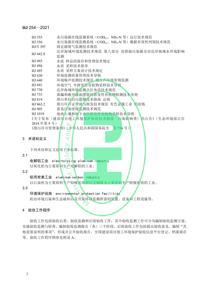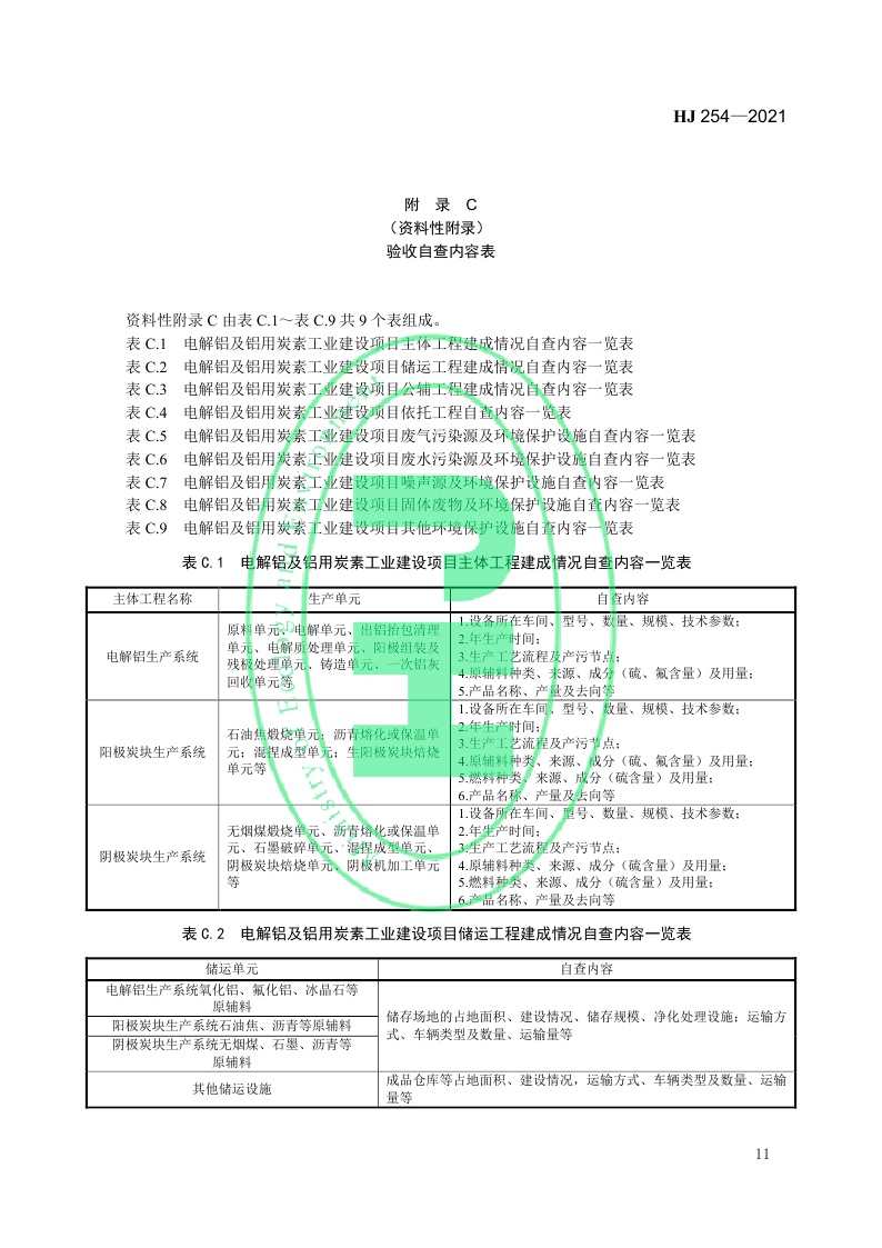 《建设项目竣工环境保护设施验收技术规范 电解铝及铝用炭素工业》(HJ 254—2021)
