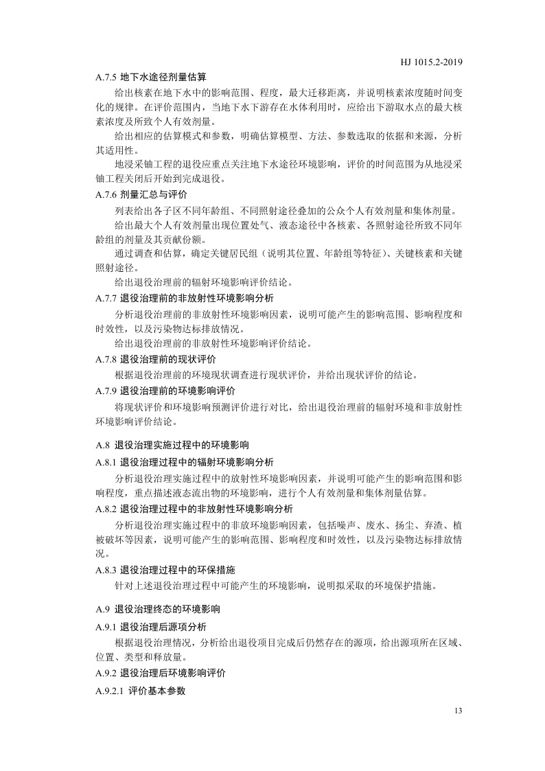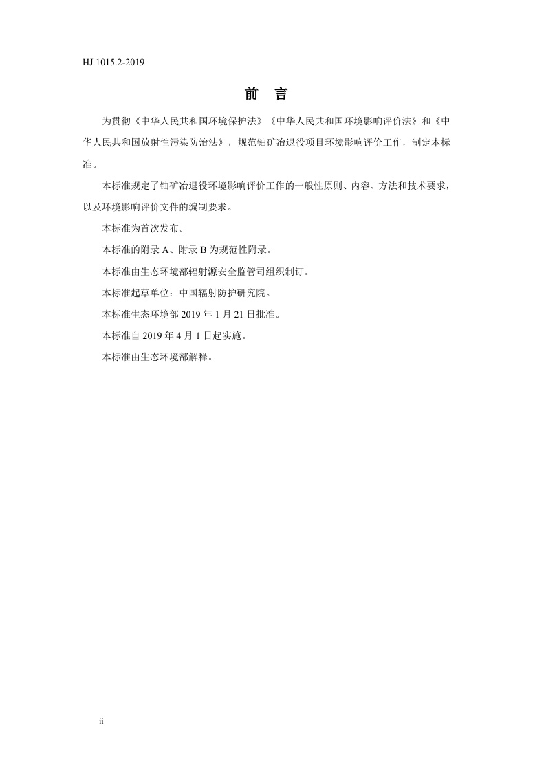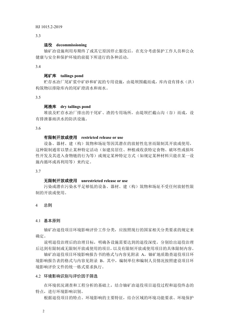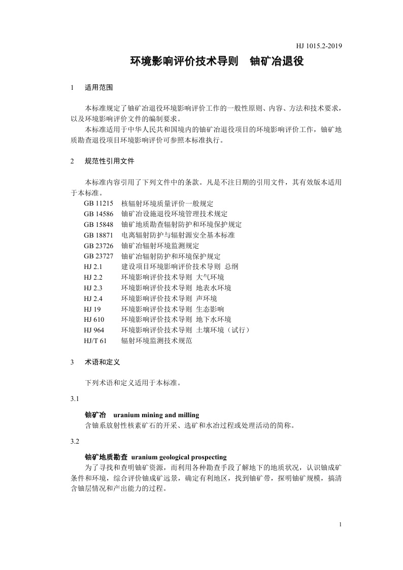 《环境影响评价技术导则 铀矿冶退役》(HJ 1015.2-2019)