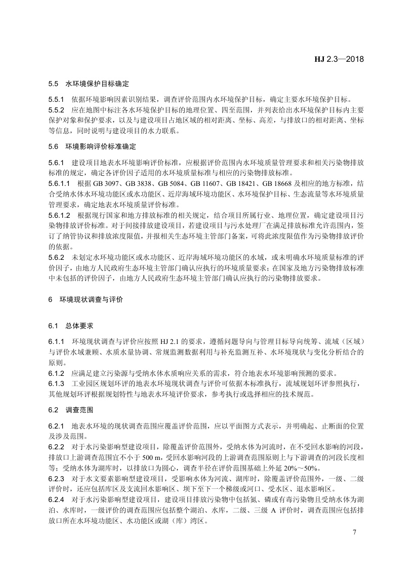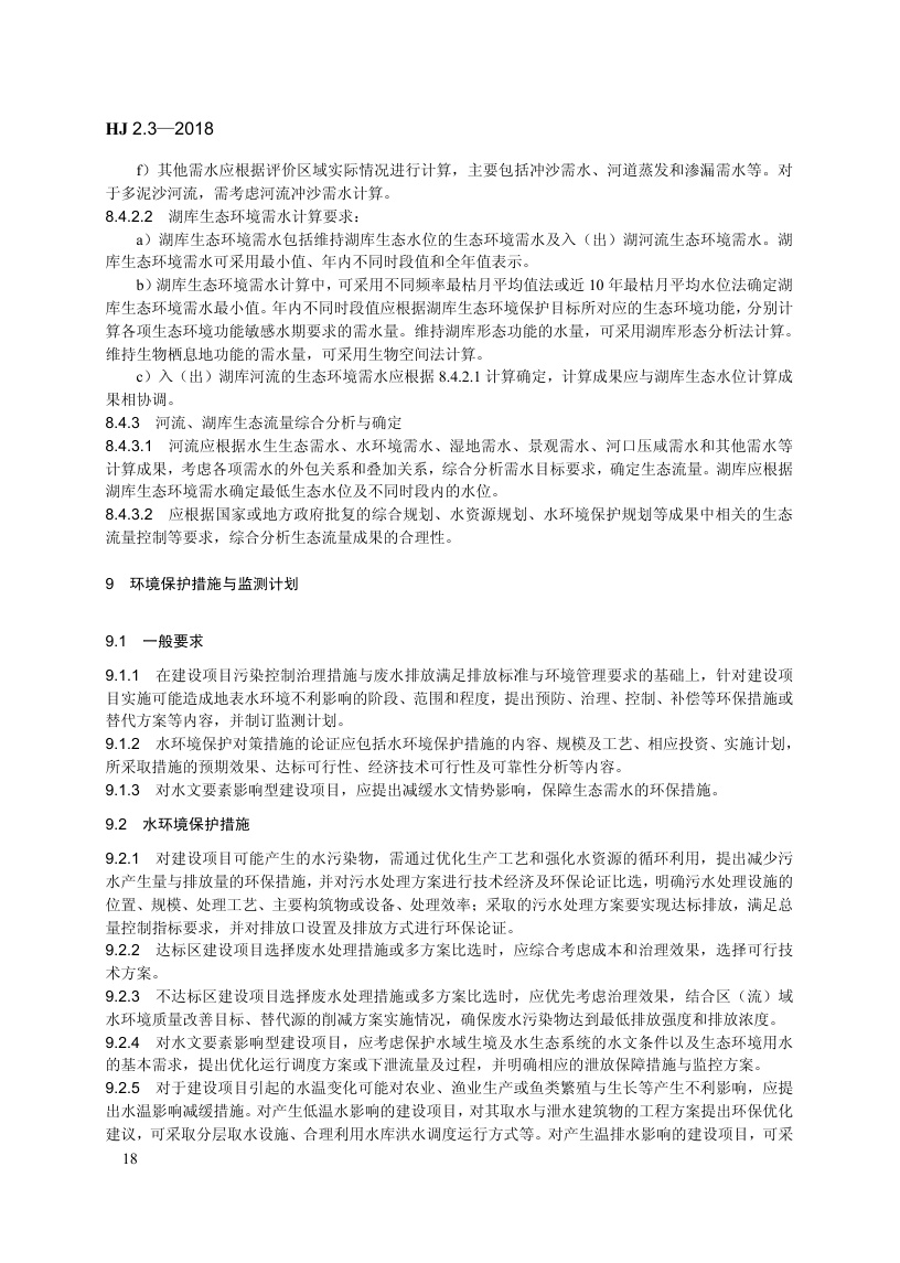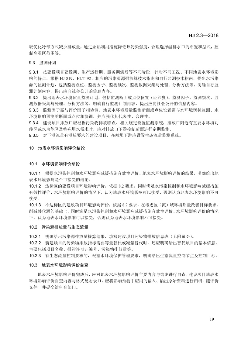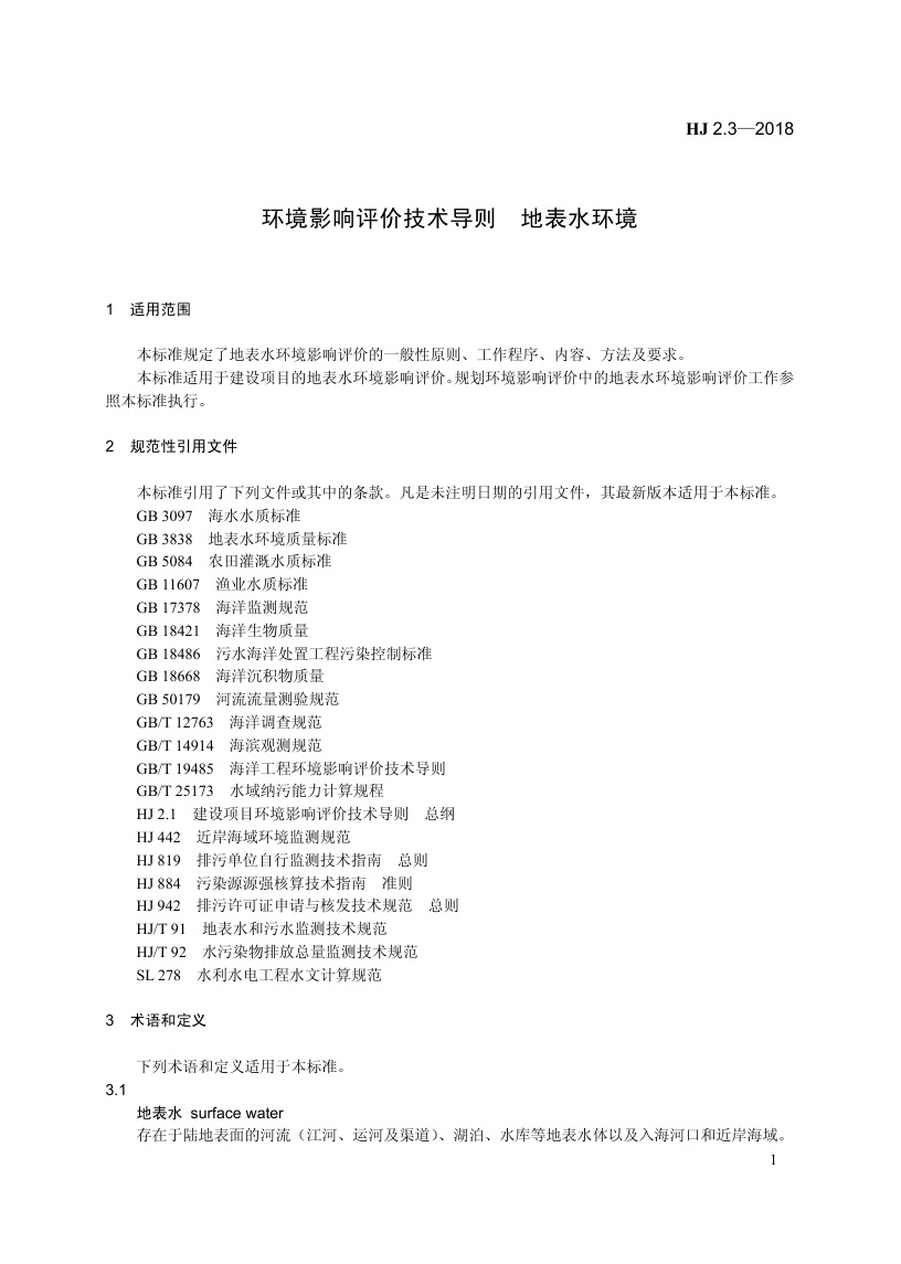 《环境影响评价技术导则 地表水环境》(HJ 2.3—2018)