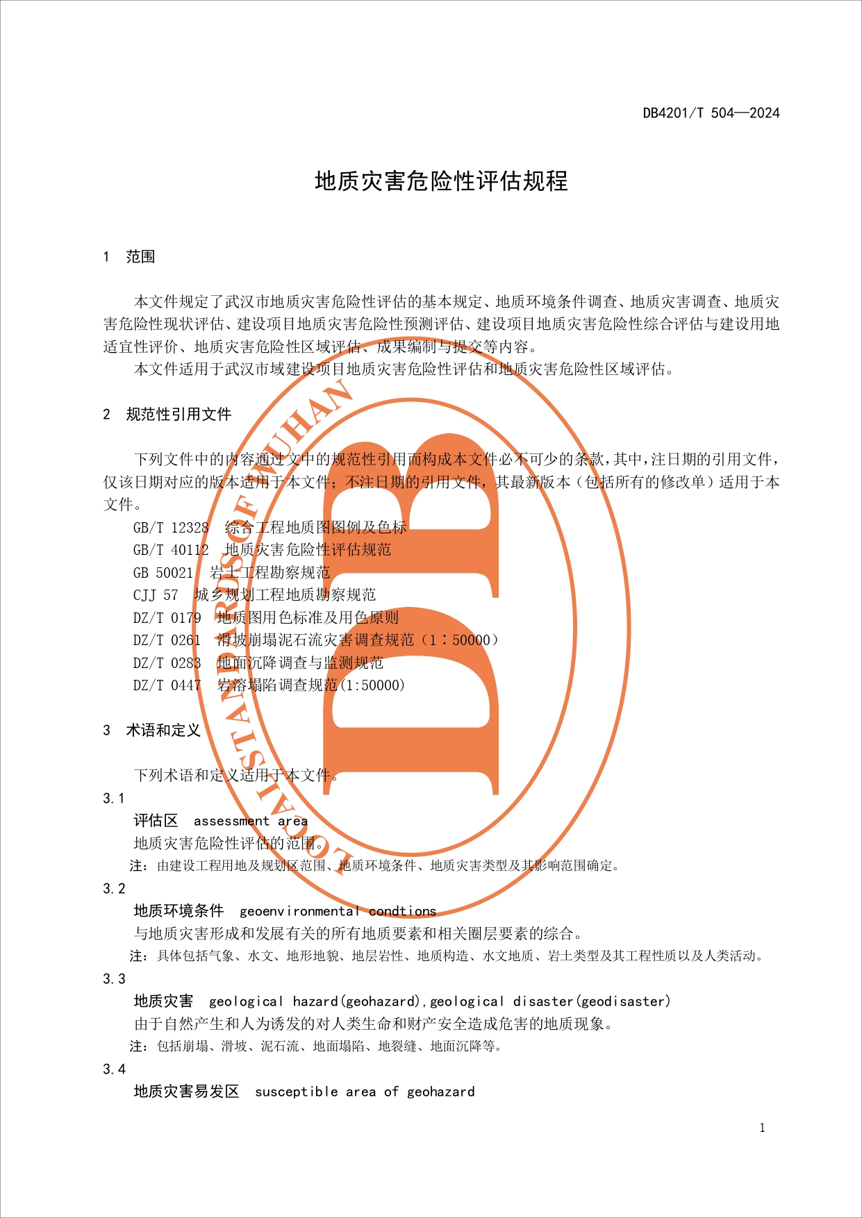 地质灾害危险性评估规程(修订)DB4201/T 504-2024