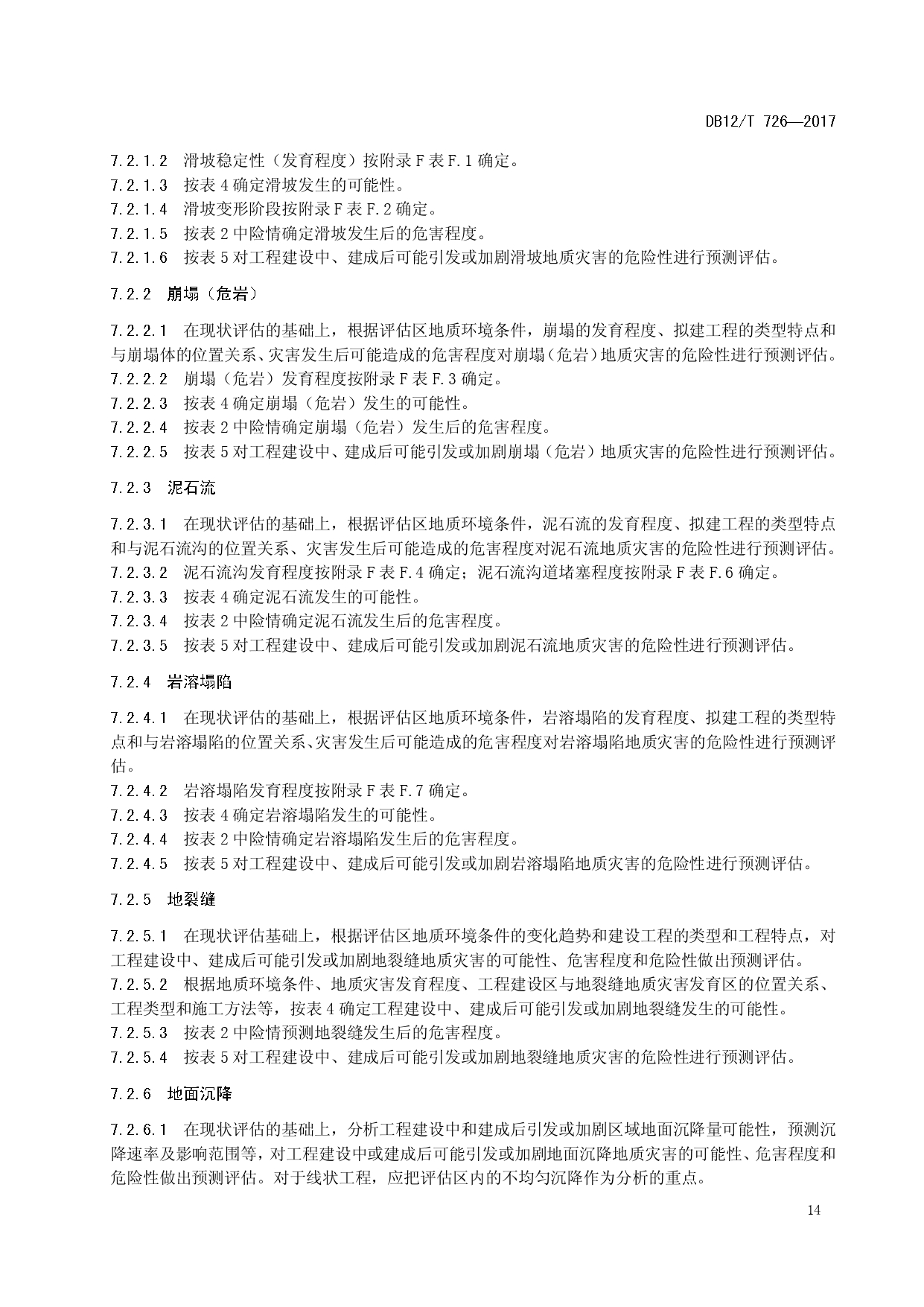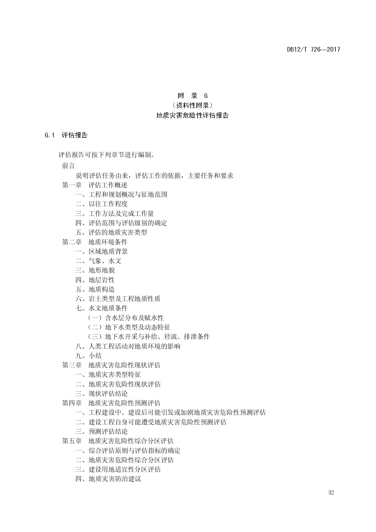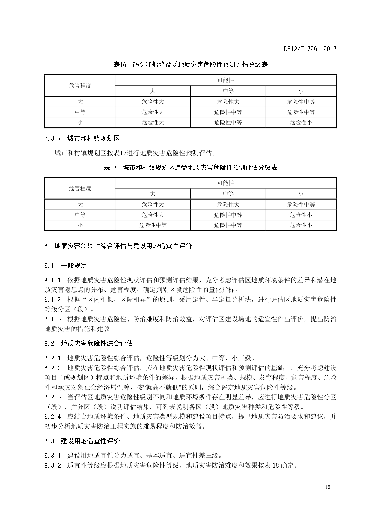 地质灾害危险性评估技术规程DB12/T 726-2017