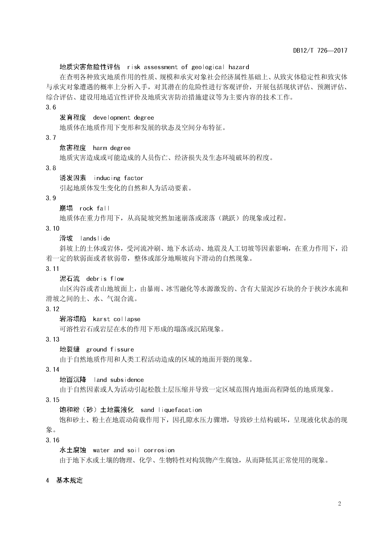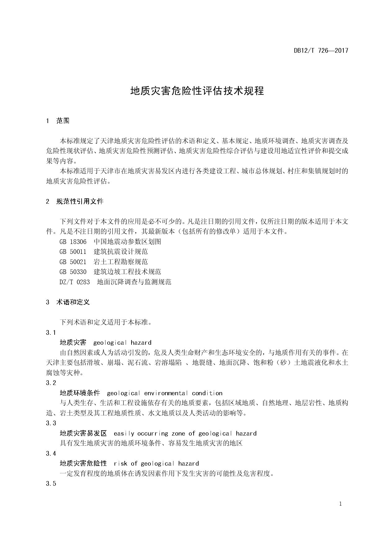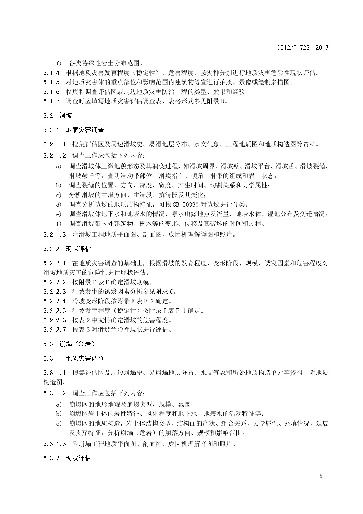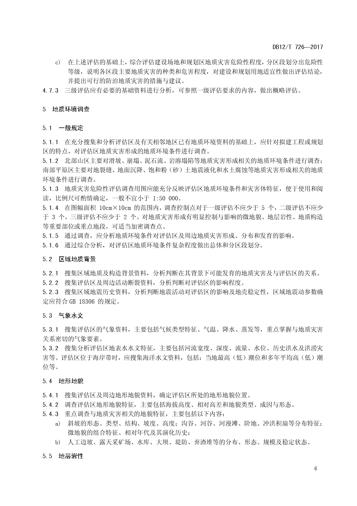 地质灾害危险性评估技术规程DB12/T 726-2017