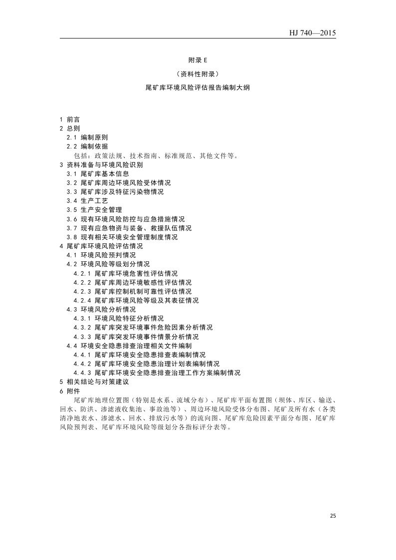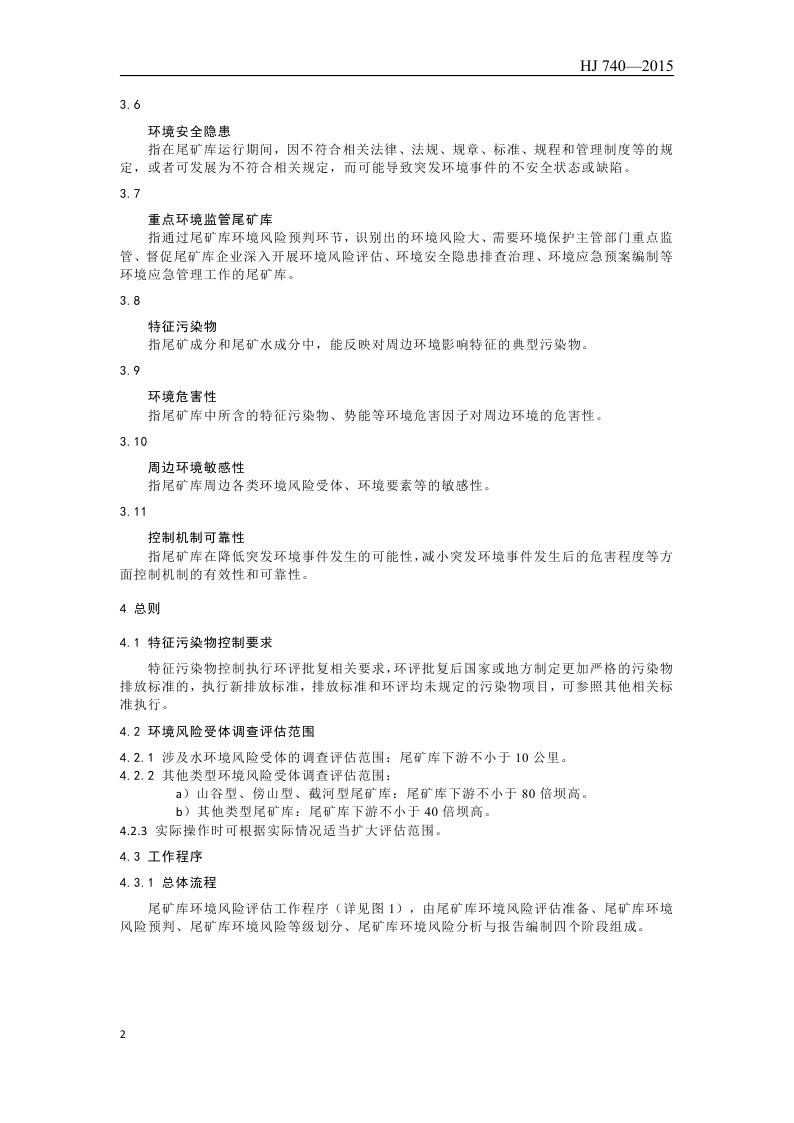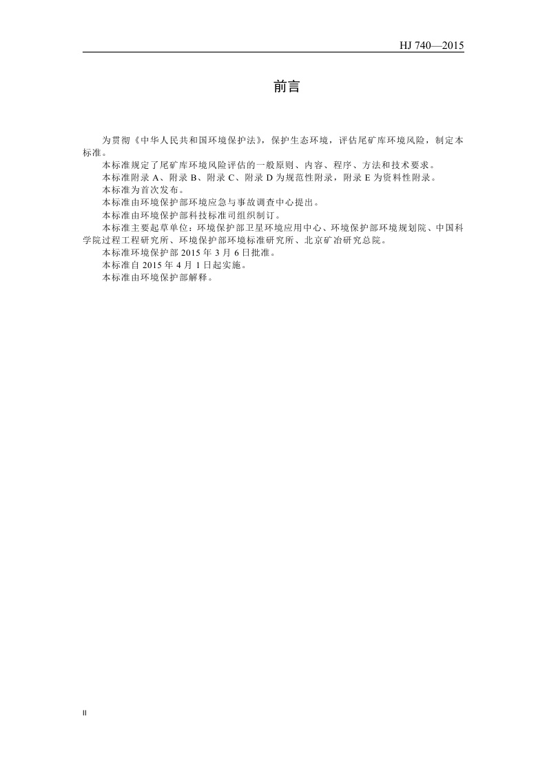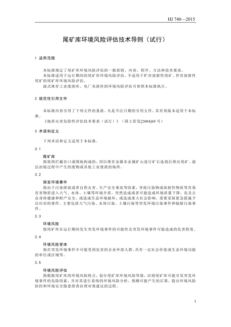 《尾矿库环境风险评估技术导则(试行)》(HJ 740—2015)