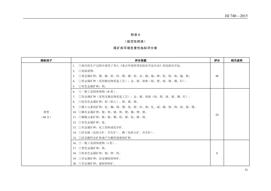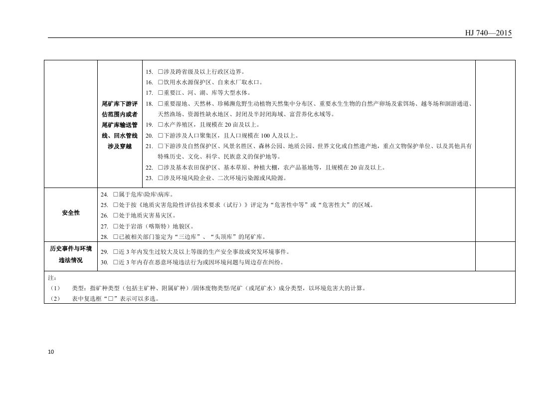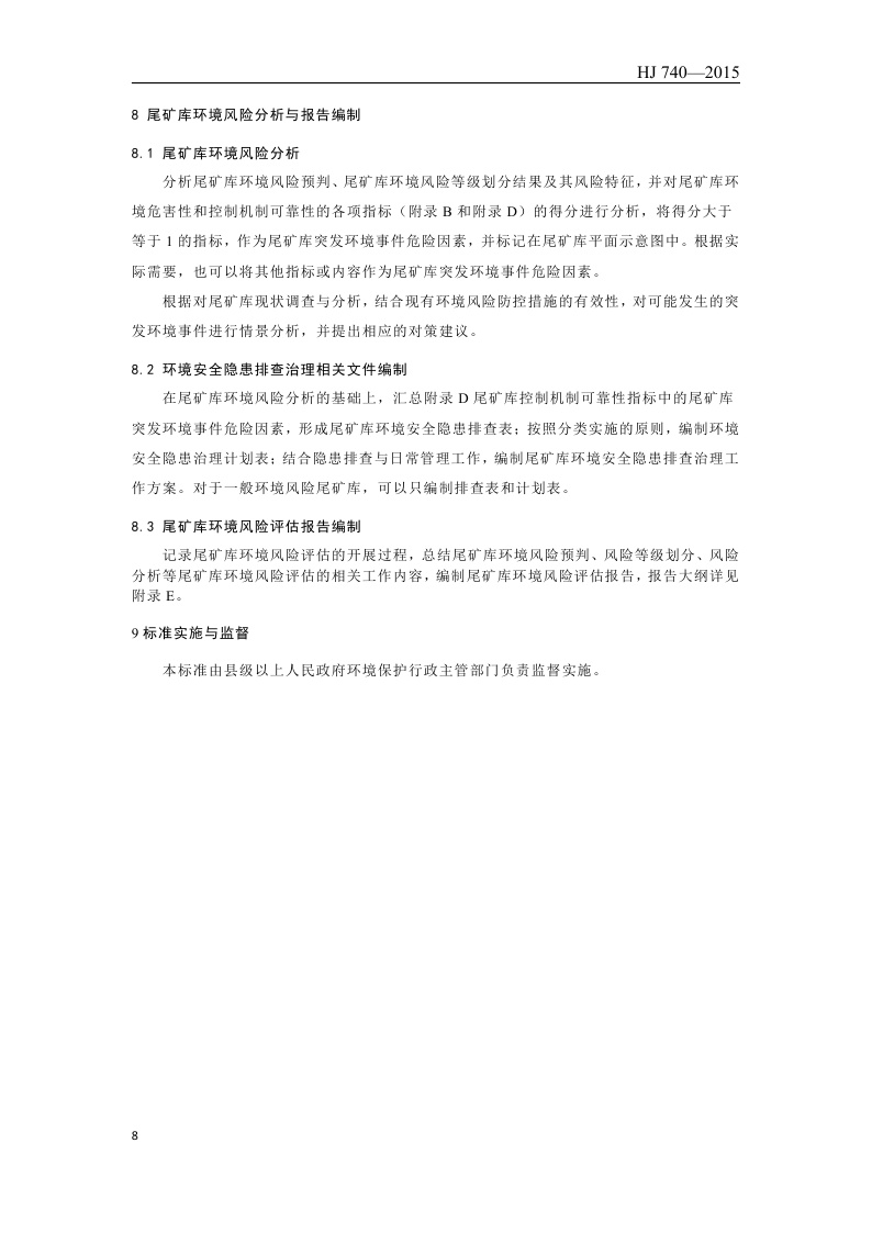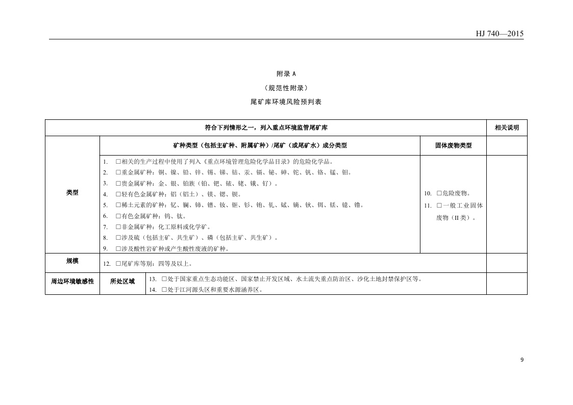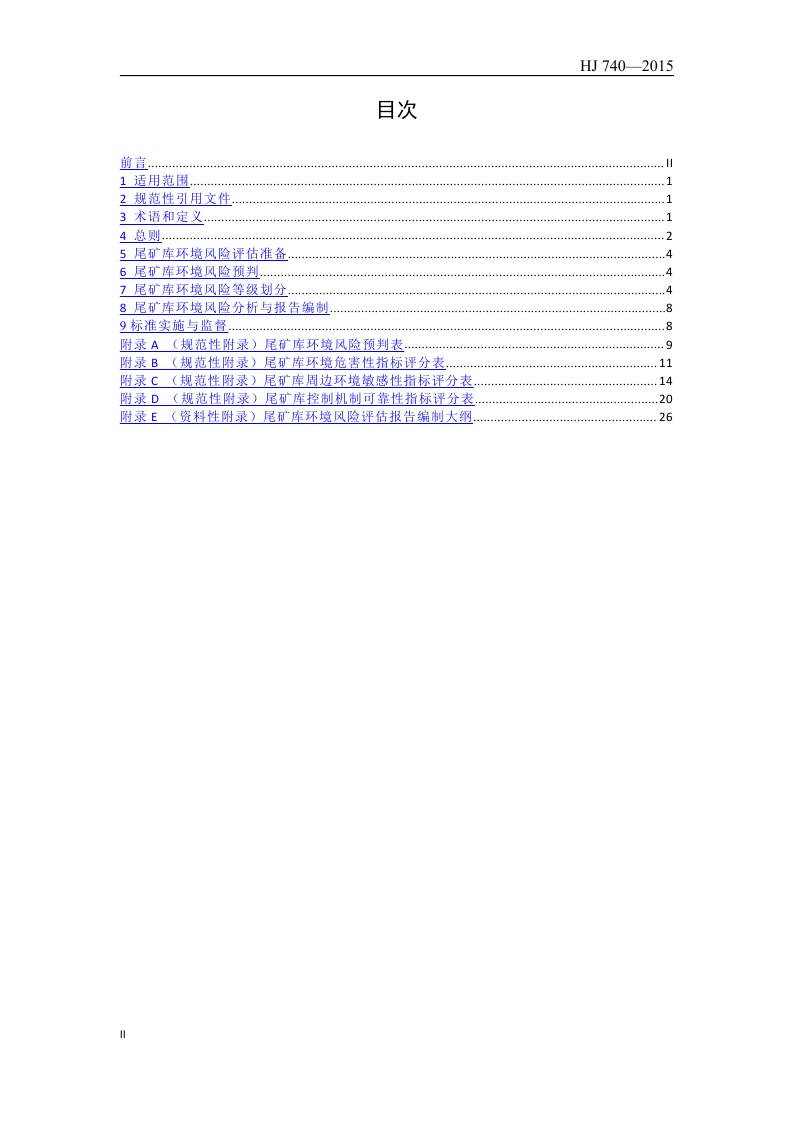 《尾矿库环境风险评估技术导则(试行)》(HJ 740—2015)