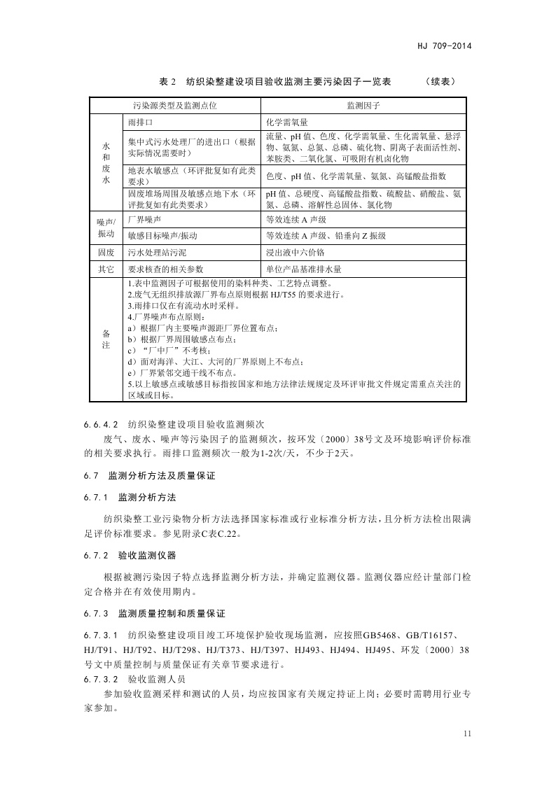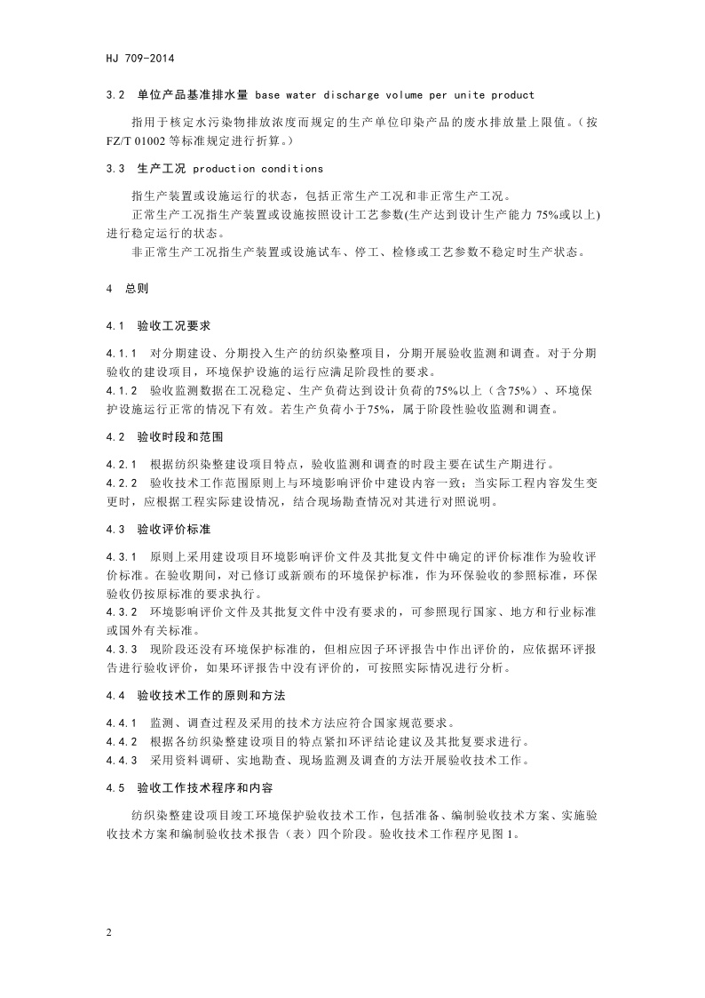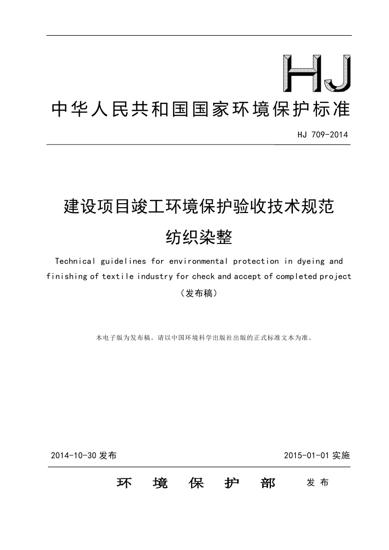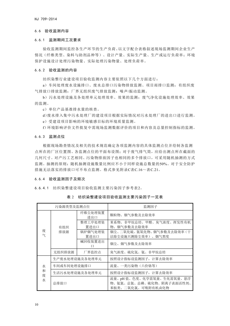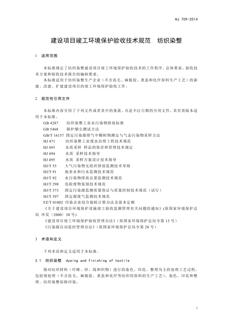 《建设项目竣工环境保护验收技术规范 纺织染整》(HJ 709-2014)