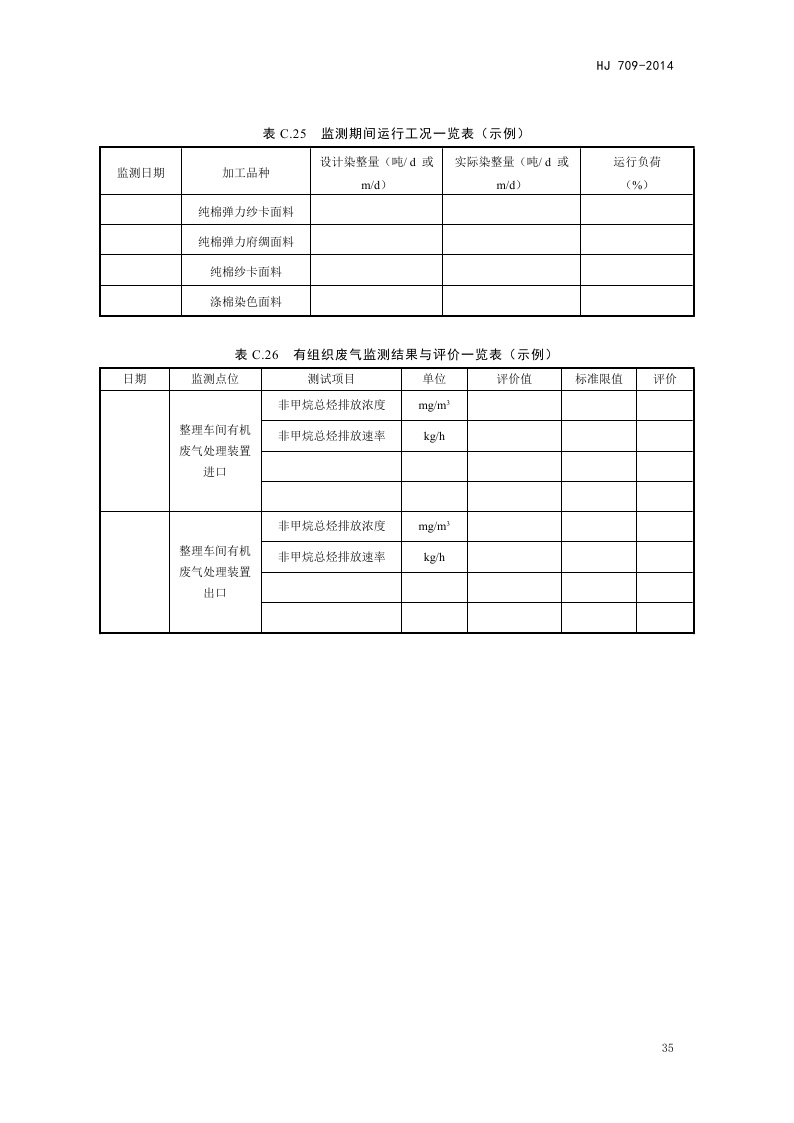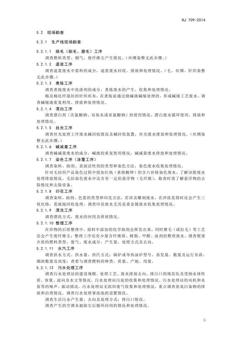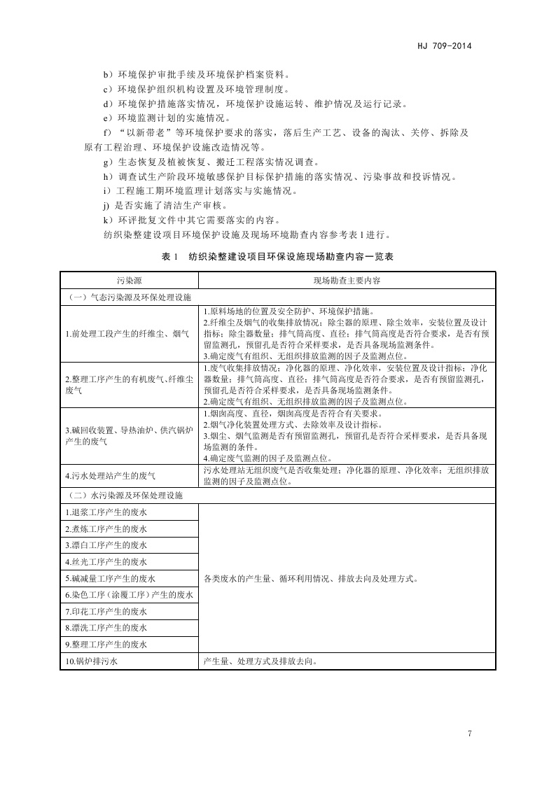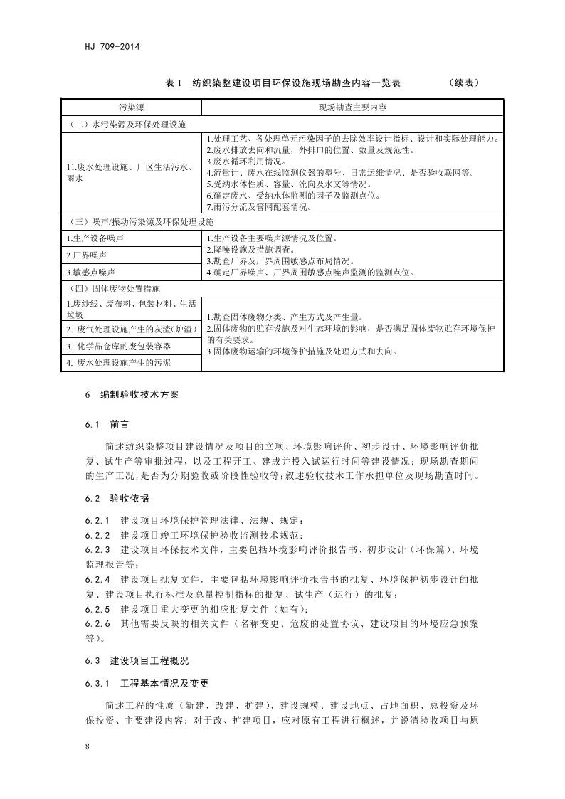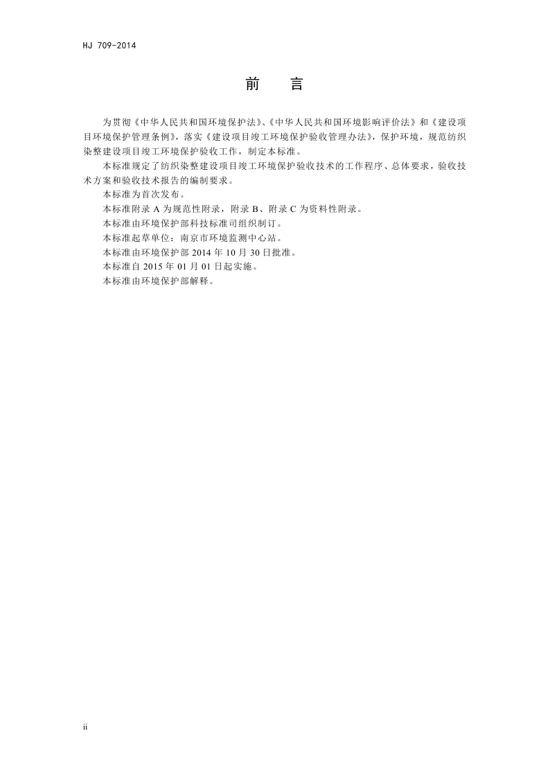 《建设项目竣工环境保护验收技术规范 纺织染整》(HJ 709-2014)