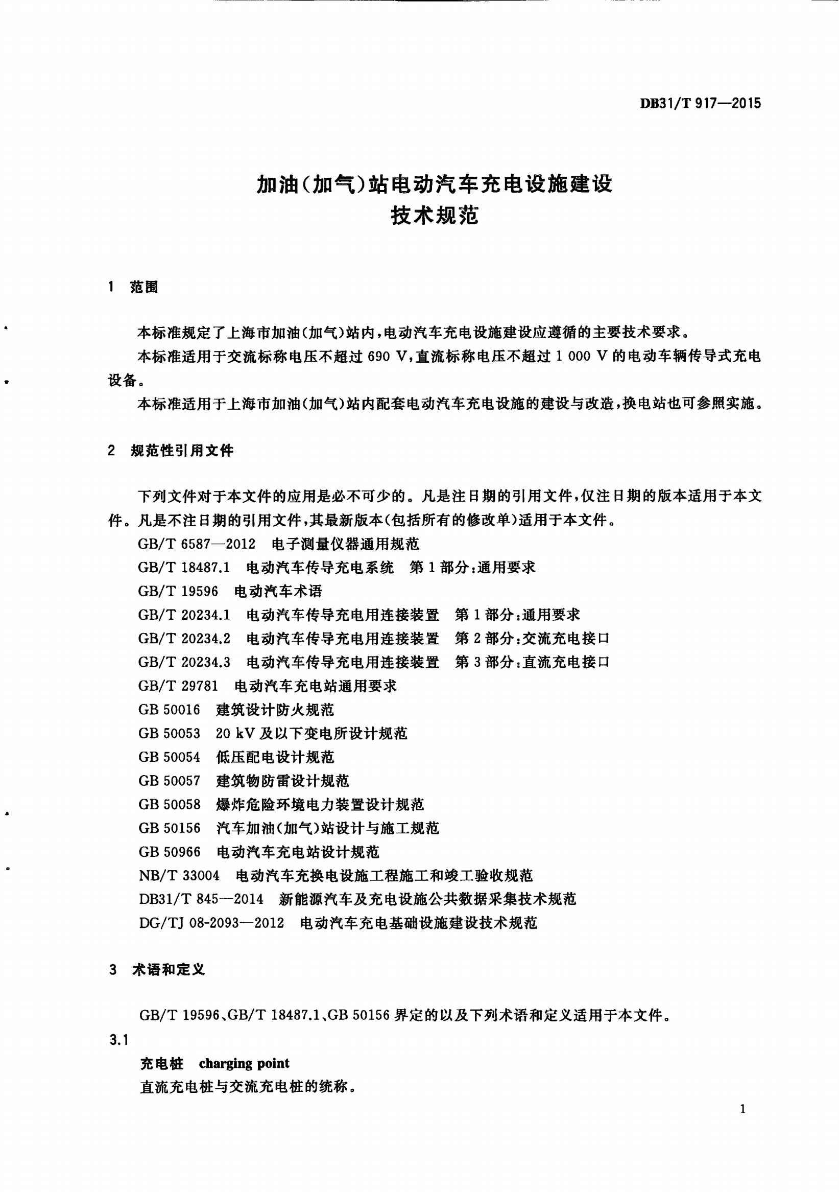 加油(加气)站电动汽车充电设施建设技术规范