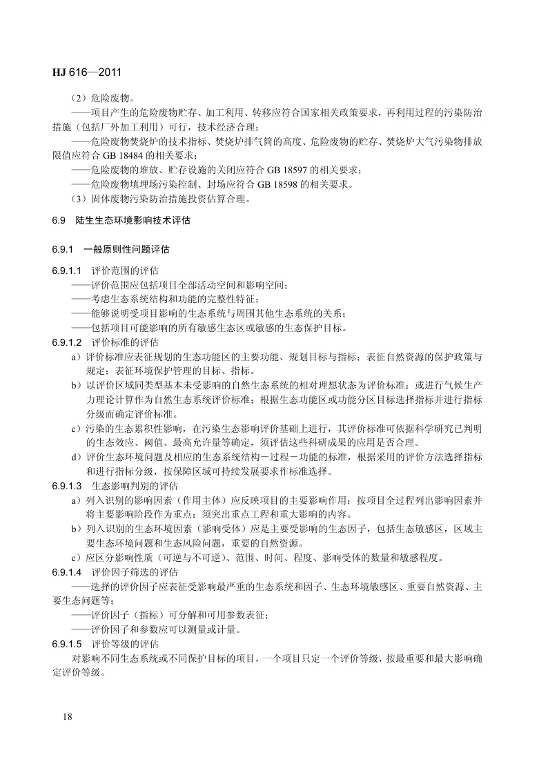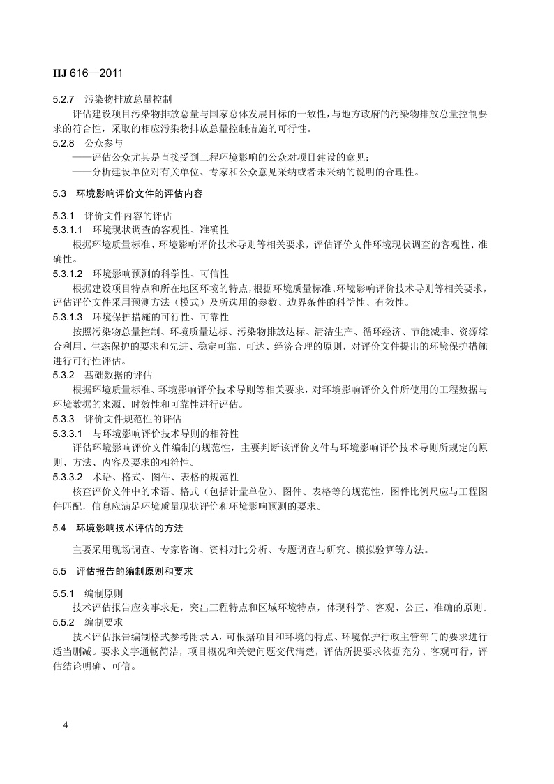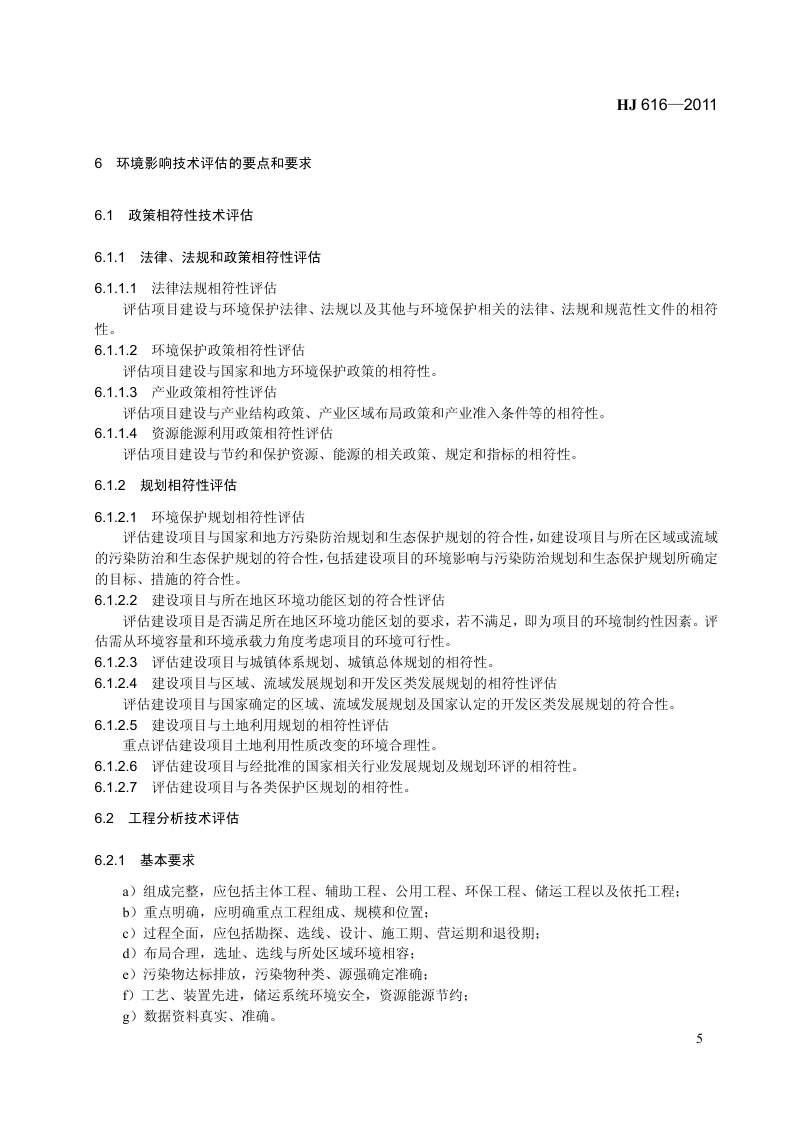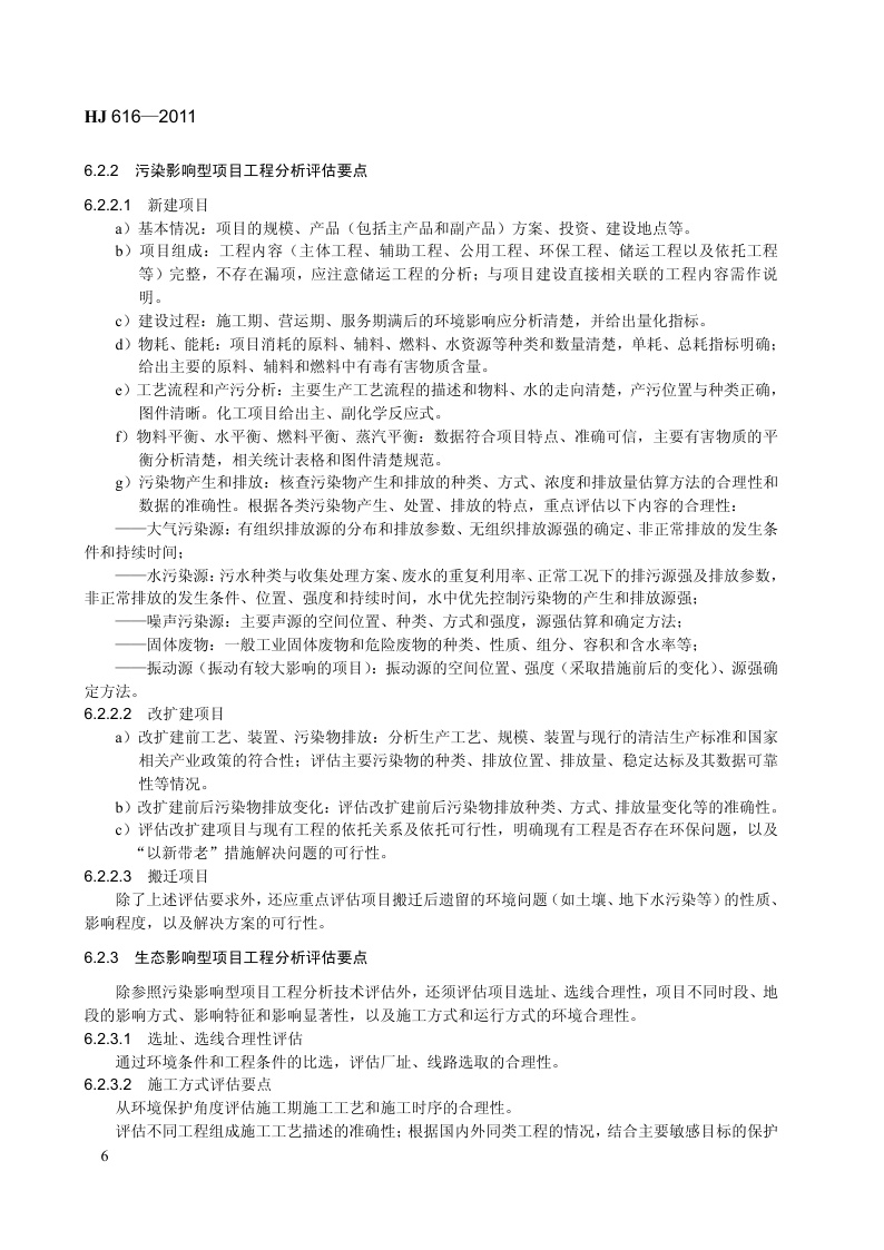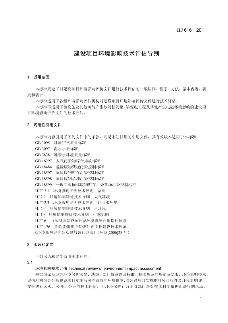 《建设项目环境影响技术评估导则》(HJ 616-2011)