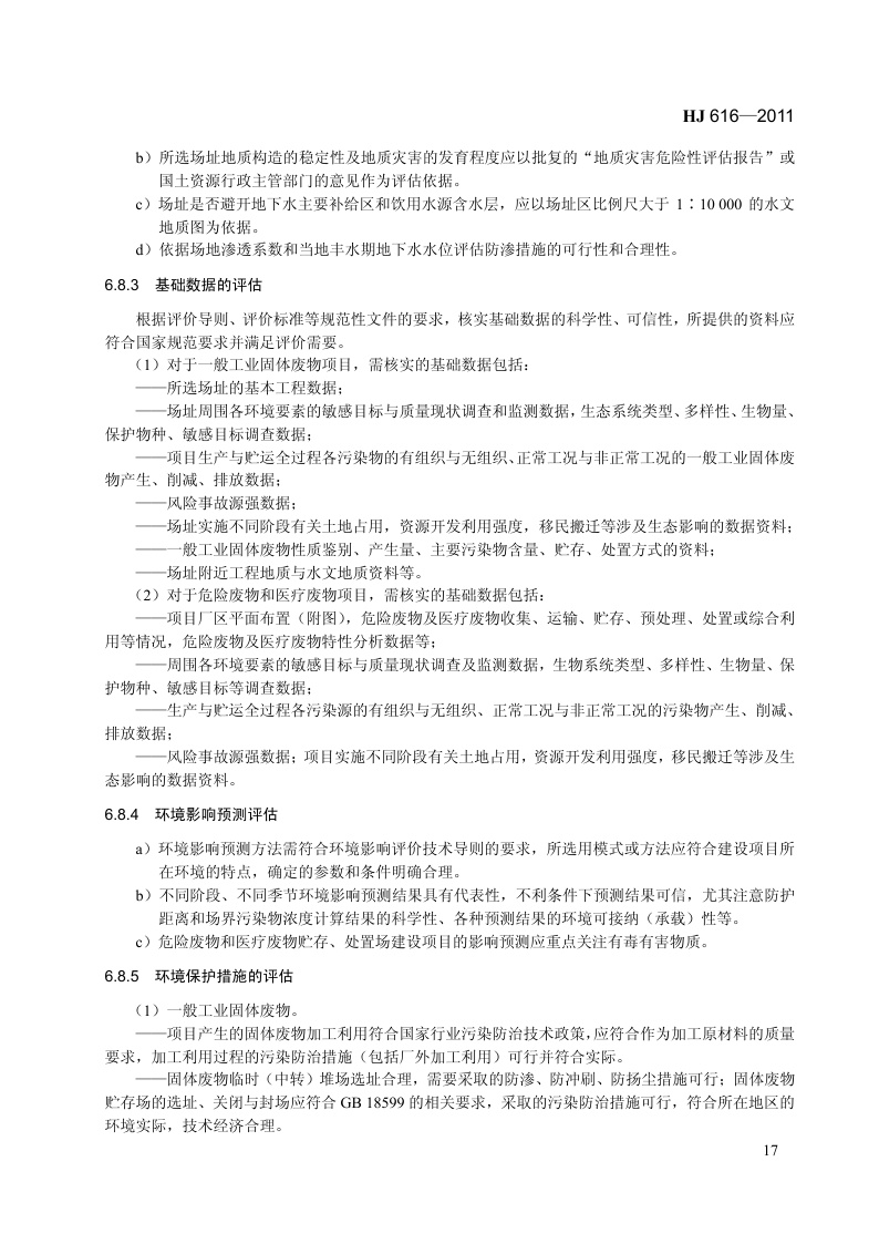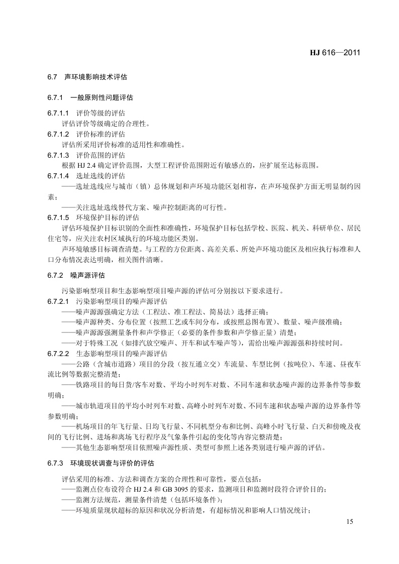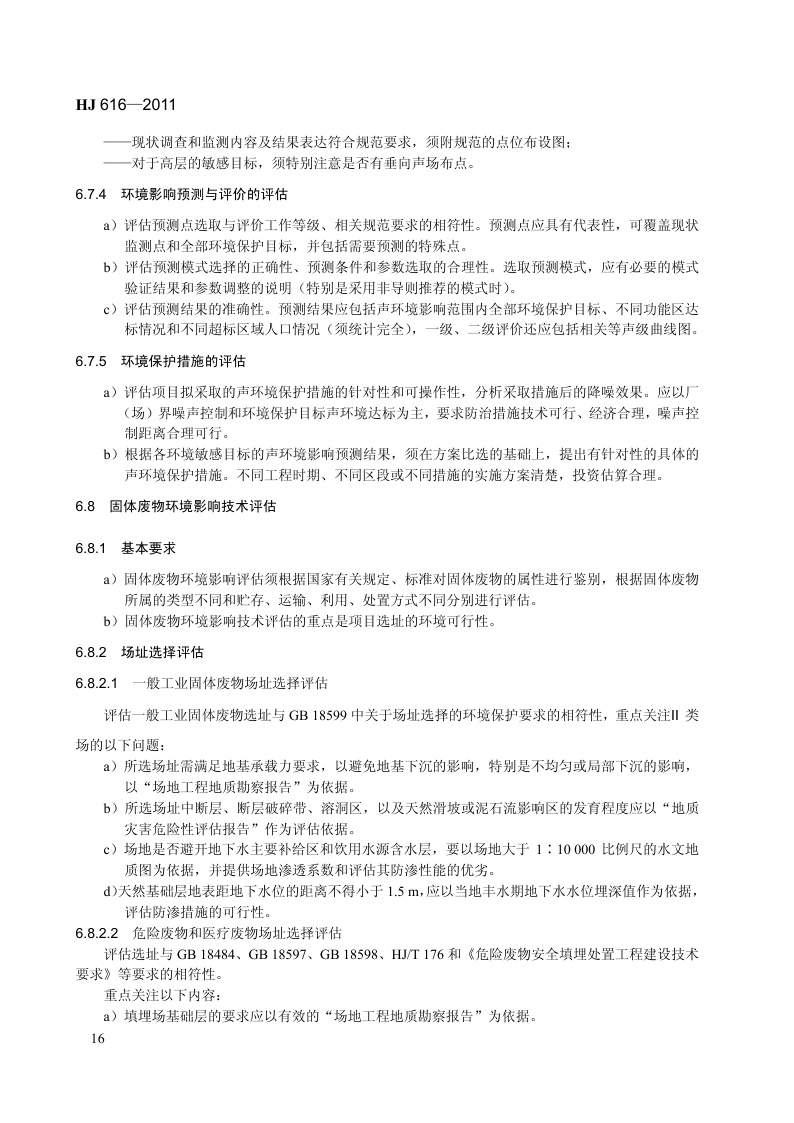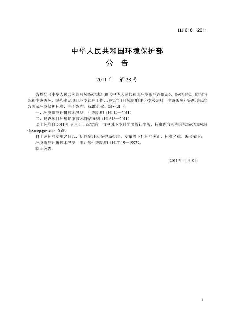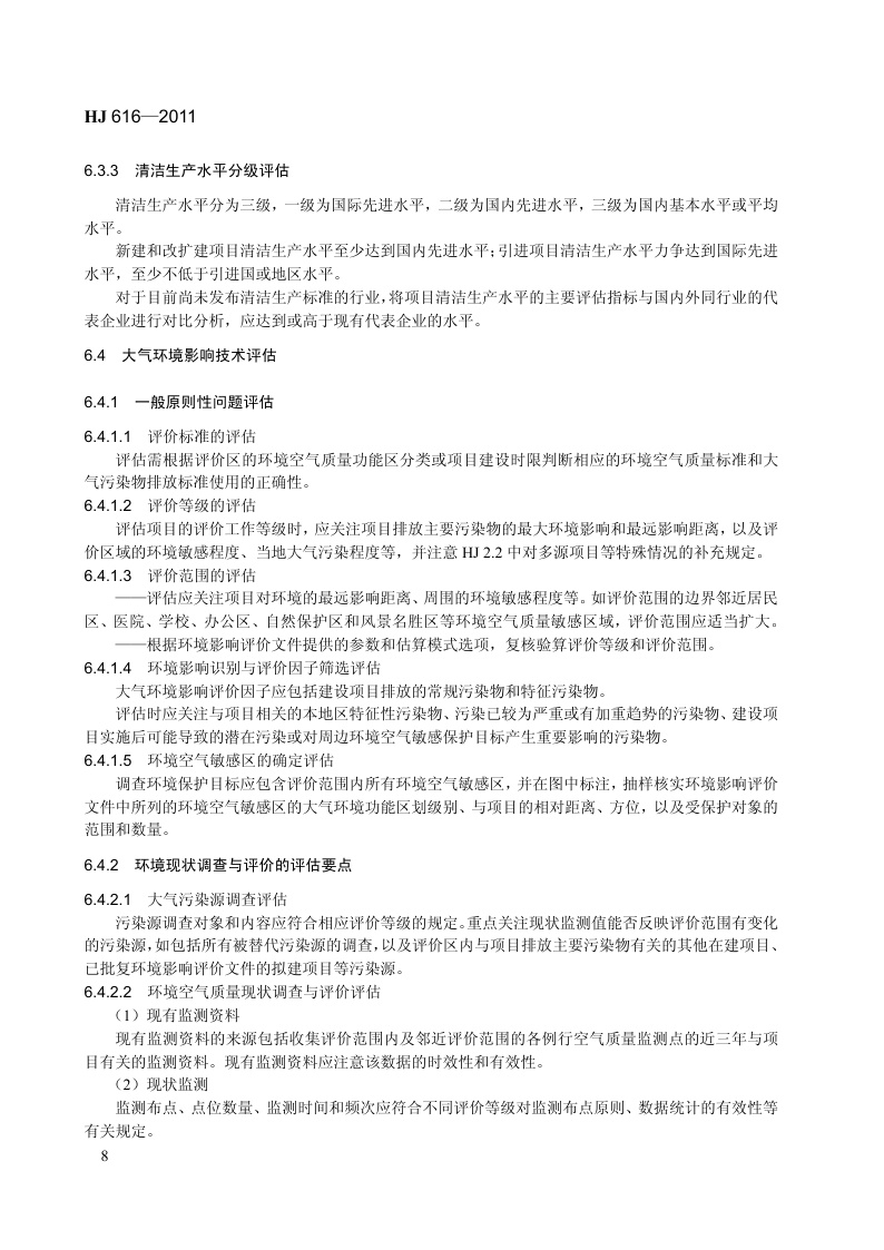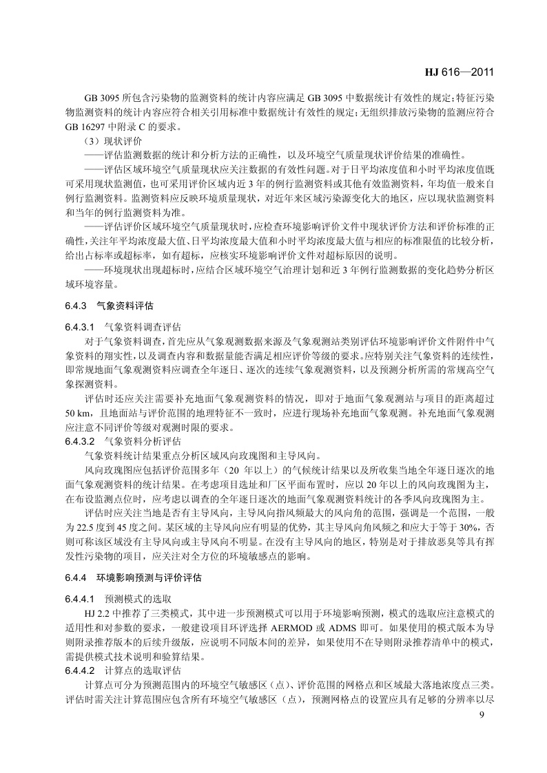《建设项目环境影响技术评估导则》(HJ 616-2011)