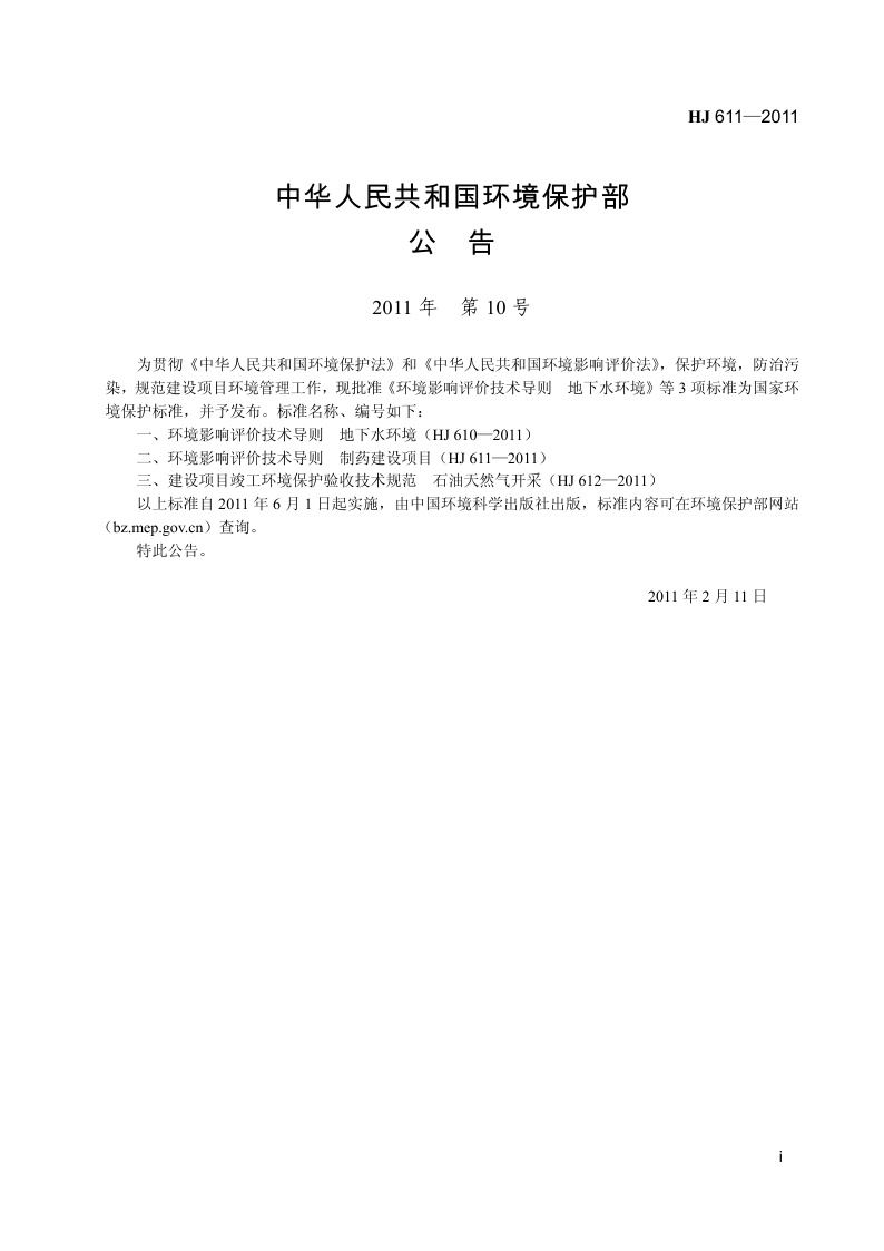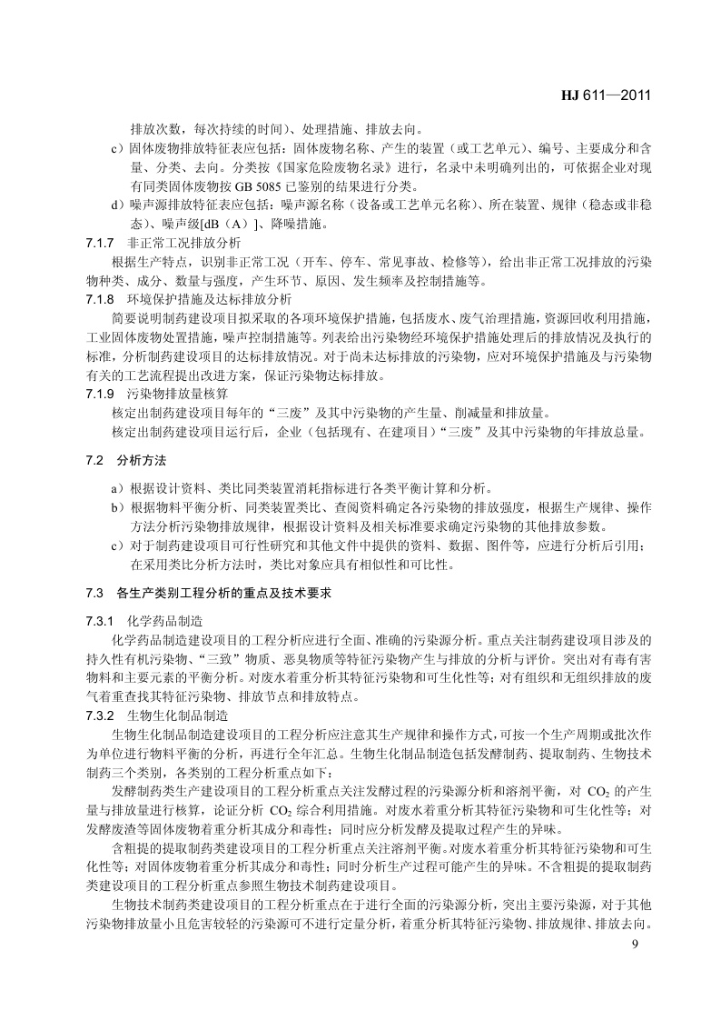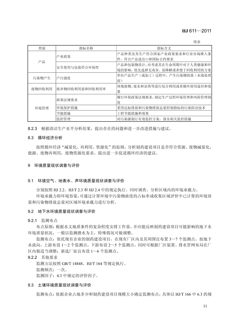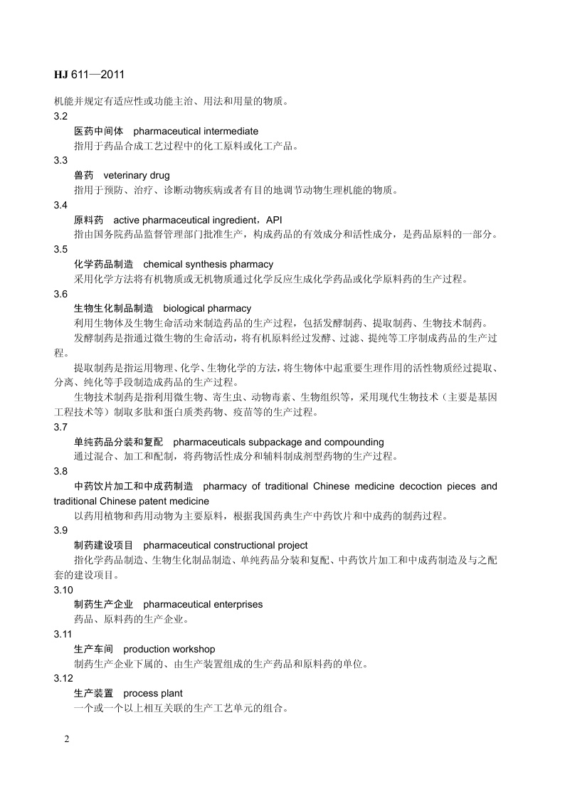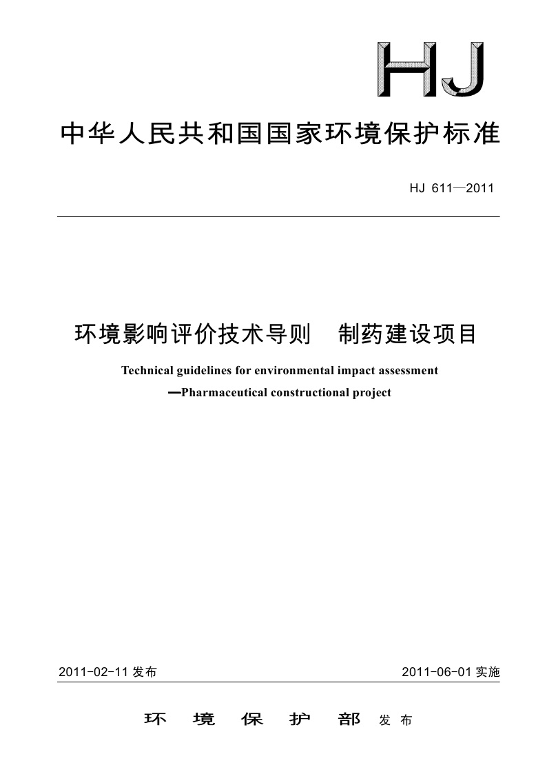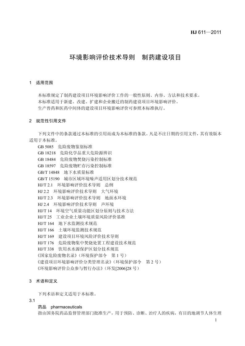 《环境影响评价技术导则 制药建设项目》(HJ 611-2011)