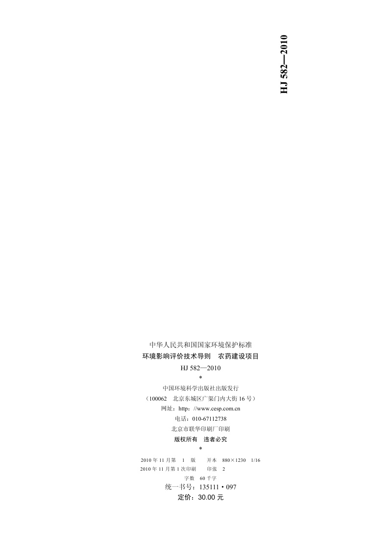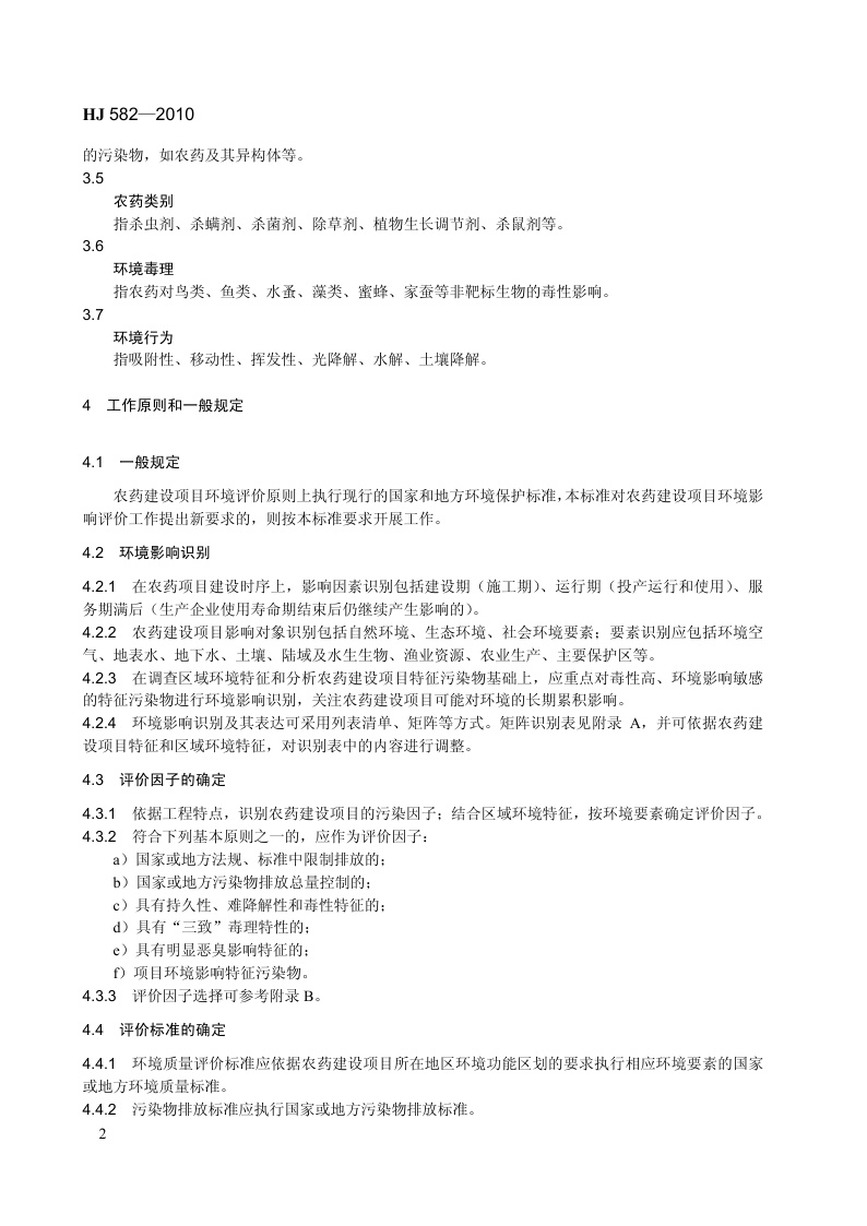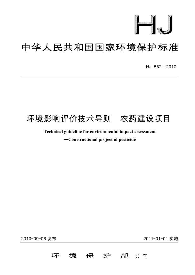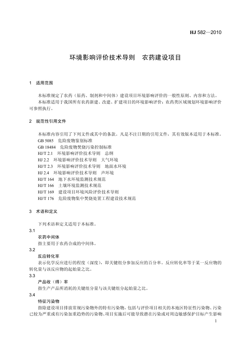《环境影响评价技术导则 农药建设项目》(HJ 582-2010)