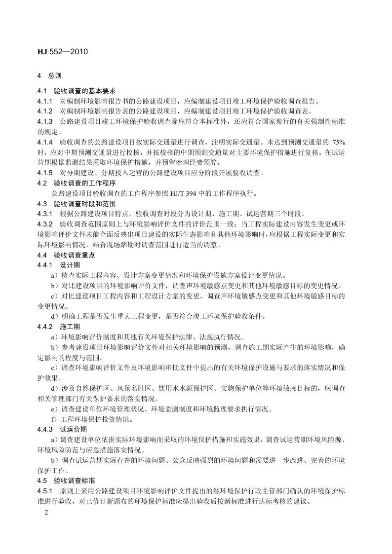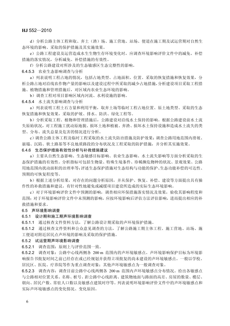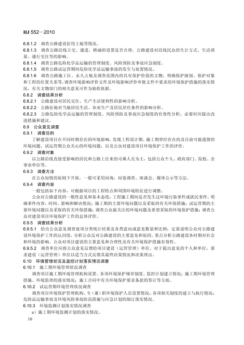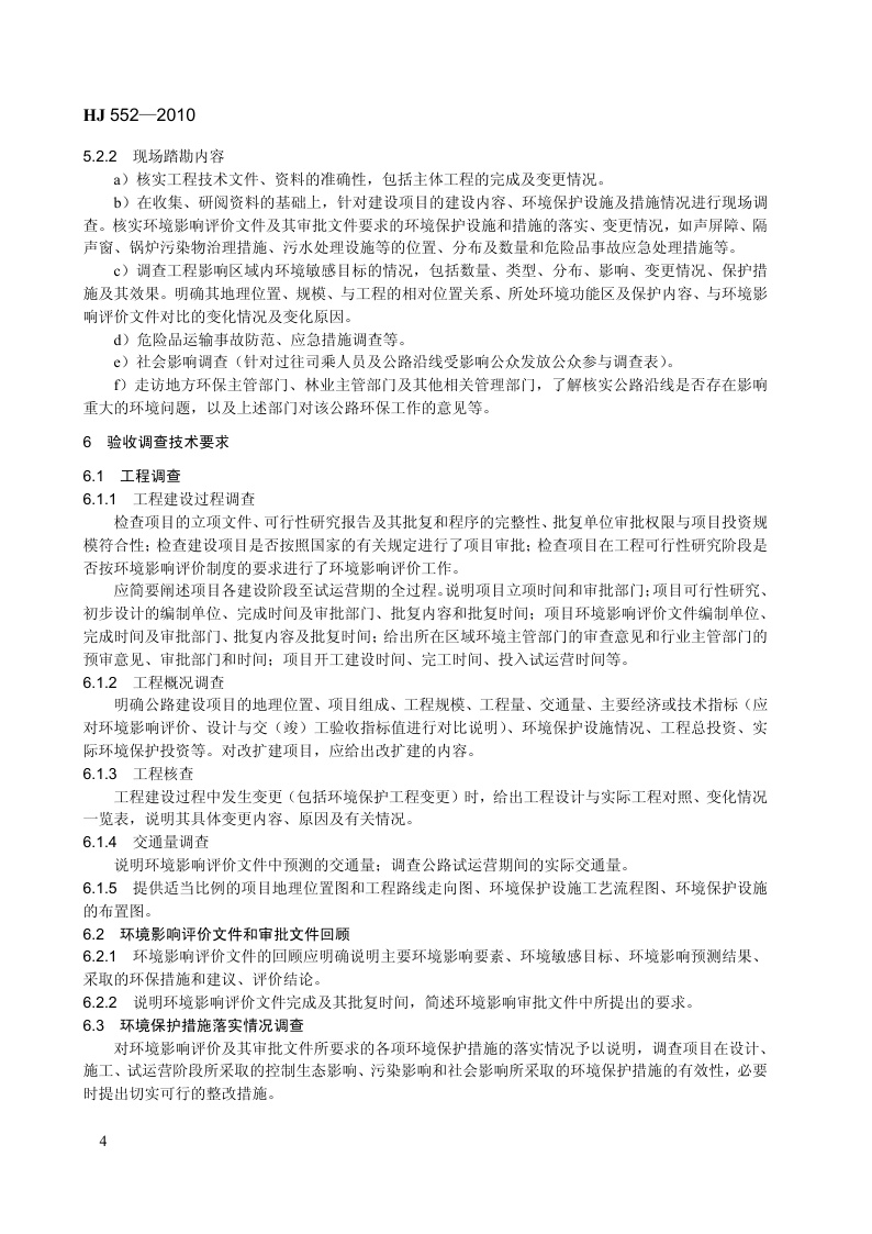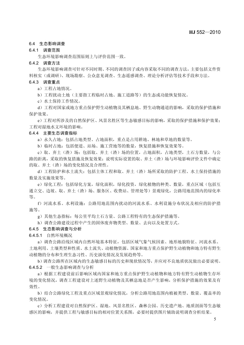 《建设项目竣工环境保护验收技术规范 公路》(HJ 552-2010)