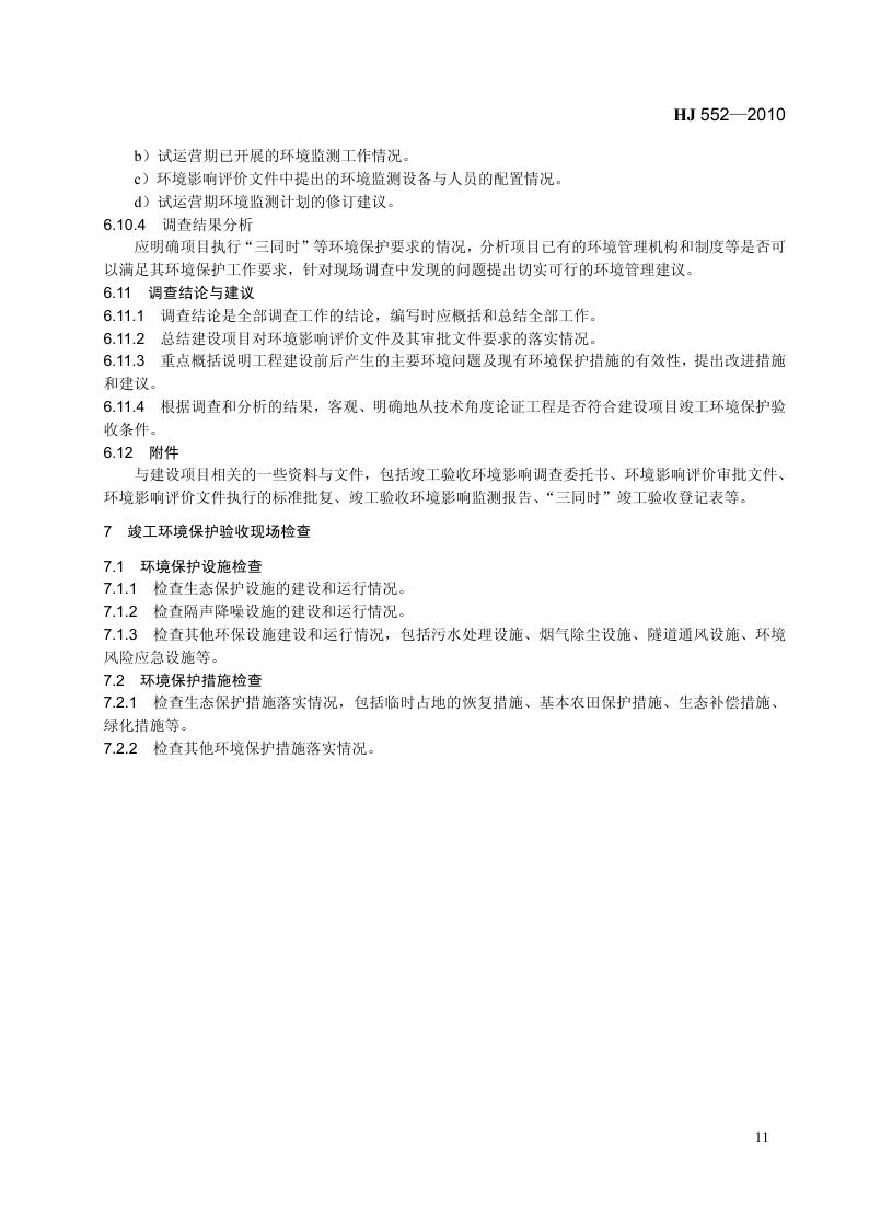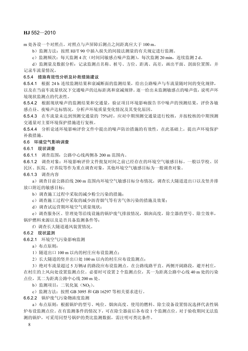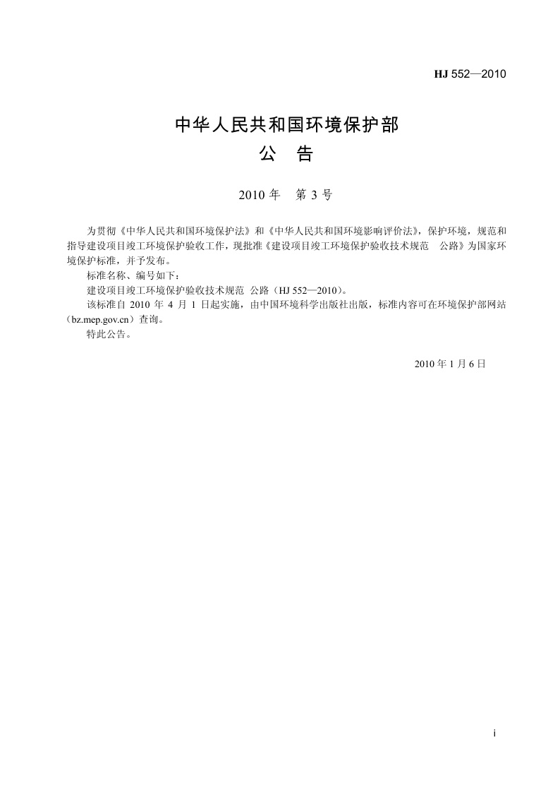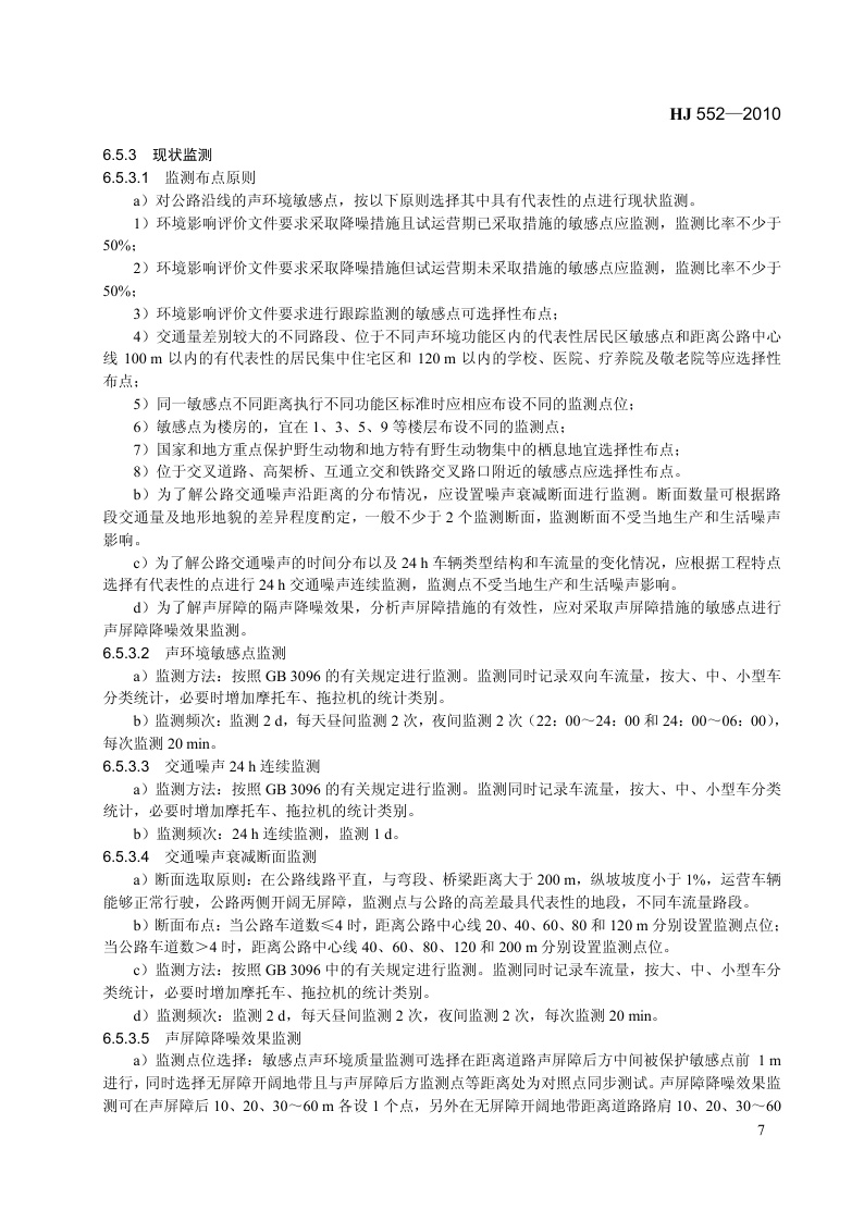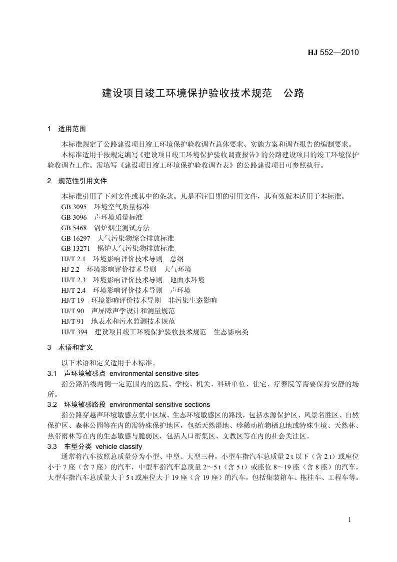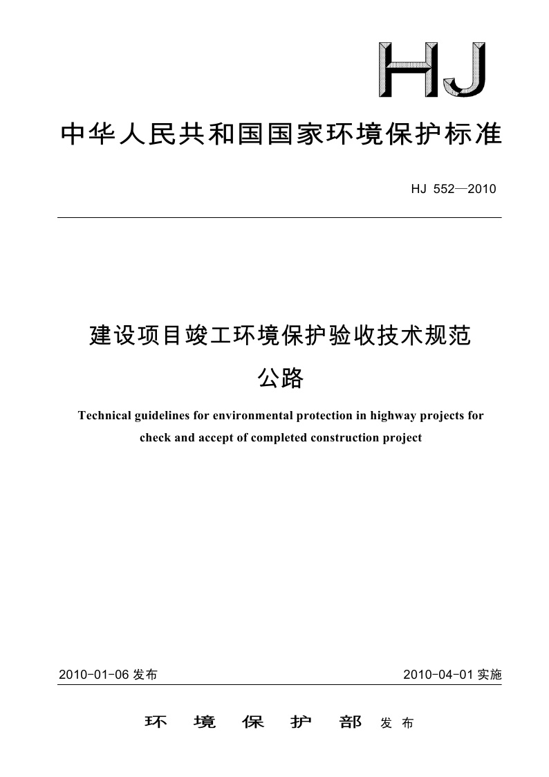 《建设项目竣工环境保护验收技术规范 公路》(HJ 552-2010)