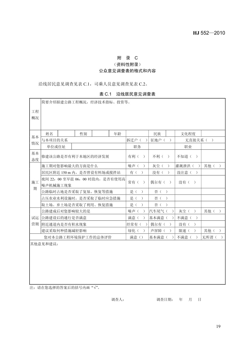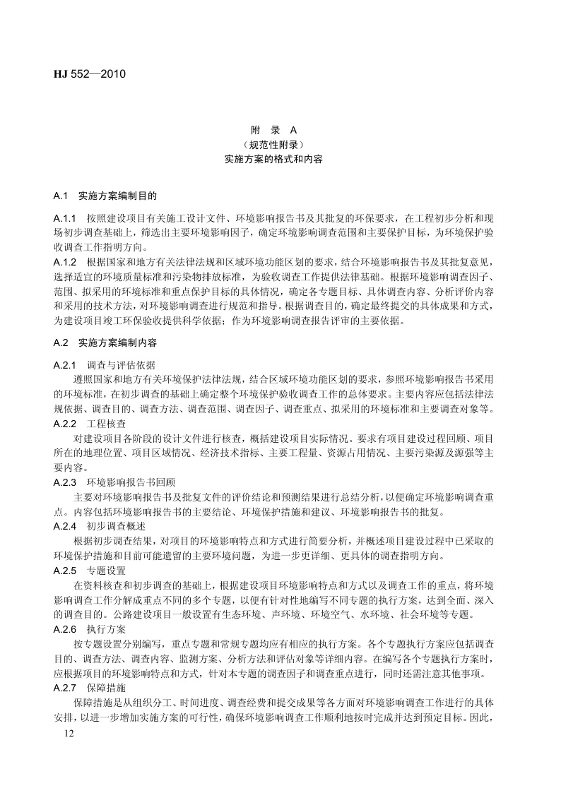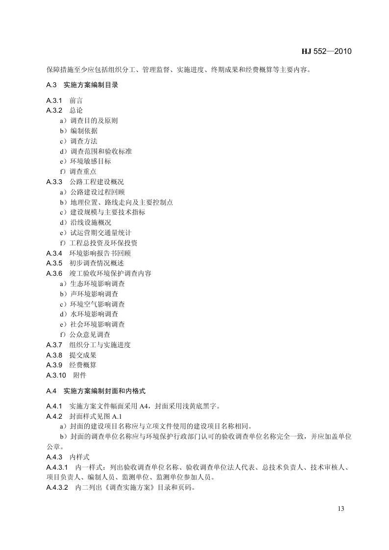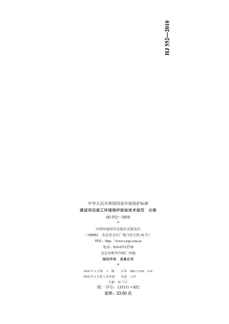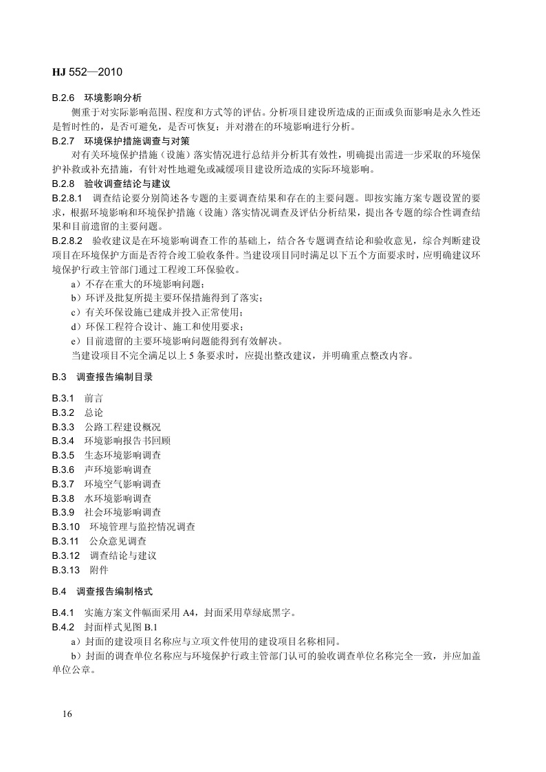 《建设项目竣工环境保护验收技术规范 公路》(HJ 552-2010)