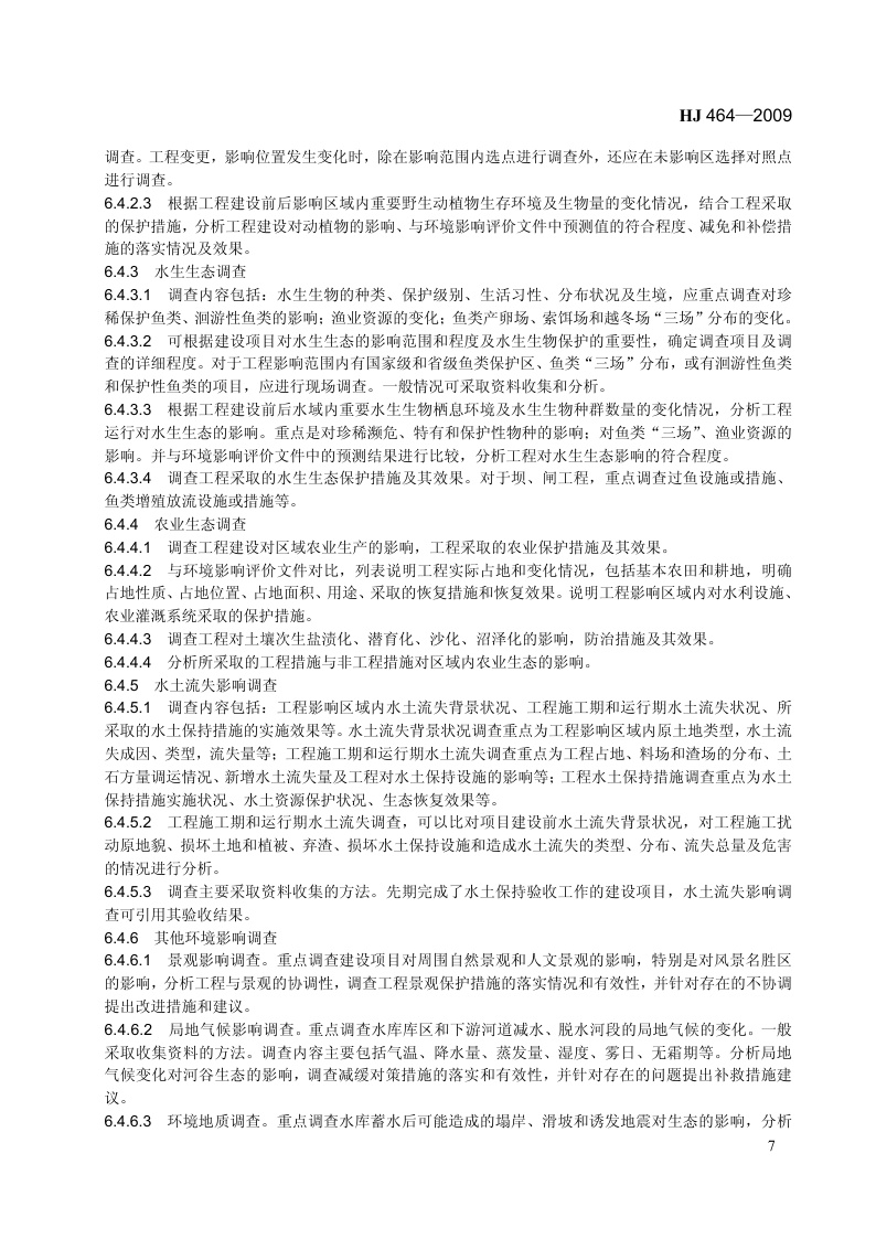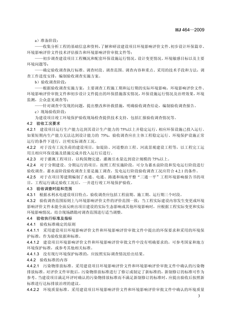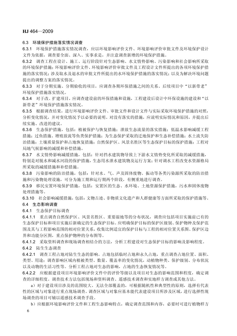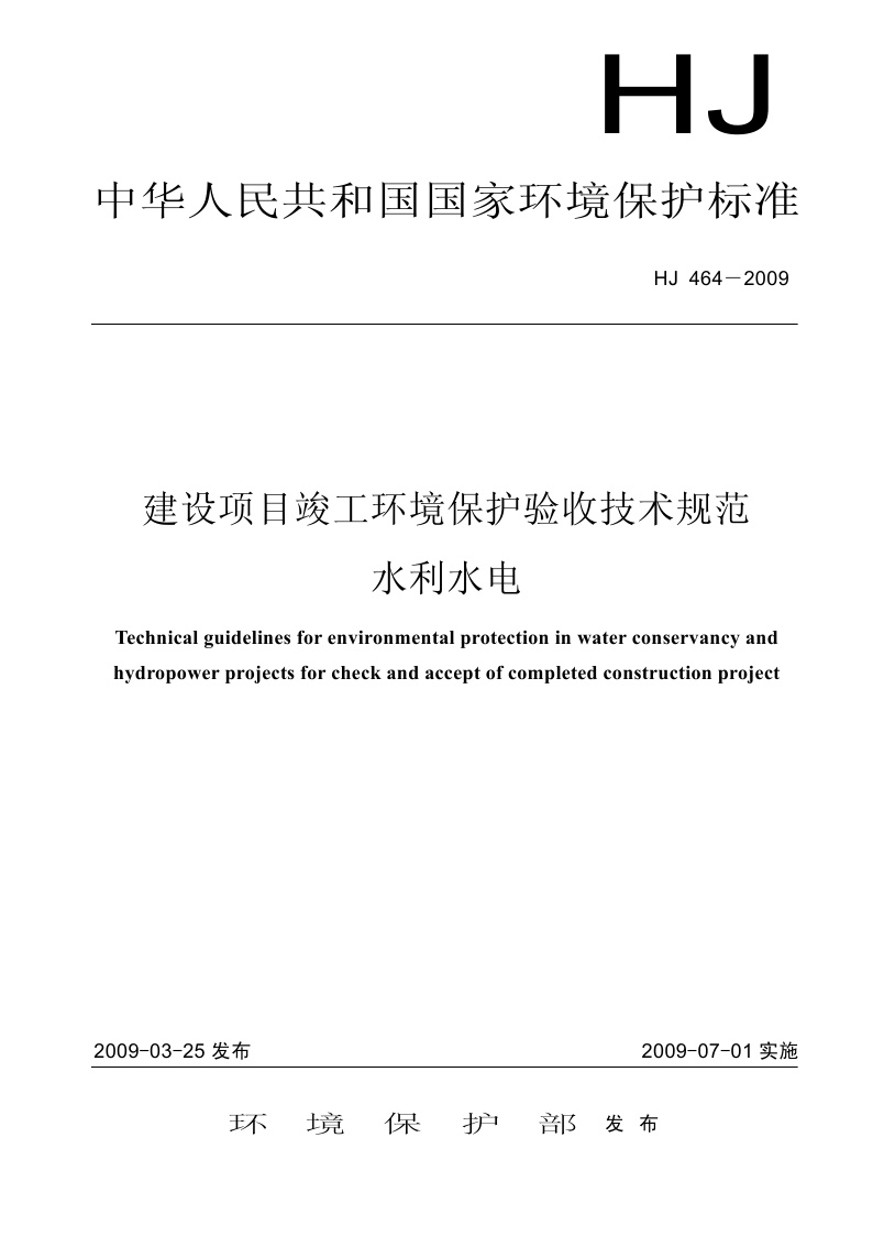 《建设项目竣工环境保护验收技术规范 水利水电》(HJ 464-2009)