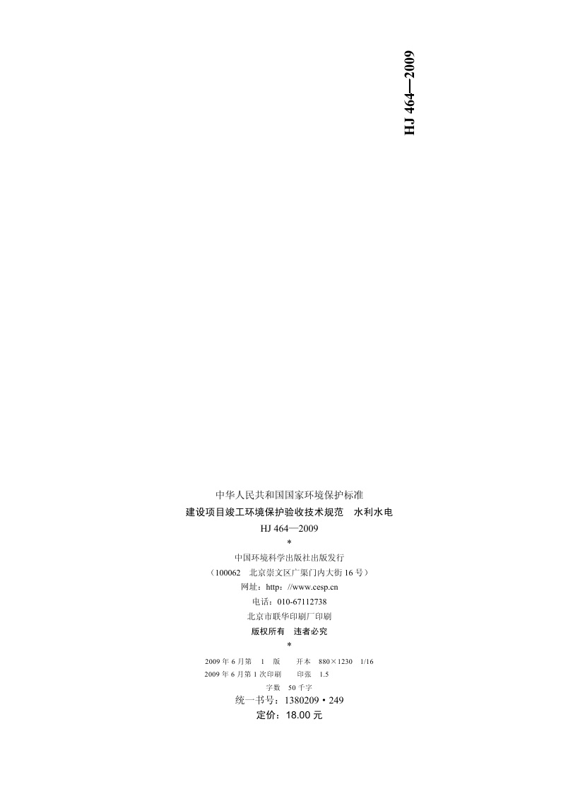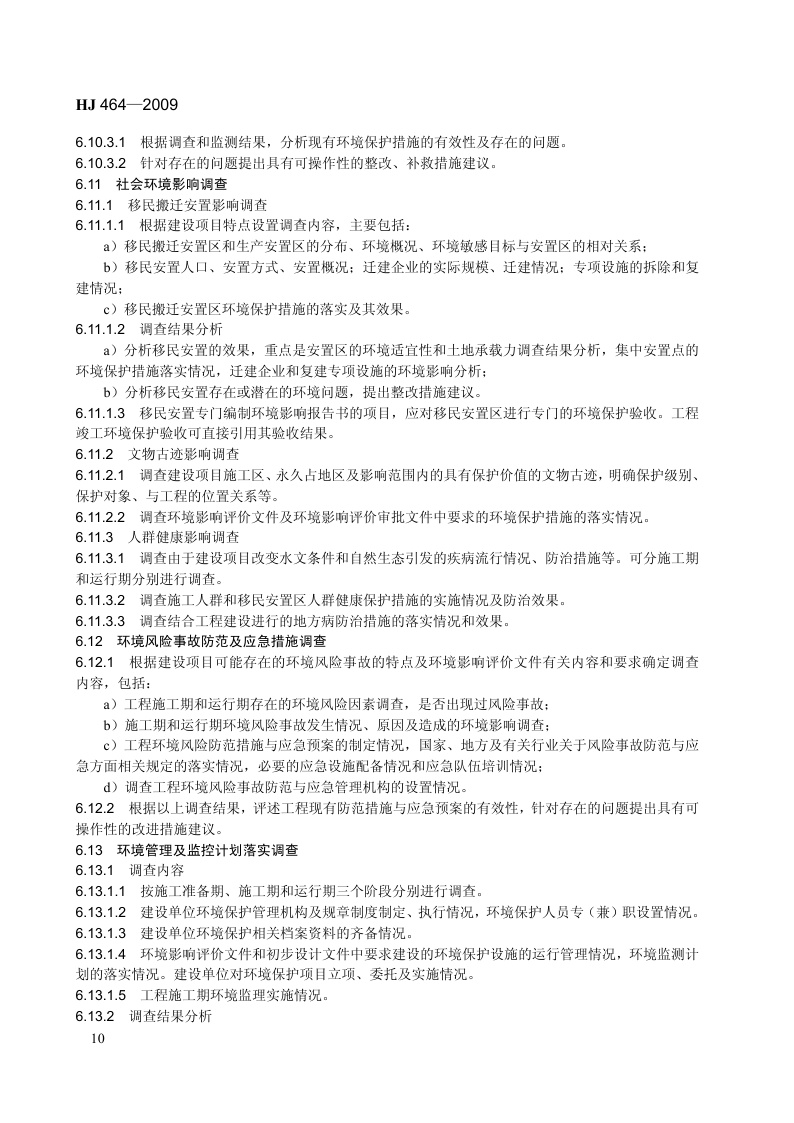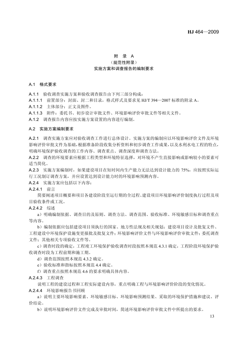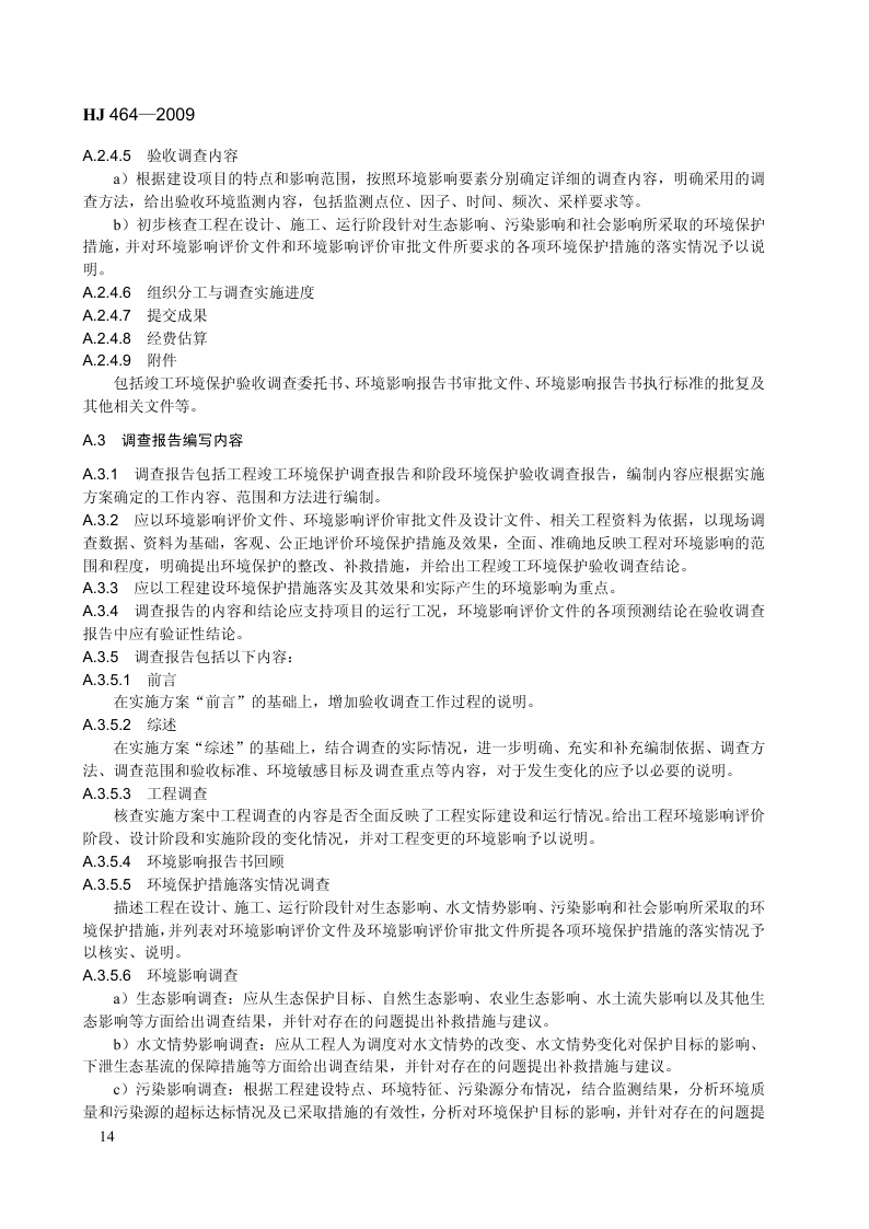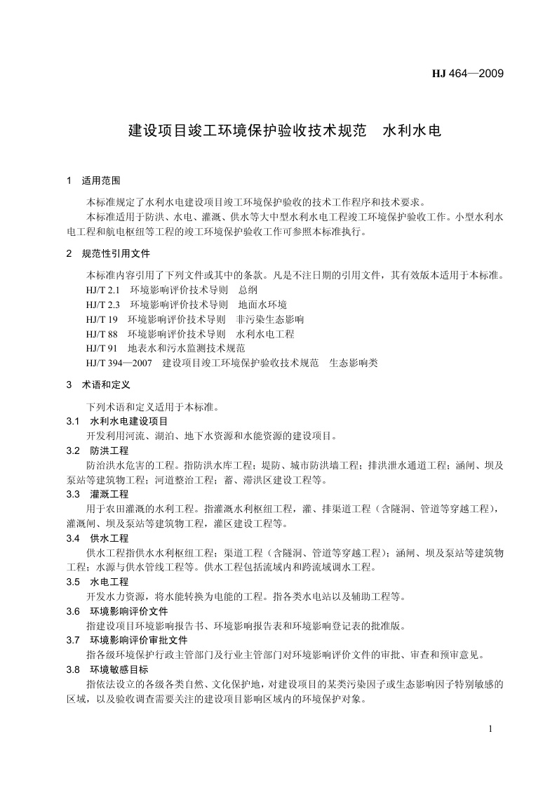 《建设项目竣工环境保护验收技术规范 水利水电》(HJ 464-2009)