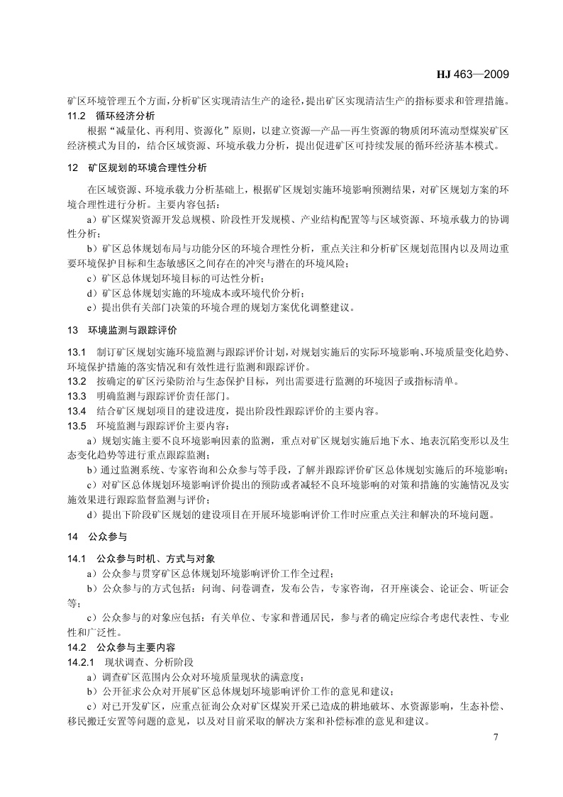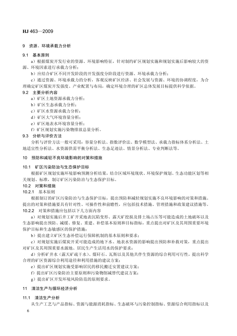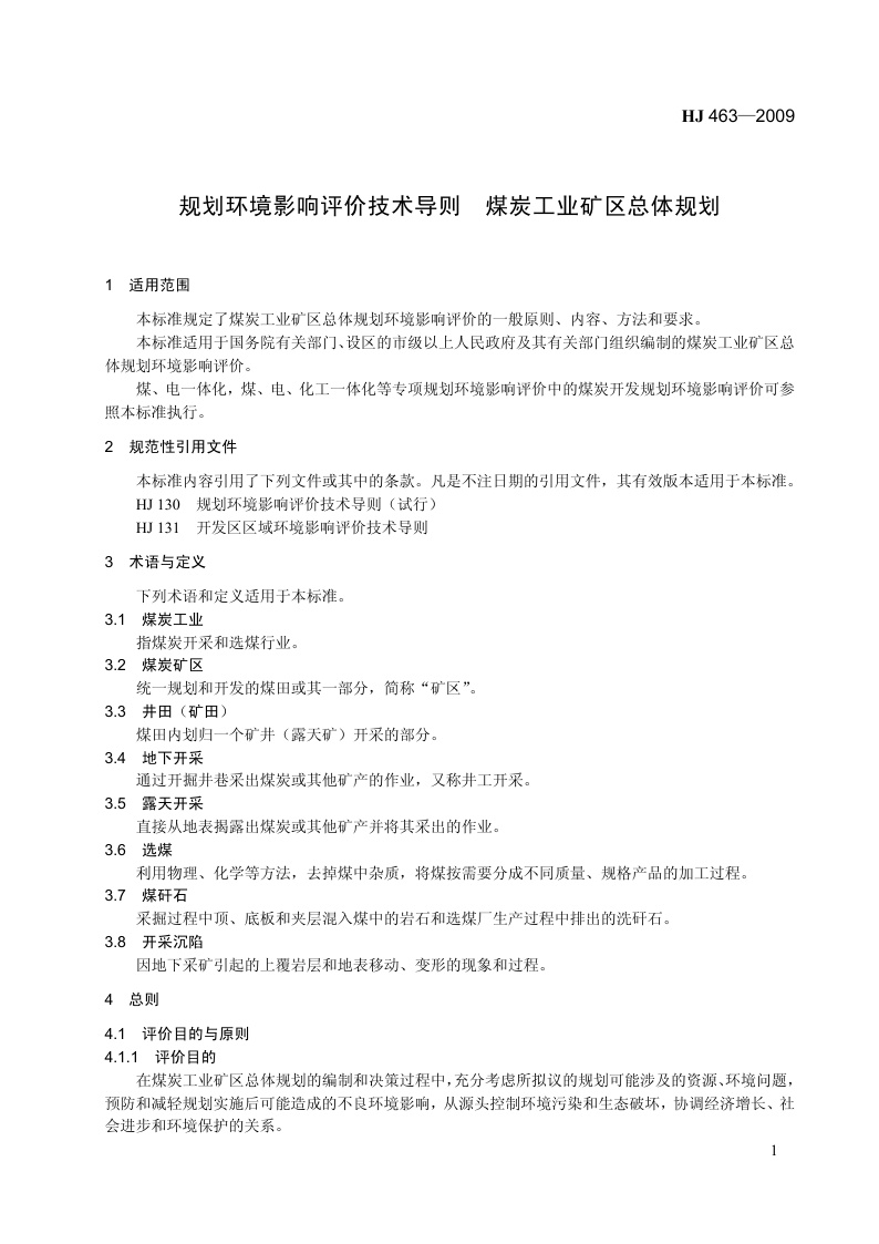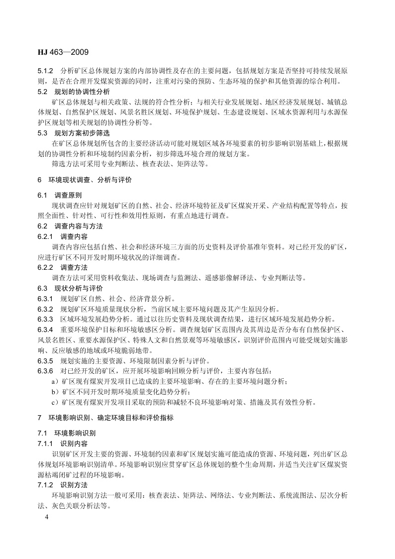 《规划环境影响评价技术导则 煤炭工业矿区总体规划》(HJ 463-2009)