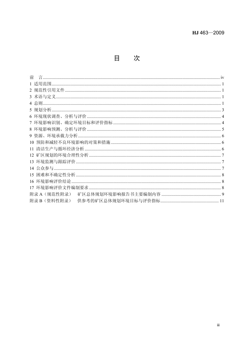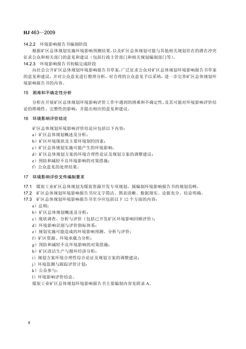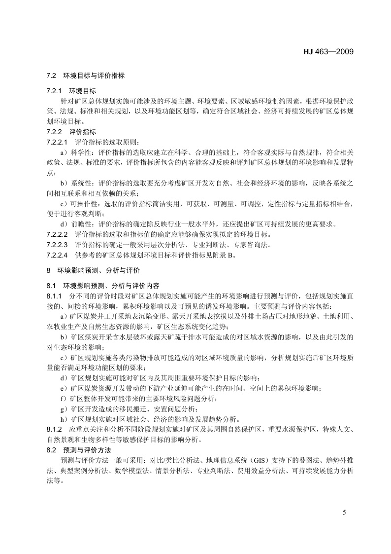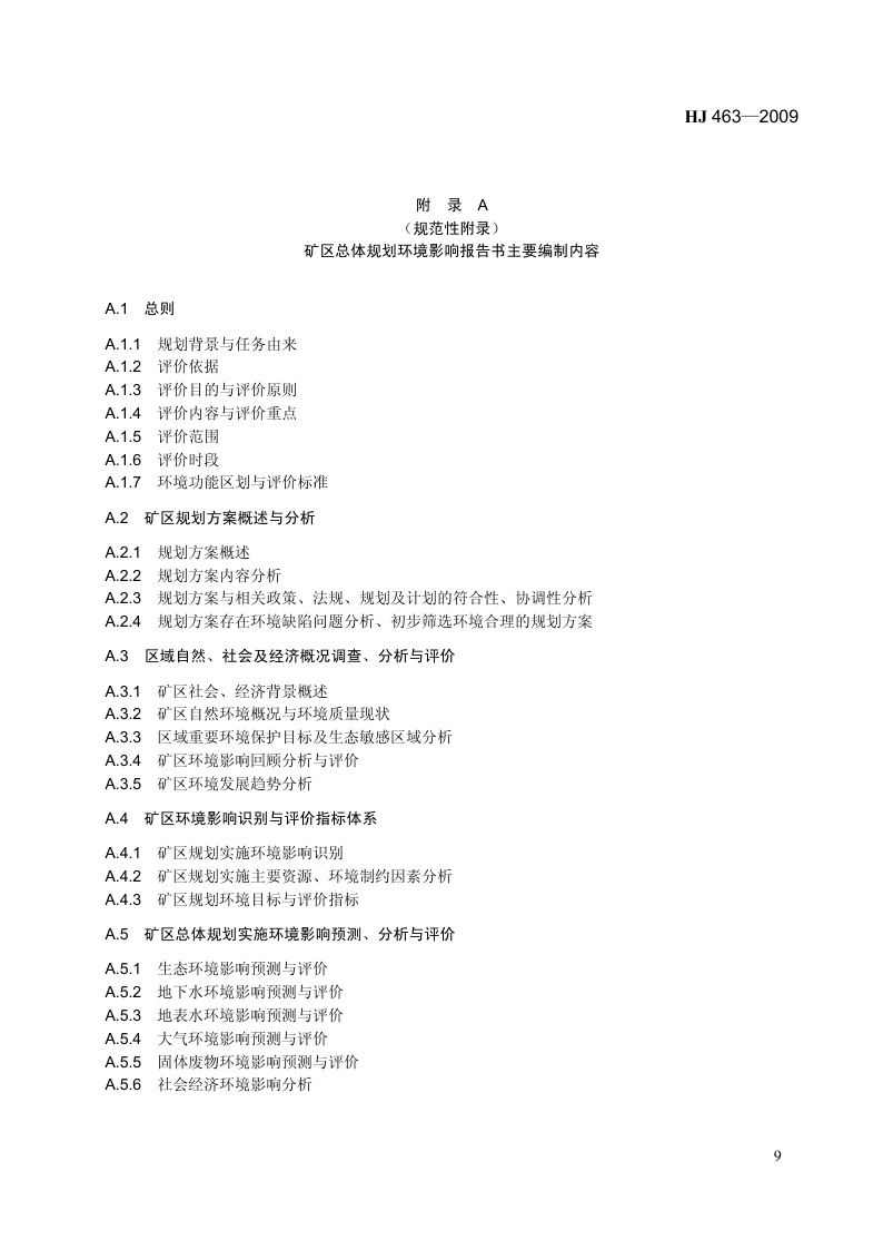 《规划环境影响评价技术导则 煤炭工业矿区总体规划》(HJ 463-2009)