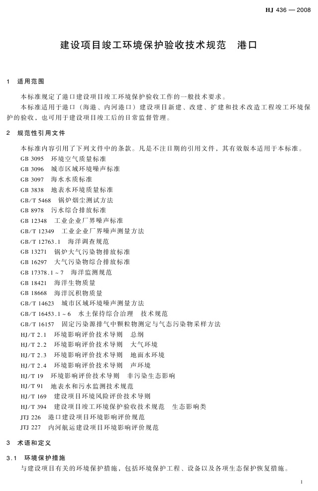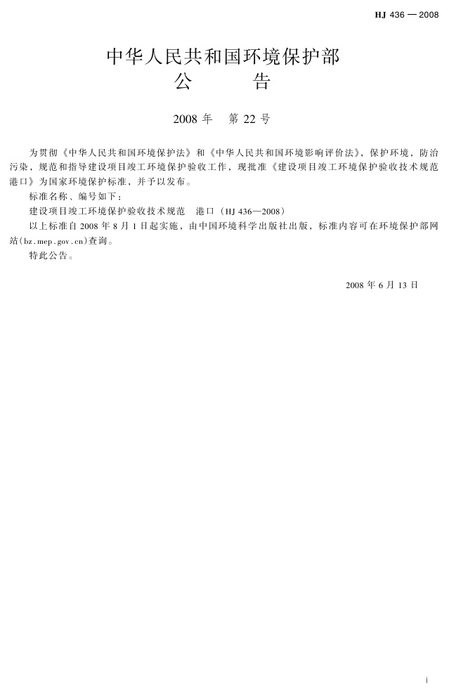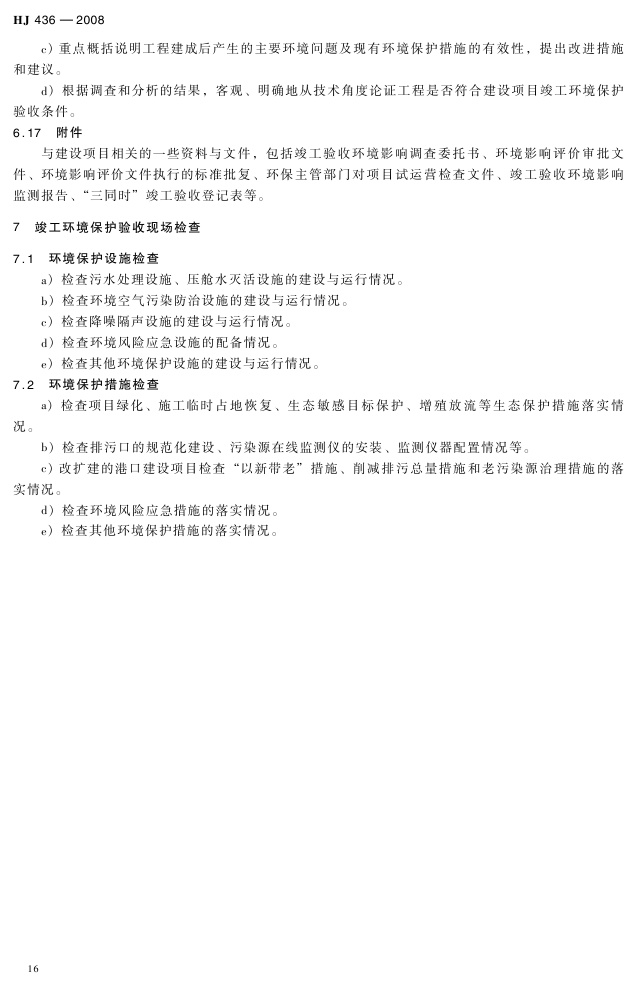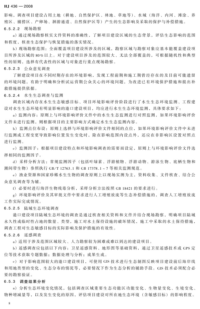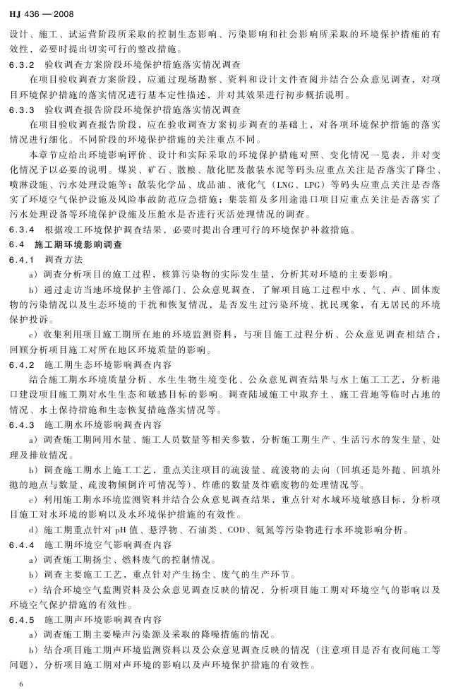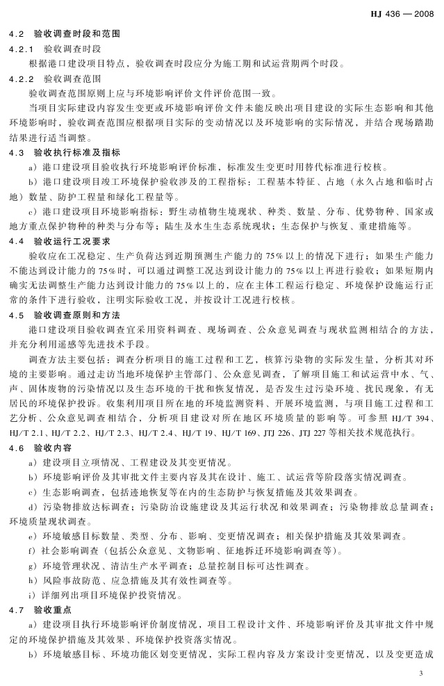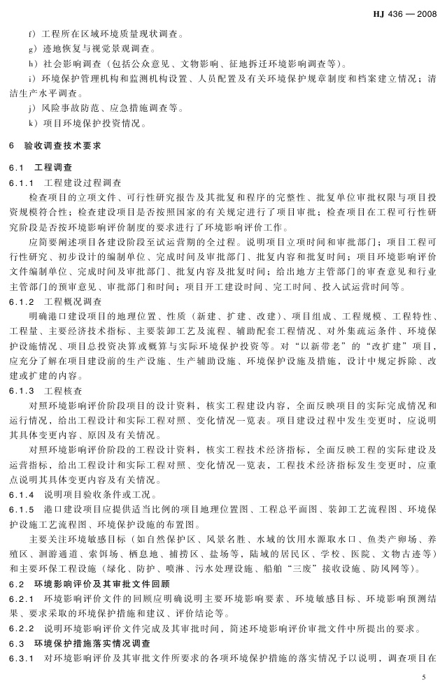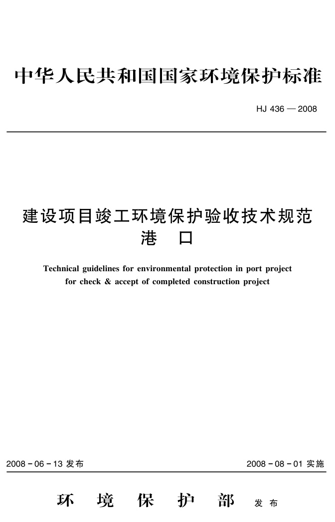 《建设项目竣工环境保护验收技术规范 港口》(HJ 436-2008)